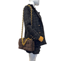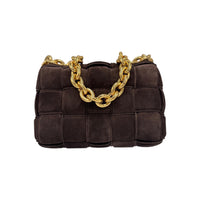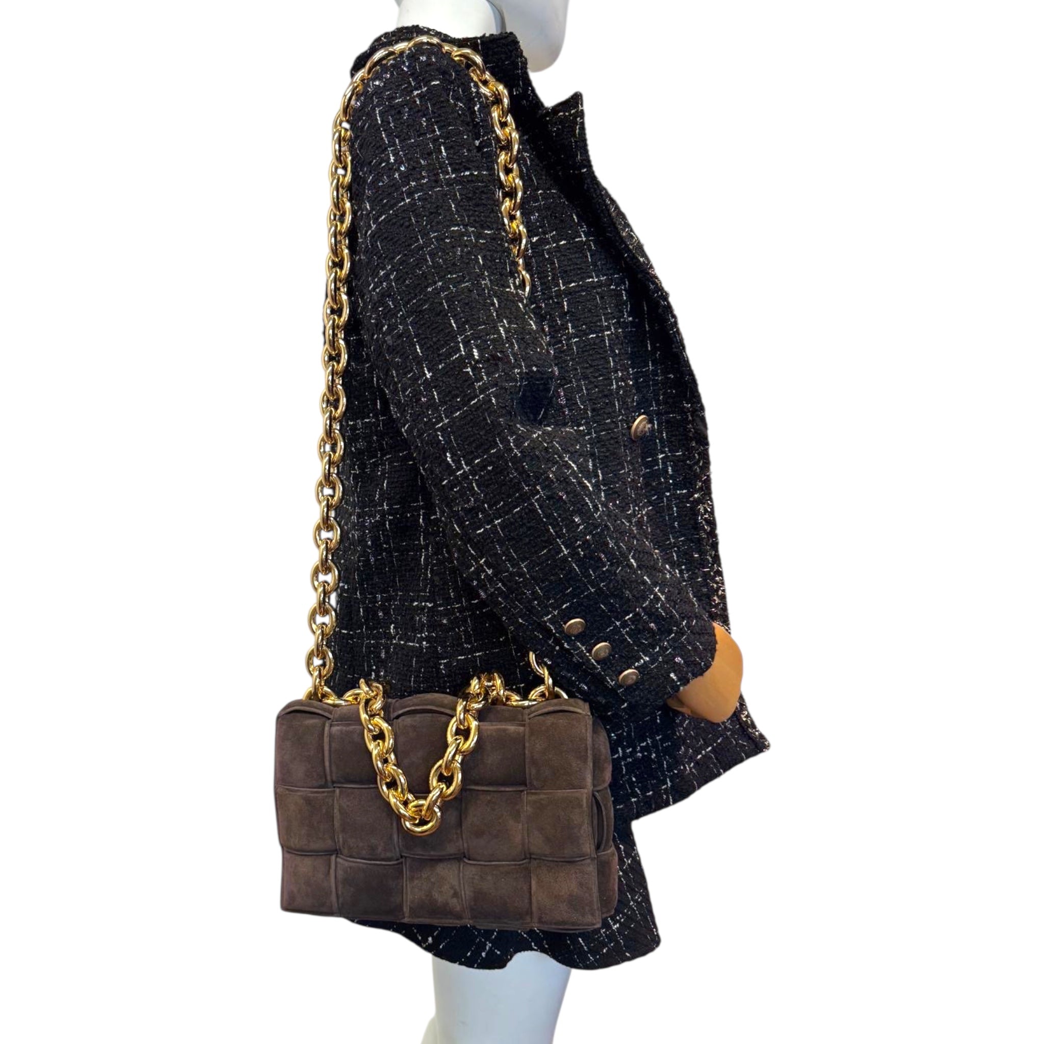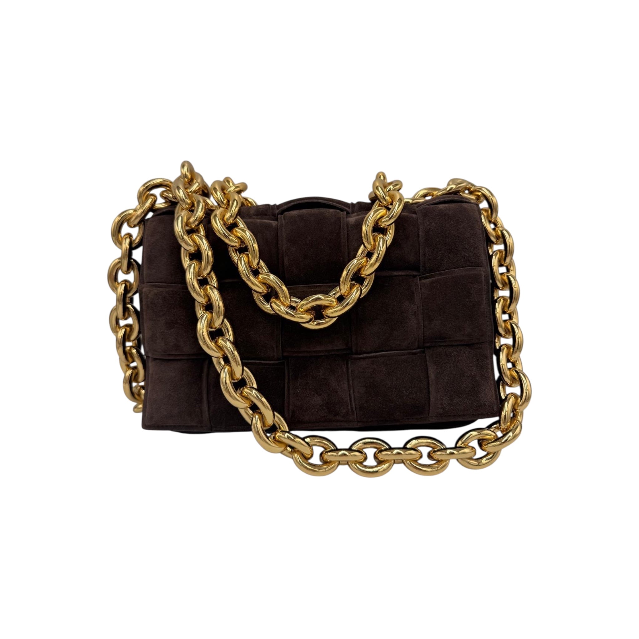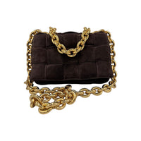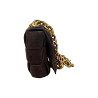 Bottega Veneta Padded Chain Cassette Brown Velvet Gold