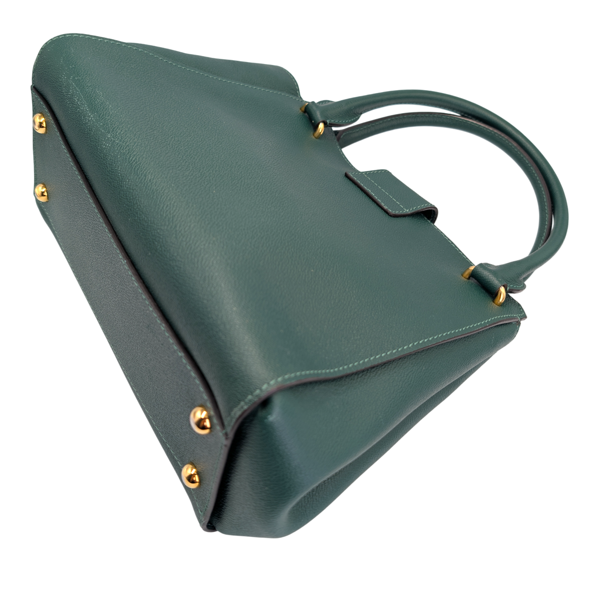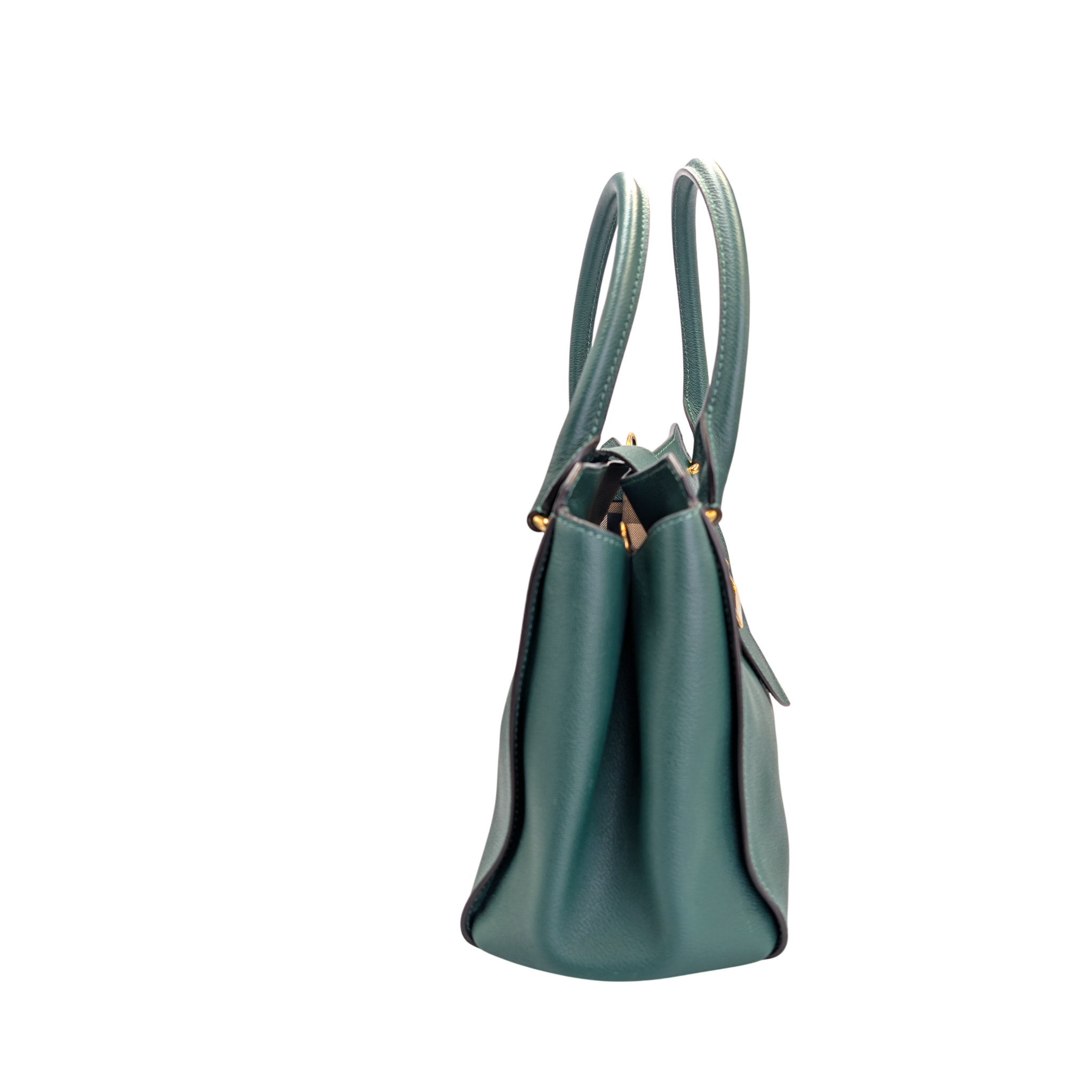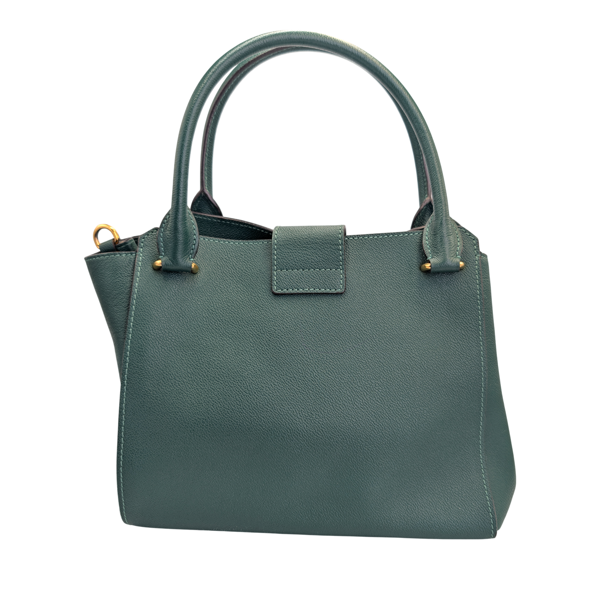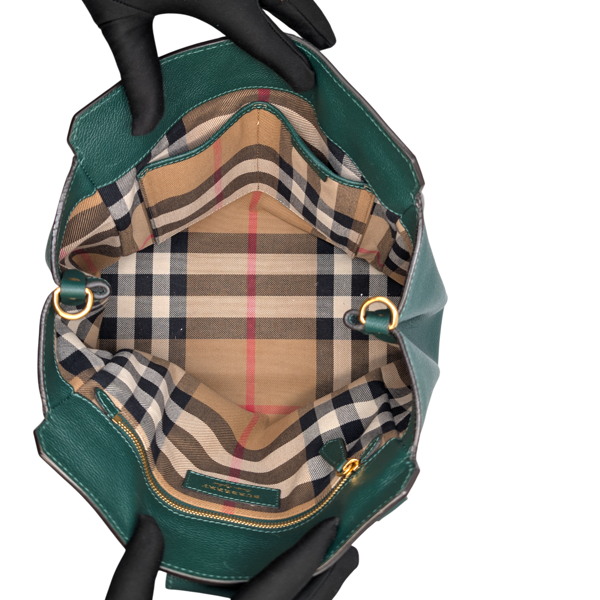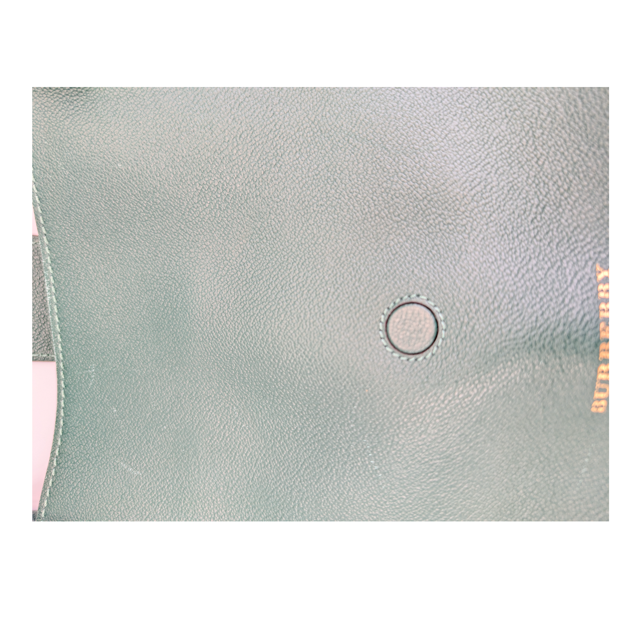 This elegant Burberry The Medium Buckle Tote impresses with its timeless design and high-quality workmanship. Made from green leather, combines the Bag clean lines with classic Burberry details like the distinctive buckle on the front. The structured shape makes it a versatile companion for everyday life and business.