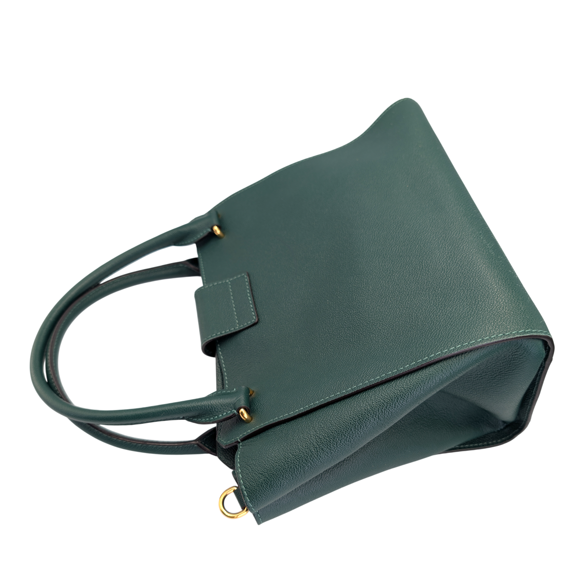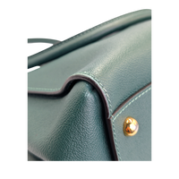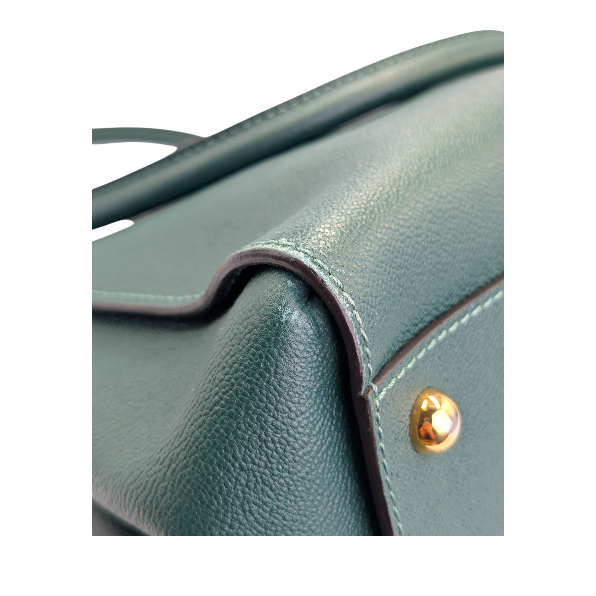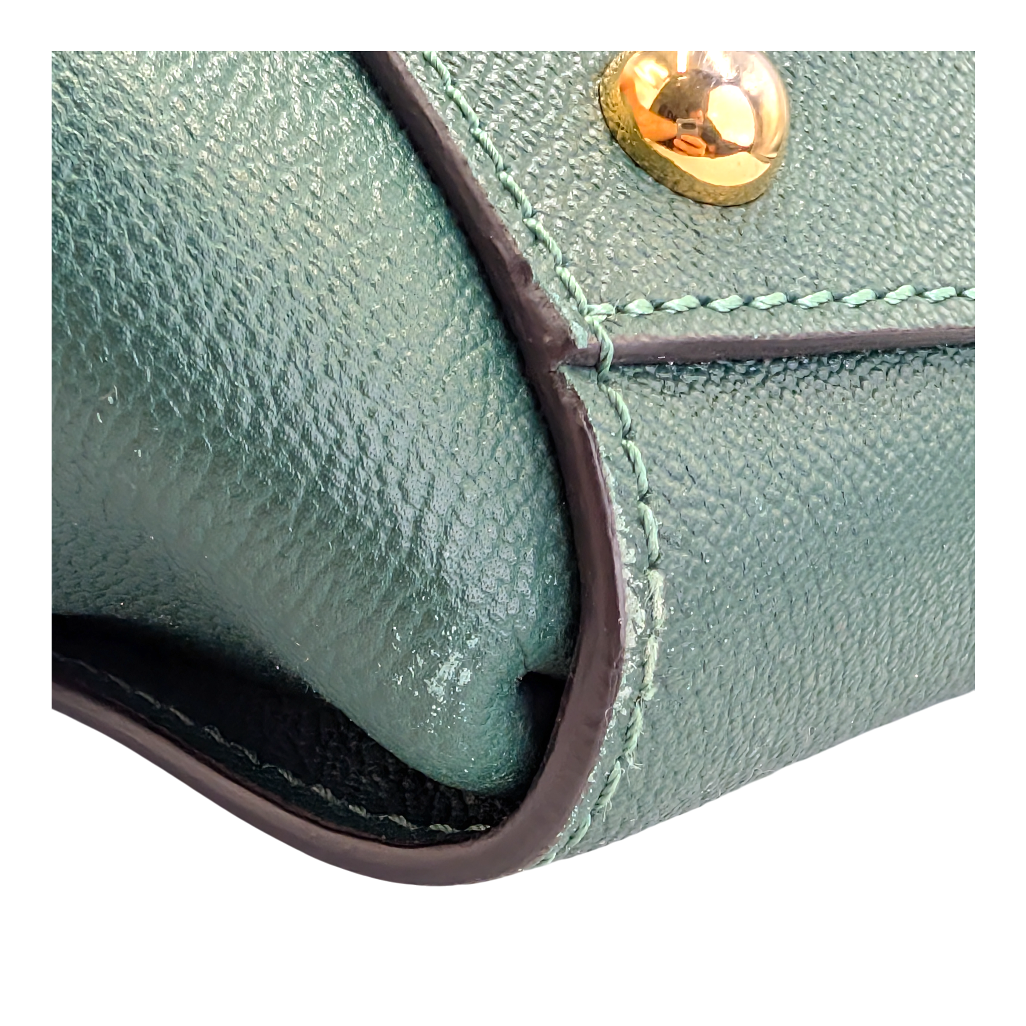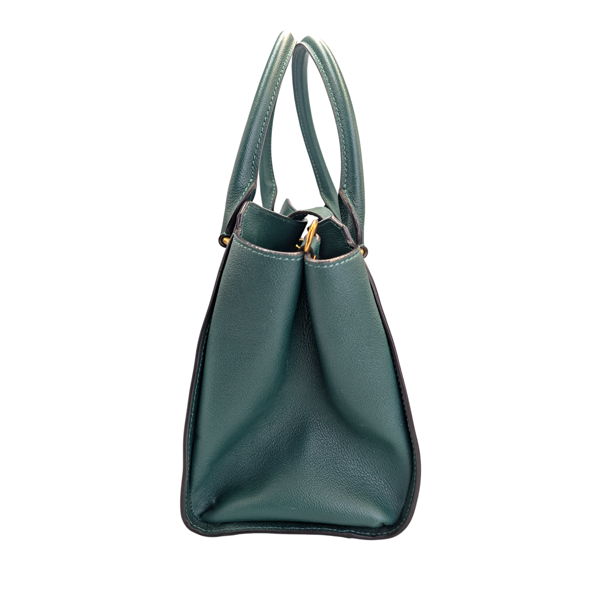 This elegant Burberry The Medium Buckle Tote impresses with its timeless design and high-quality workmanship. Made from green leather, combines the Bag clean lines with classic Burberry details like the distinctive buckle on the front. The structured shape makes it a versatile companion for everyday life and business.