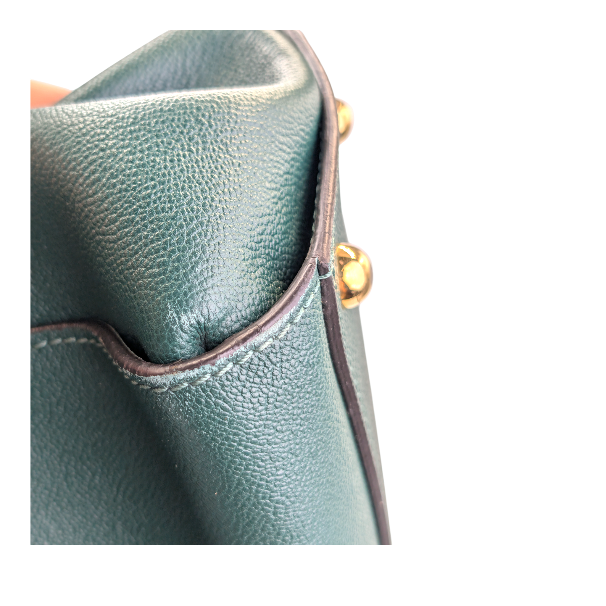 Condition: The leather is slightly out of shape and shows fine scratches on the front as well as scratches in the lower area of ​​the back. Abrasion is visible on edges and corners. The shoulder strap shows scratches and abrasions. The interior is generally well preserved, but shows slight signs of wear. The hardware shows scratches and slight discoloration.