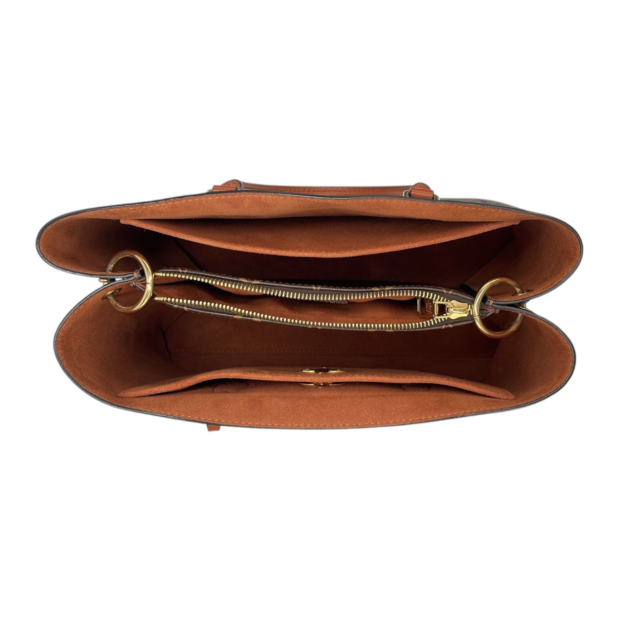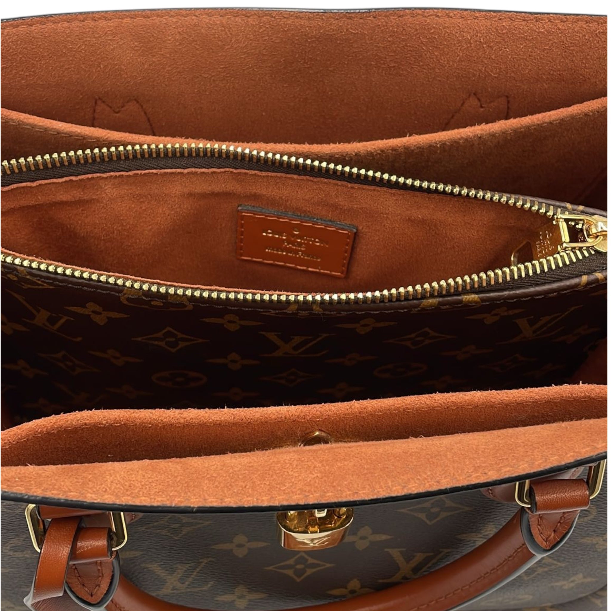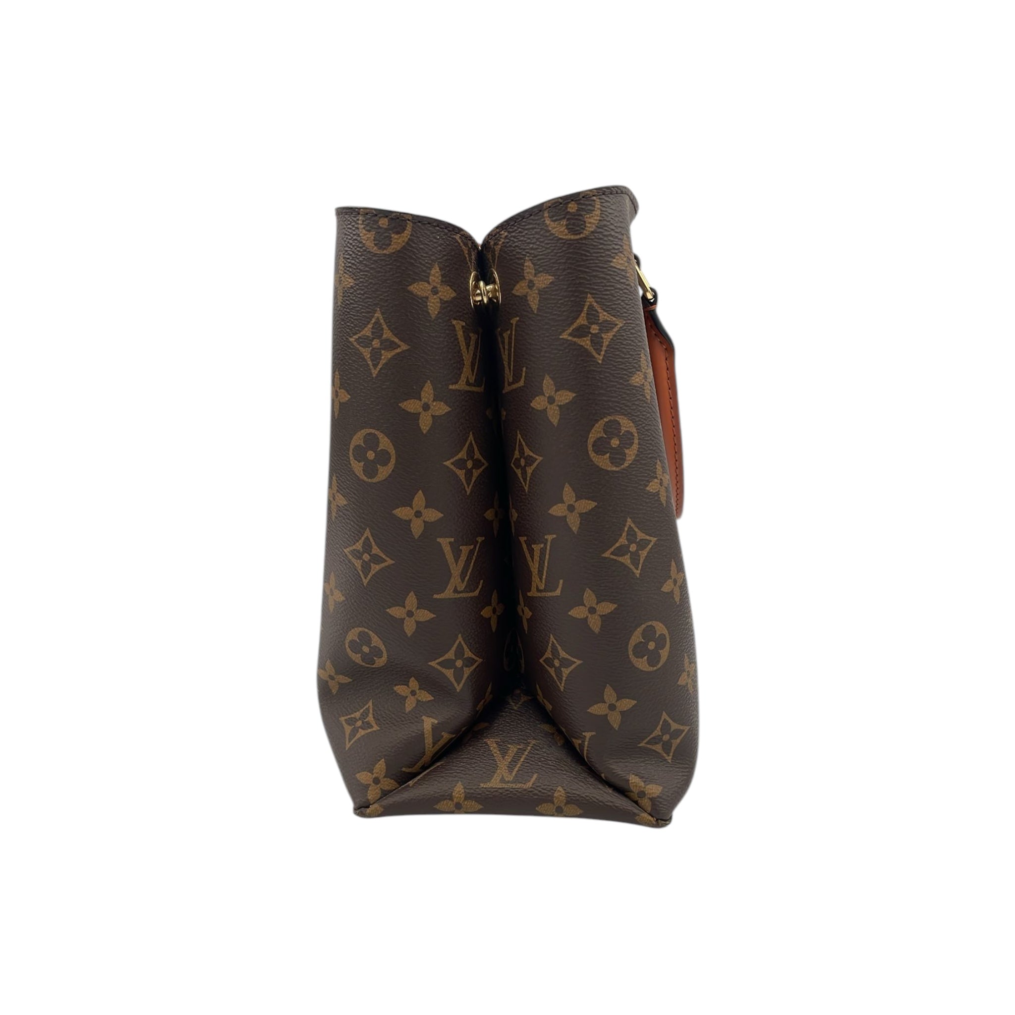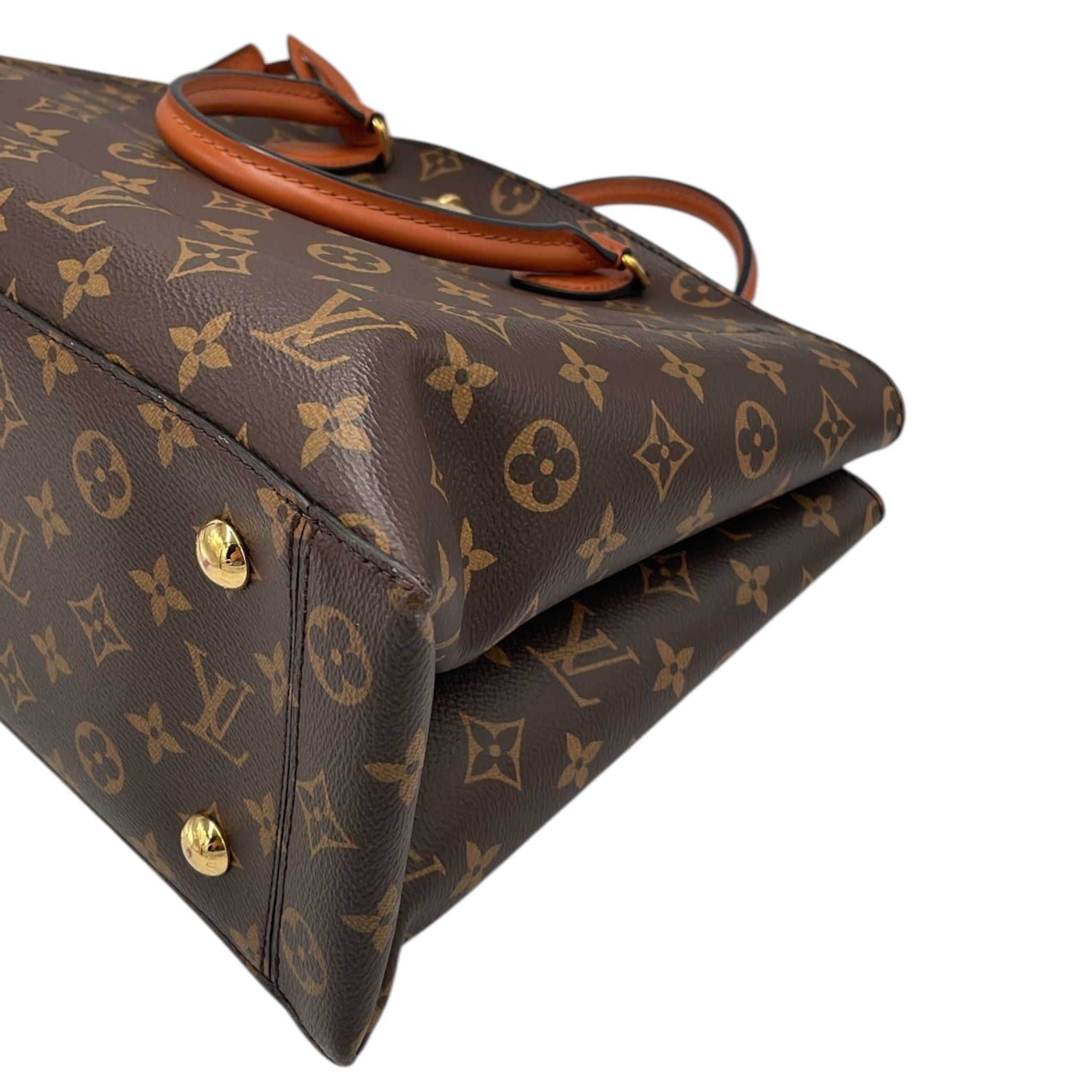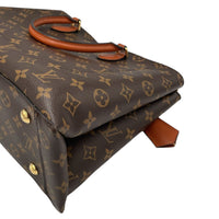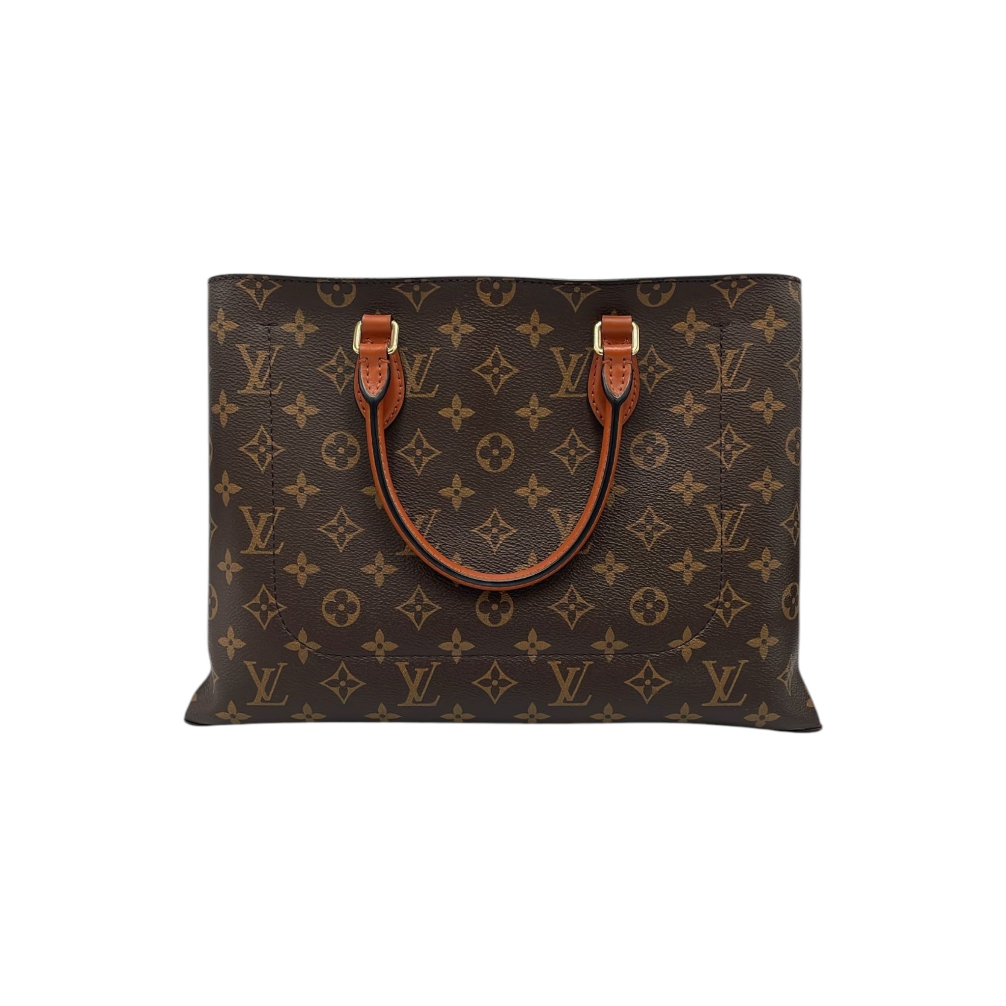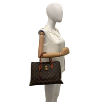The Flower Tote was made from Monogram Canvas. The Bag features rolled leather handles, a removable and adjustable flat leather strap, an open top, and interior zip and slip pockets.