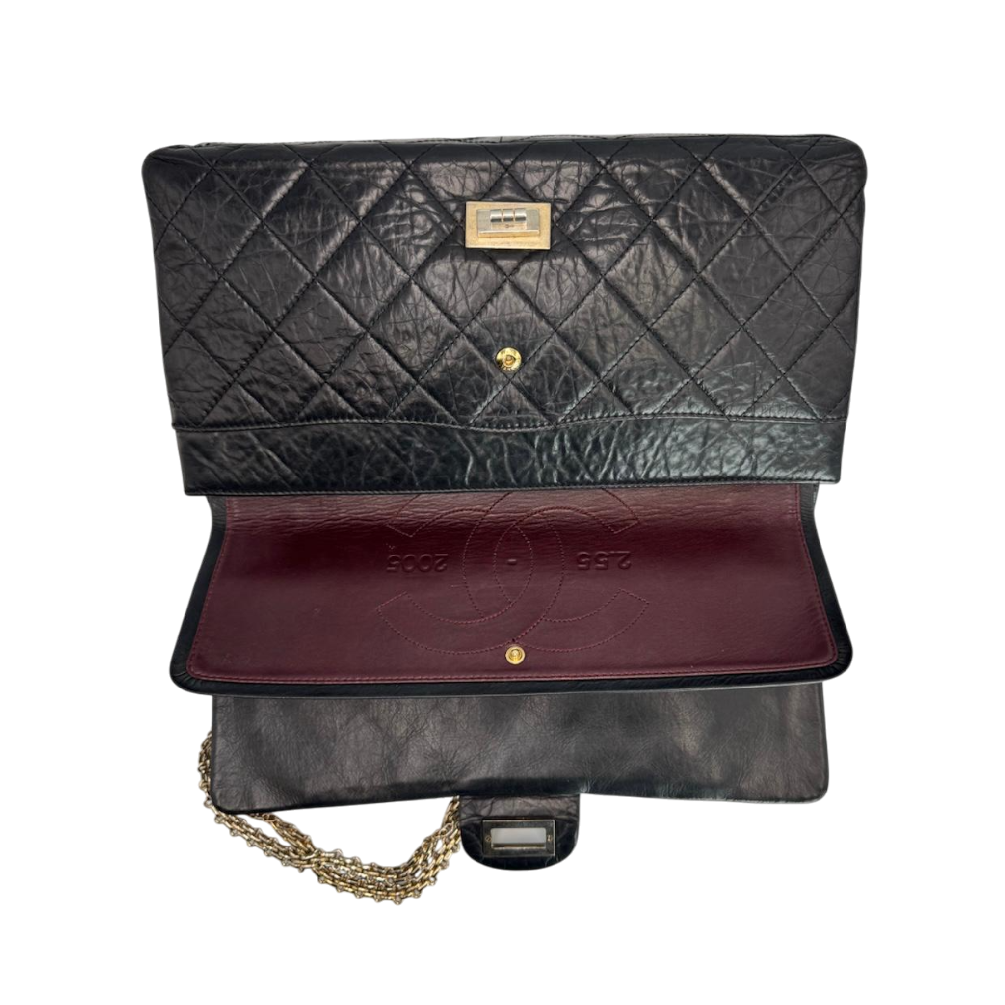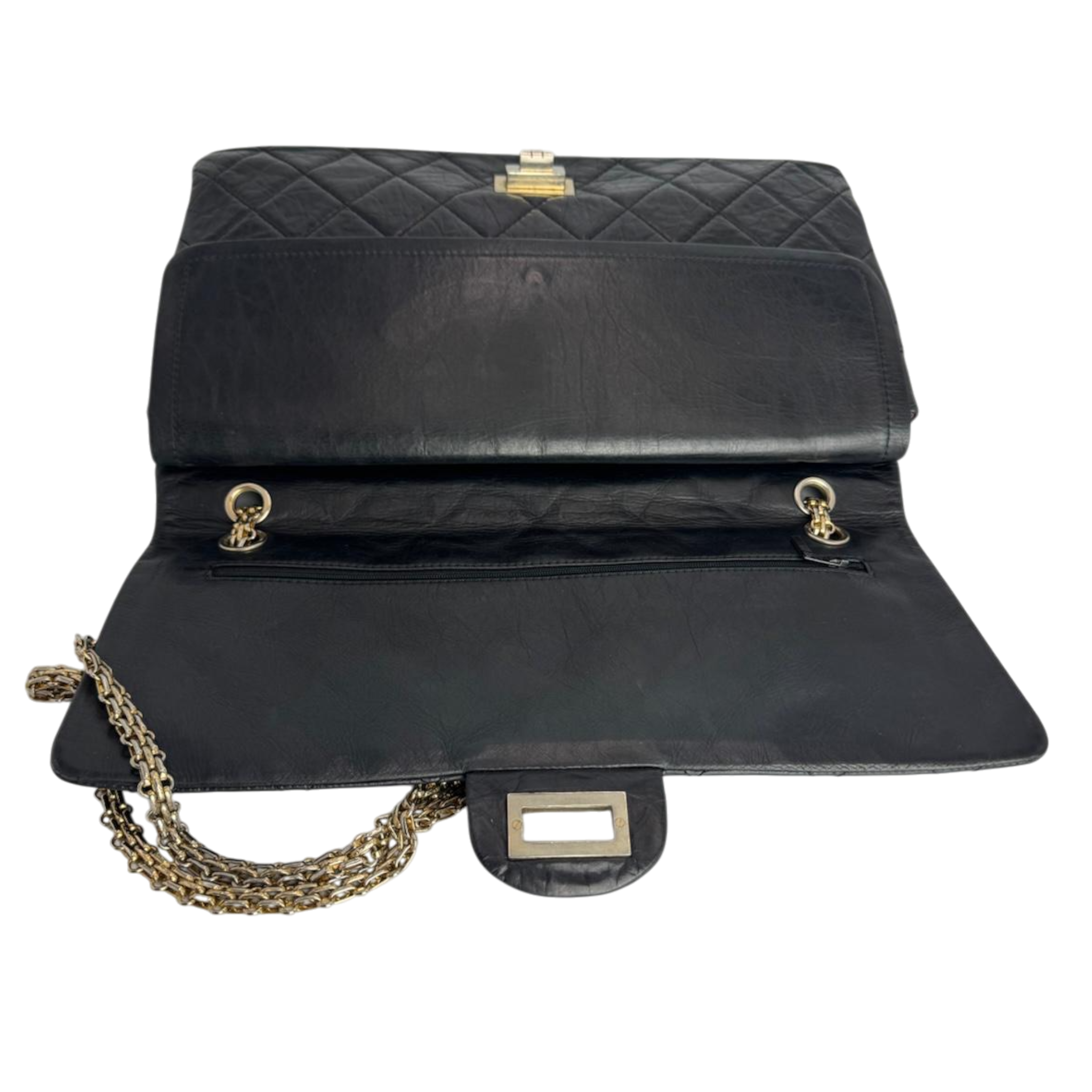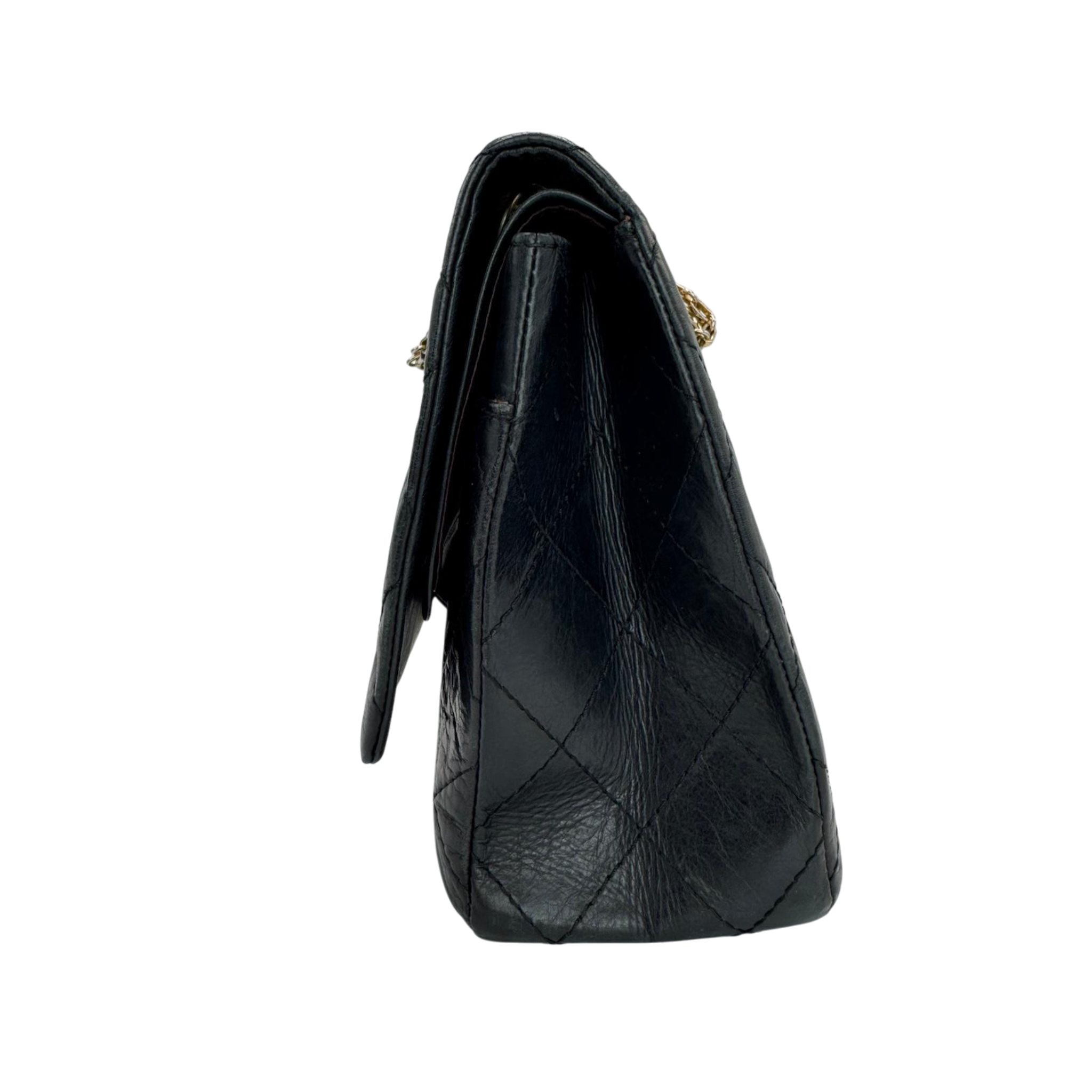 Chanel 2.55 Reissue Double Flap 227 Black Aged Calfskin Ruthenium