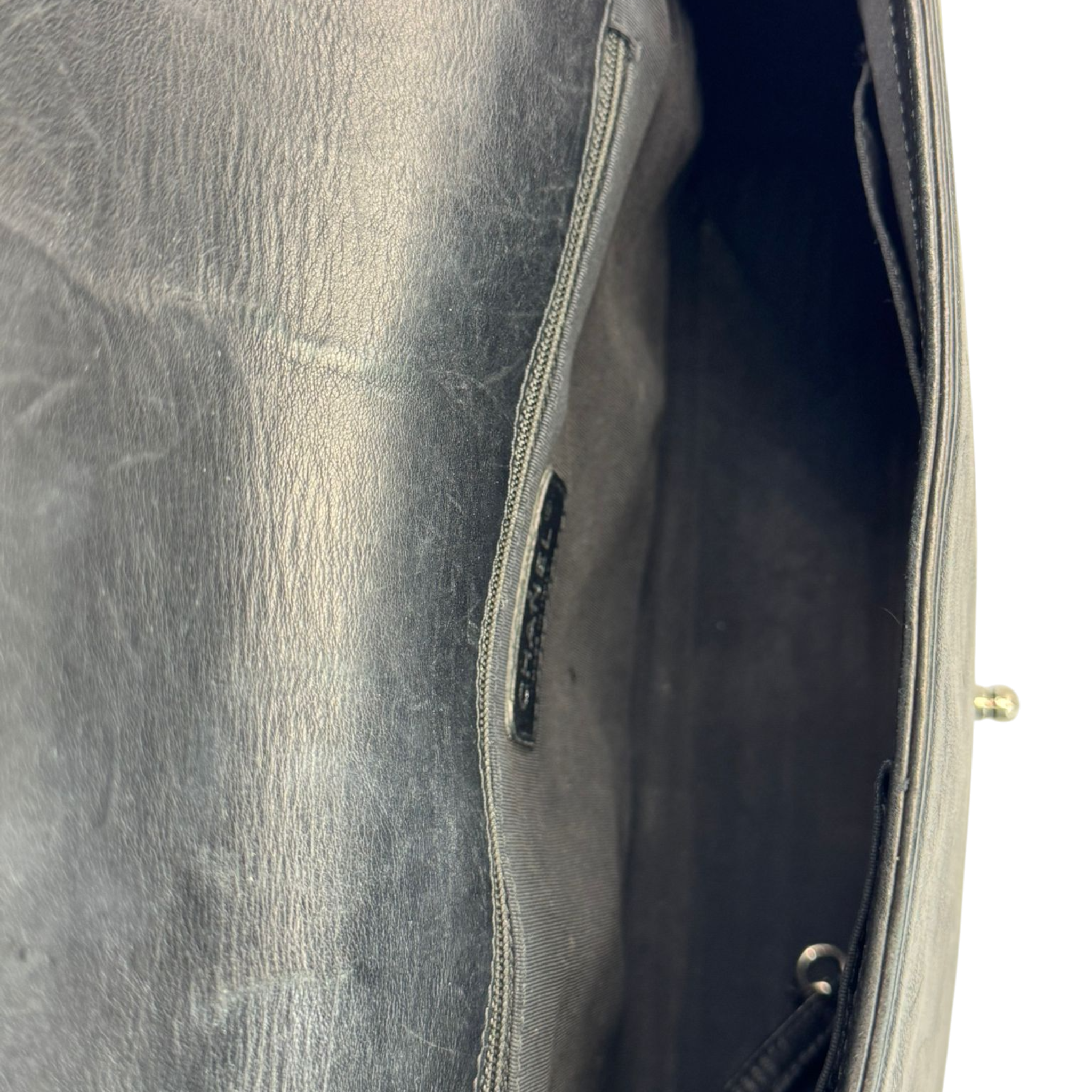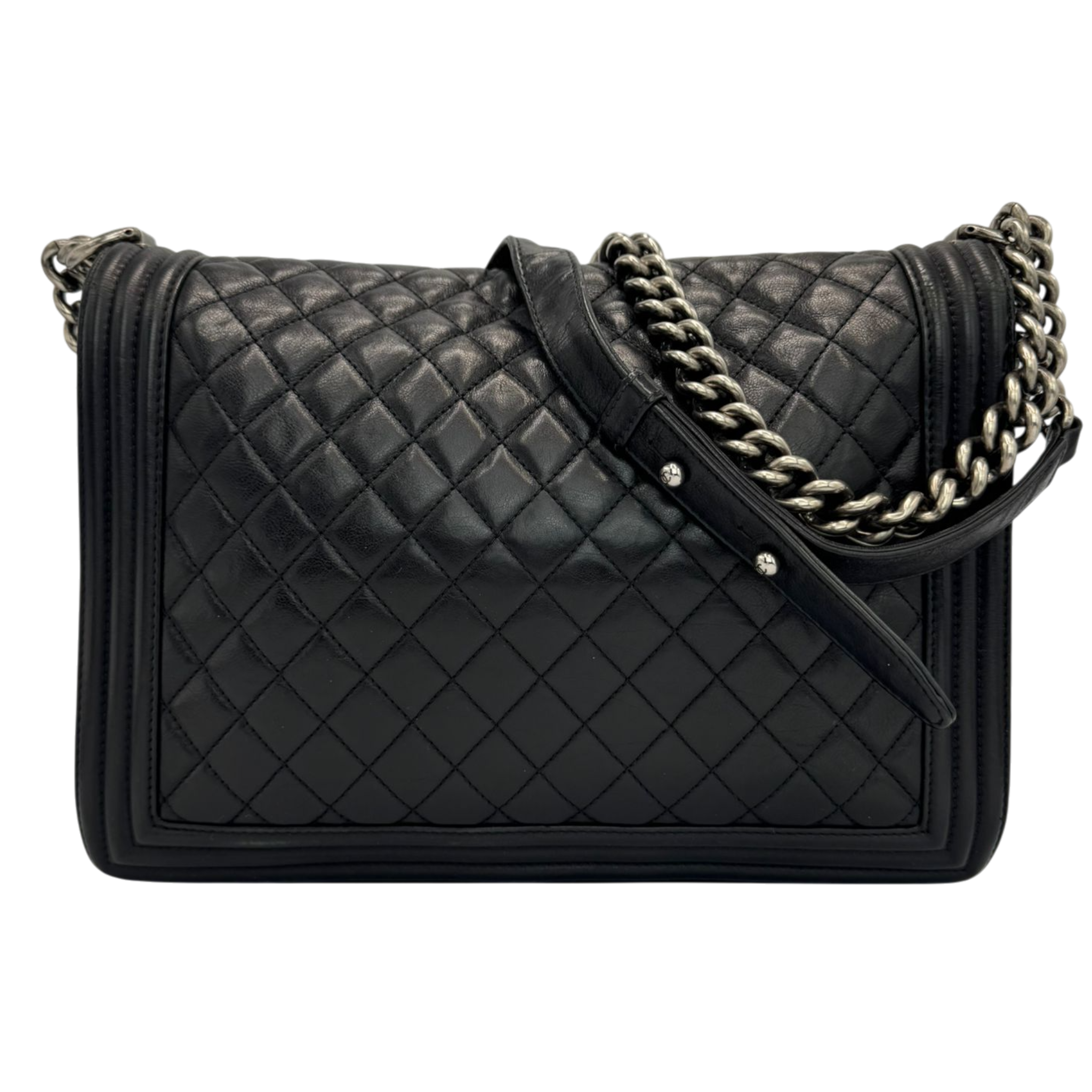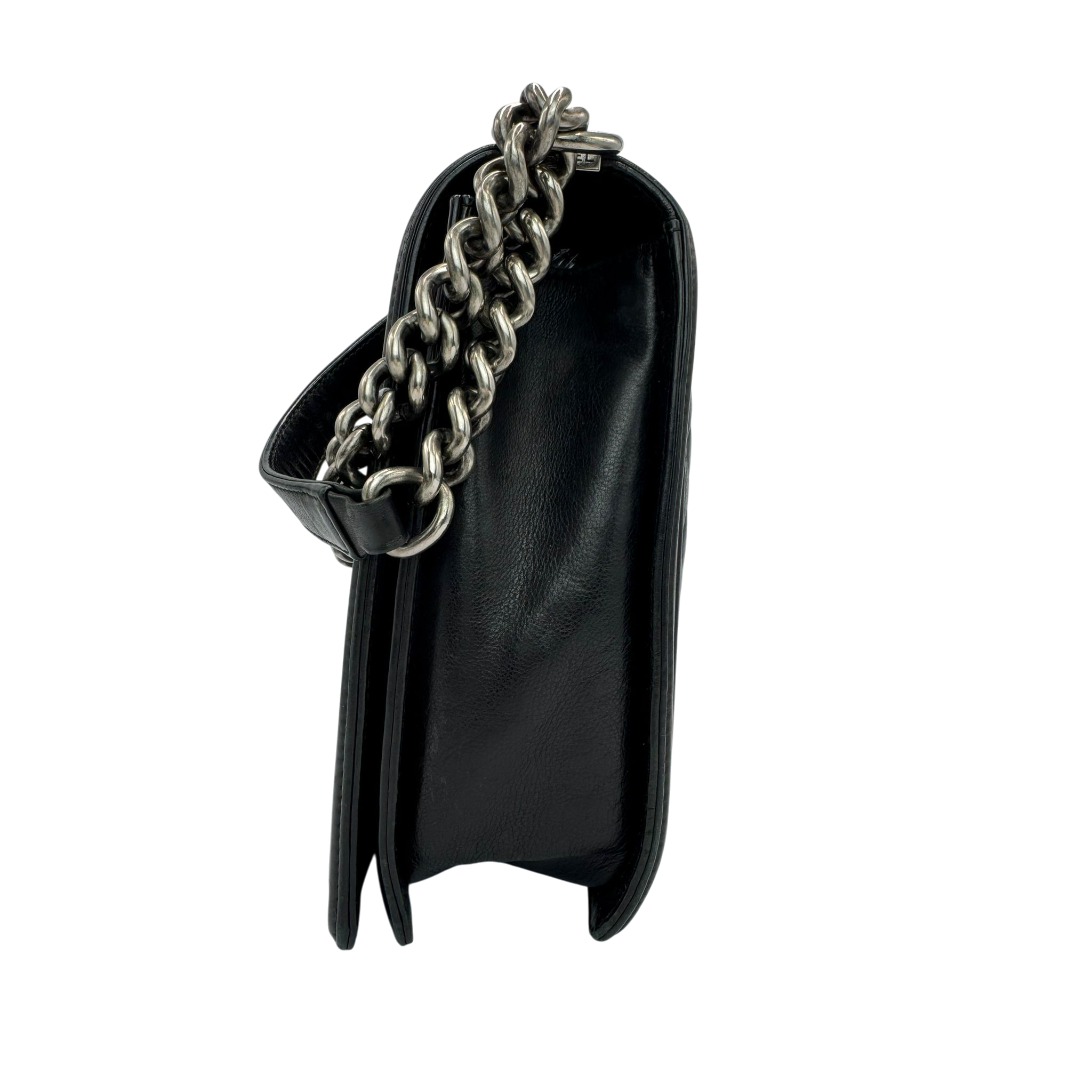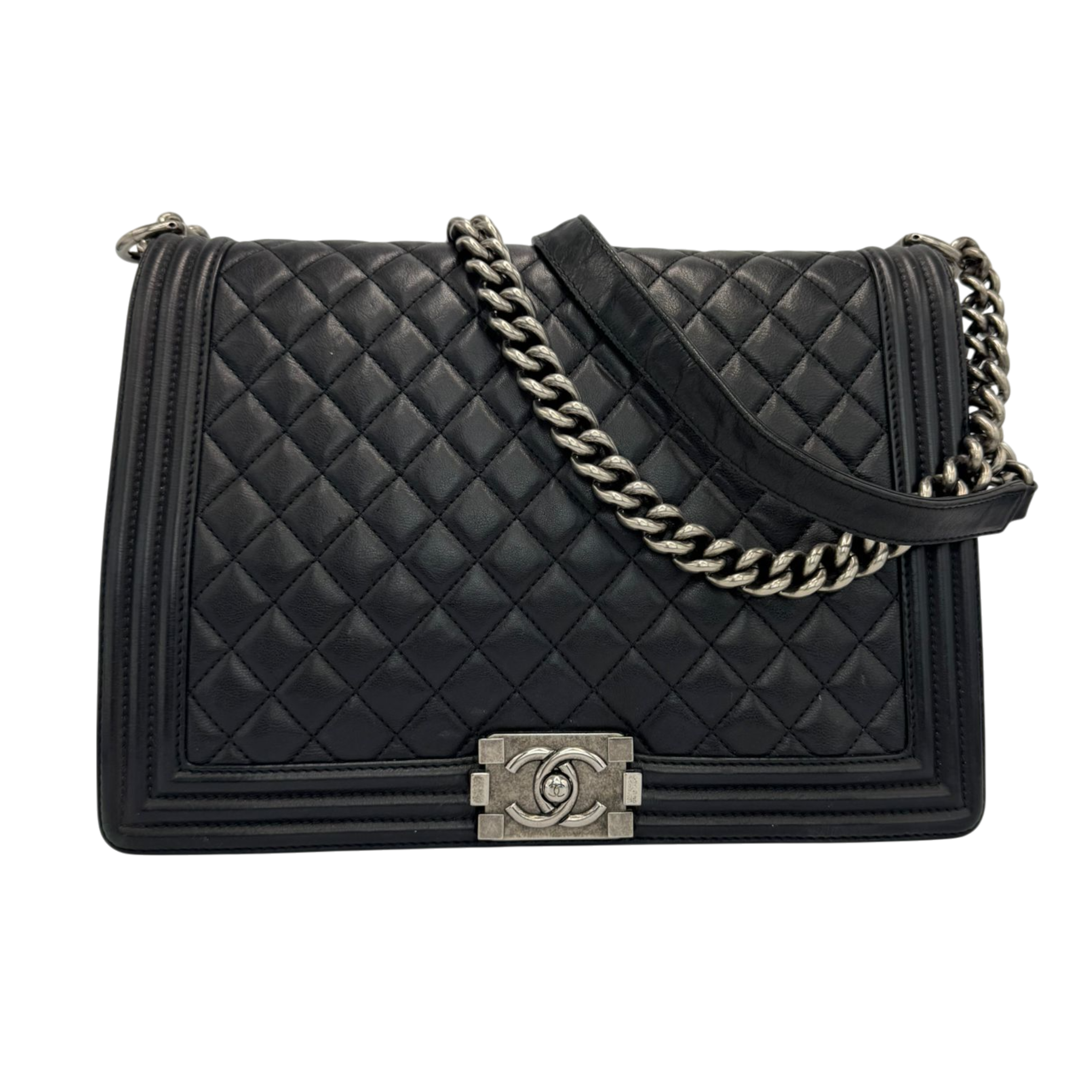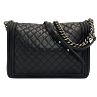 The Chanel Boy Large is a modern icon of the House of Chanel. The soft black lamb leather gives the Bag an elegant yet casual look, while the ruthenium hardware emphasizes the striking, slightly rock character of the Boy design. A Bag with a clear attitude, timeless yet self-confident.