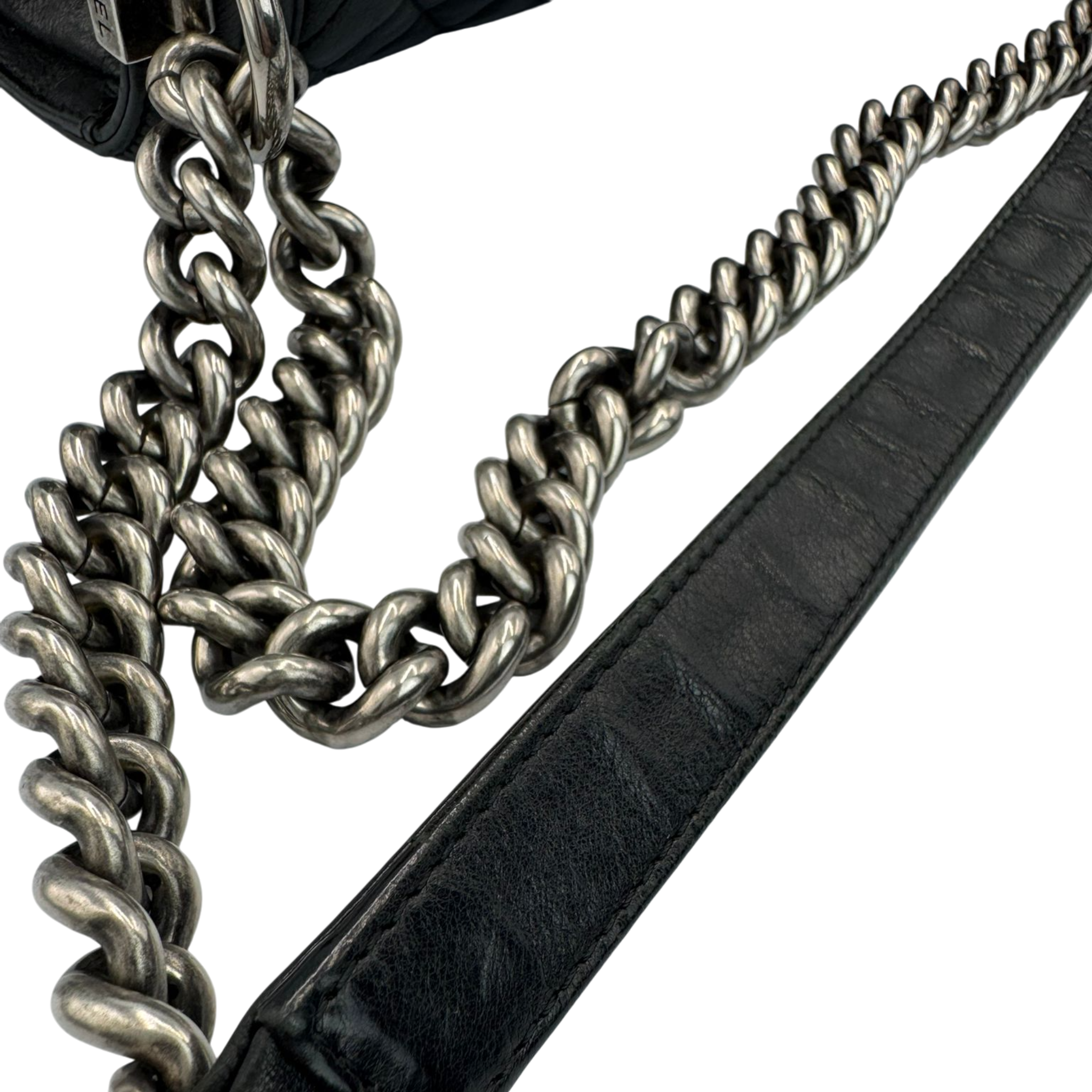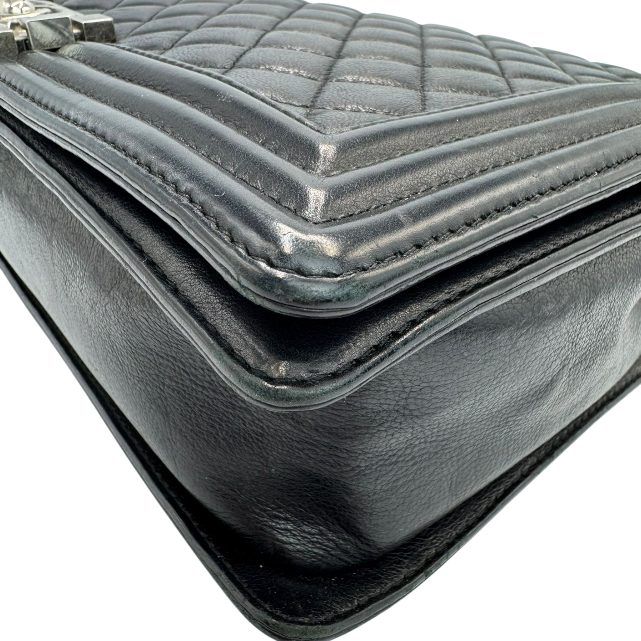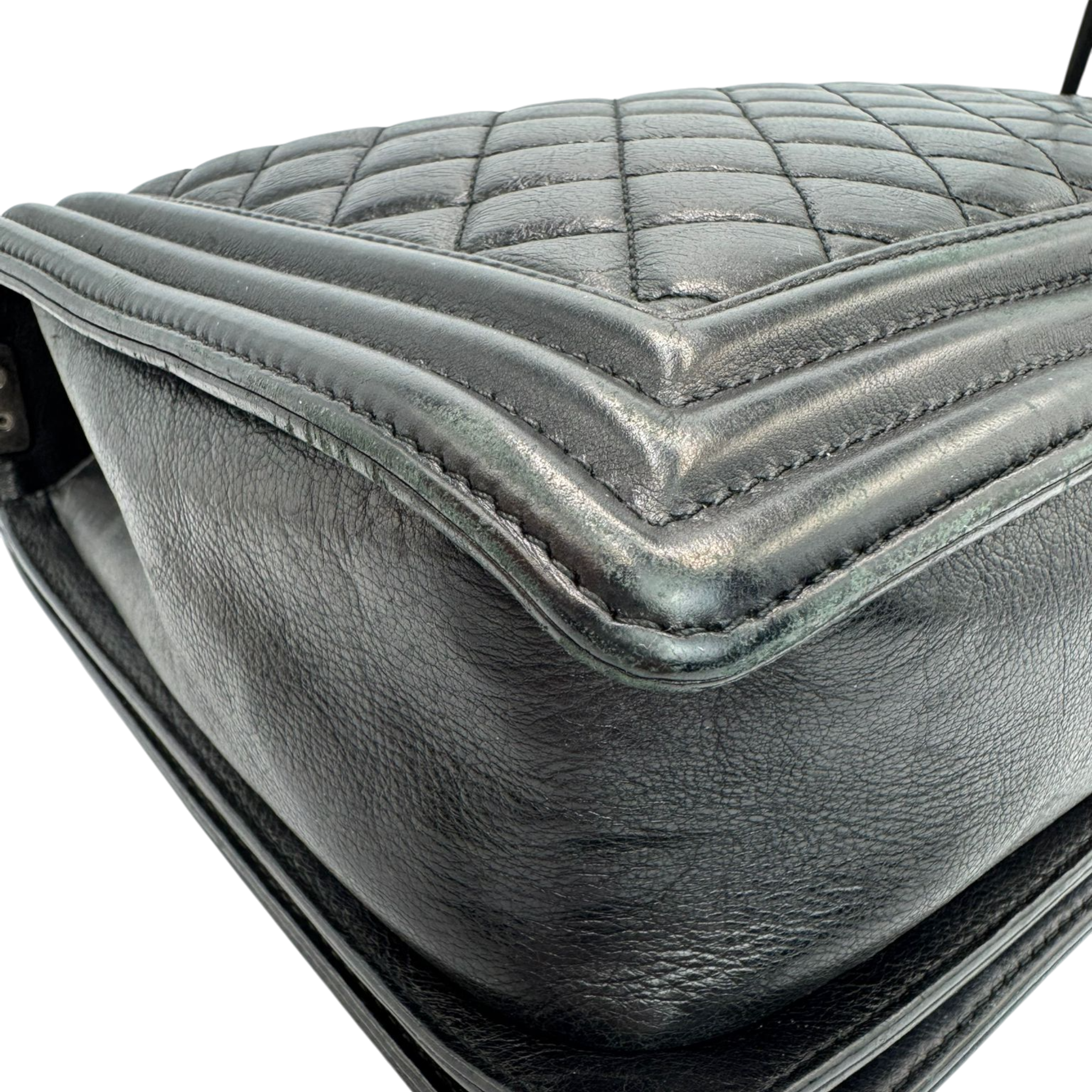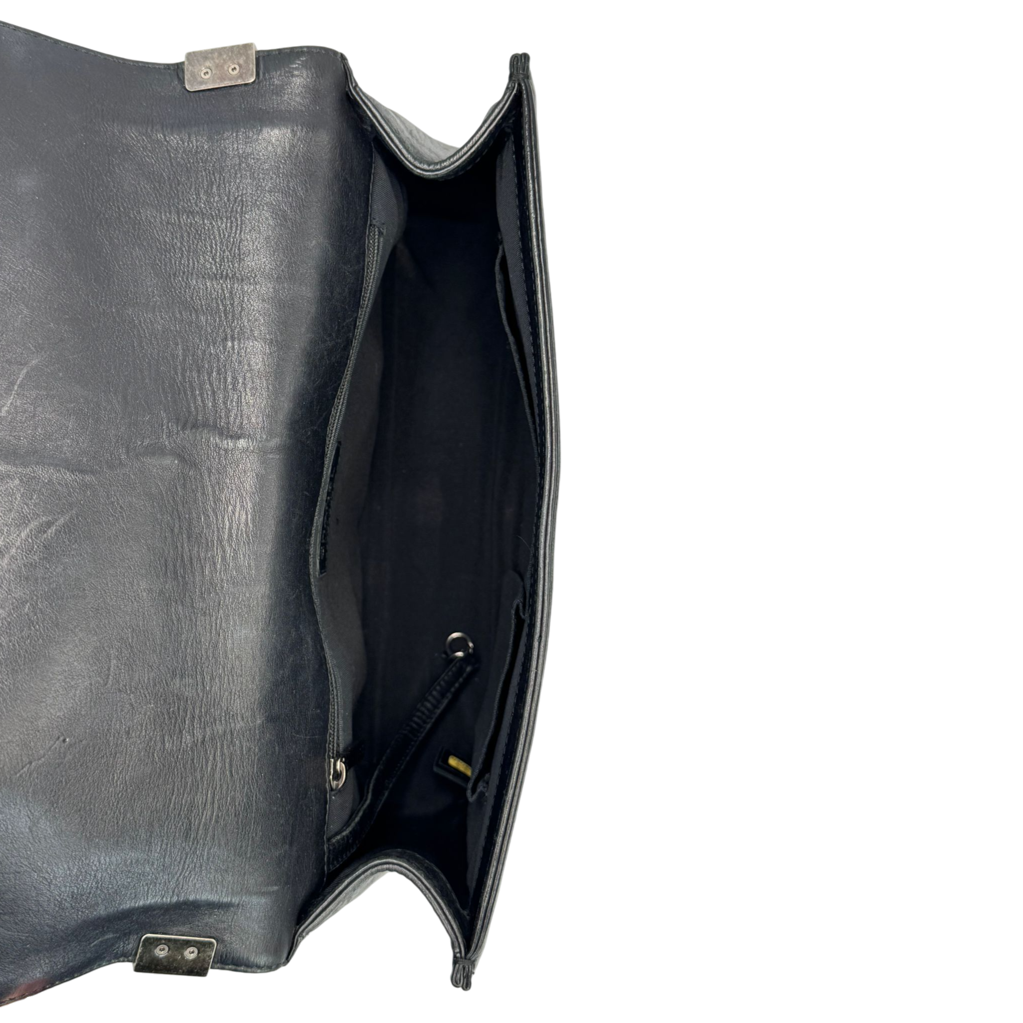 The Chanel Boy Large is a modern icon of the House of Chanel. The soft black lamb leather gives the Bag an elegant yet casual look, while the ruthenium hardware emphasizes the striking, slightly rock character of the Boy design. A Bag with a clear attitude, timeless yet self-confident.