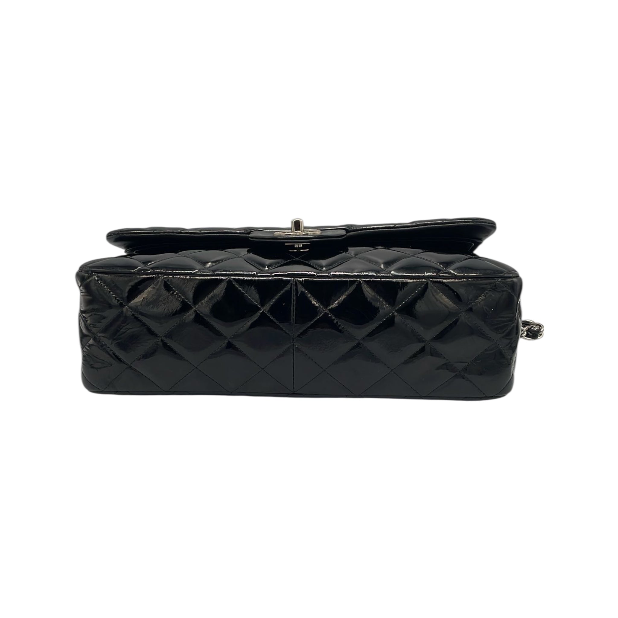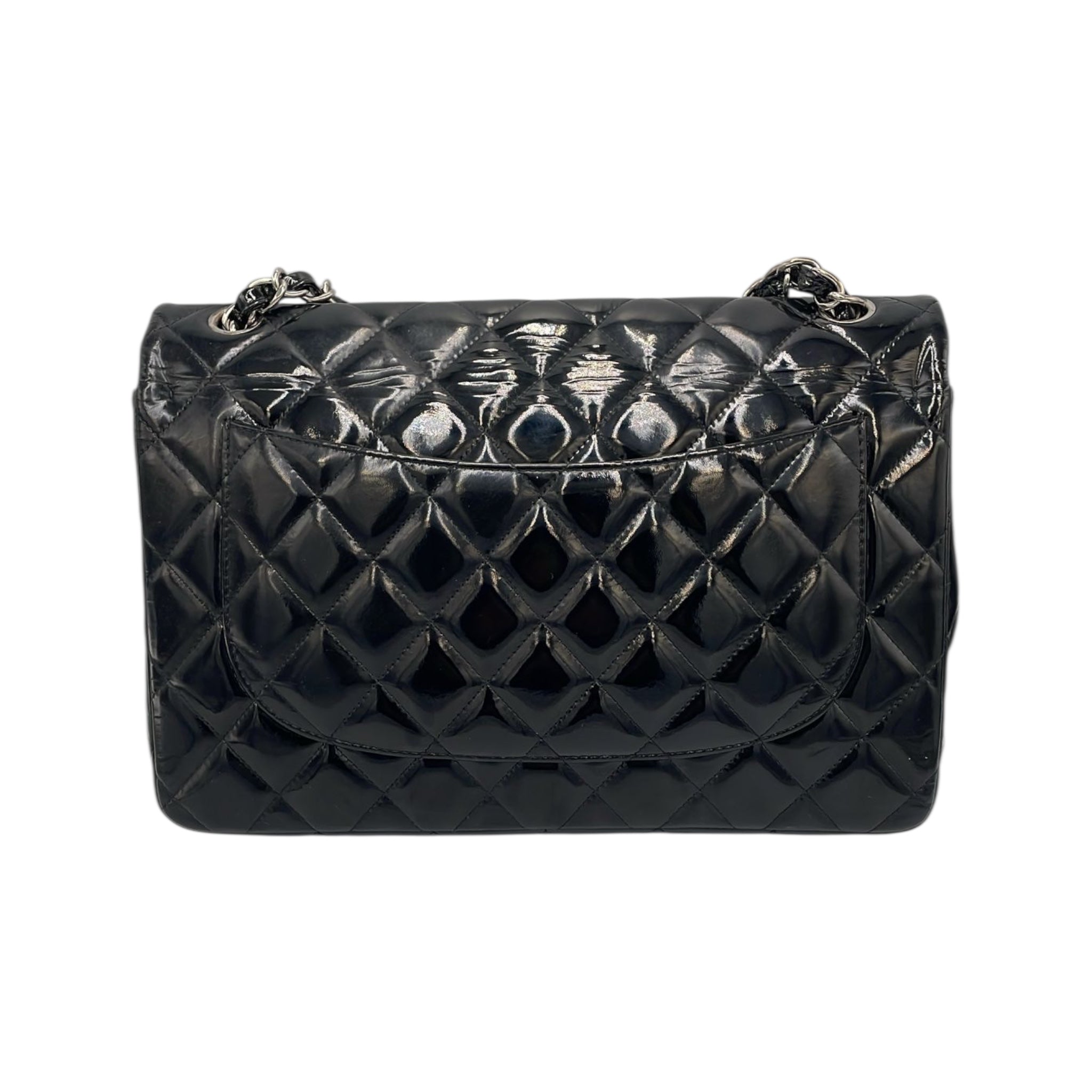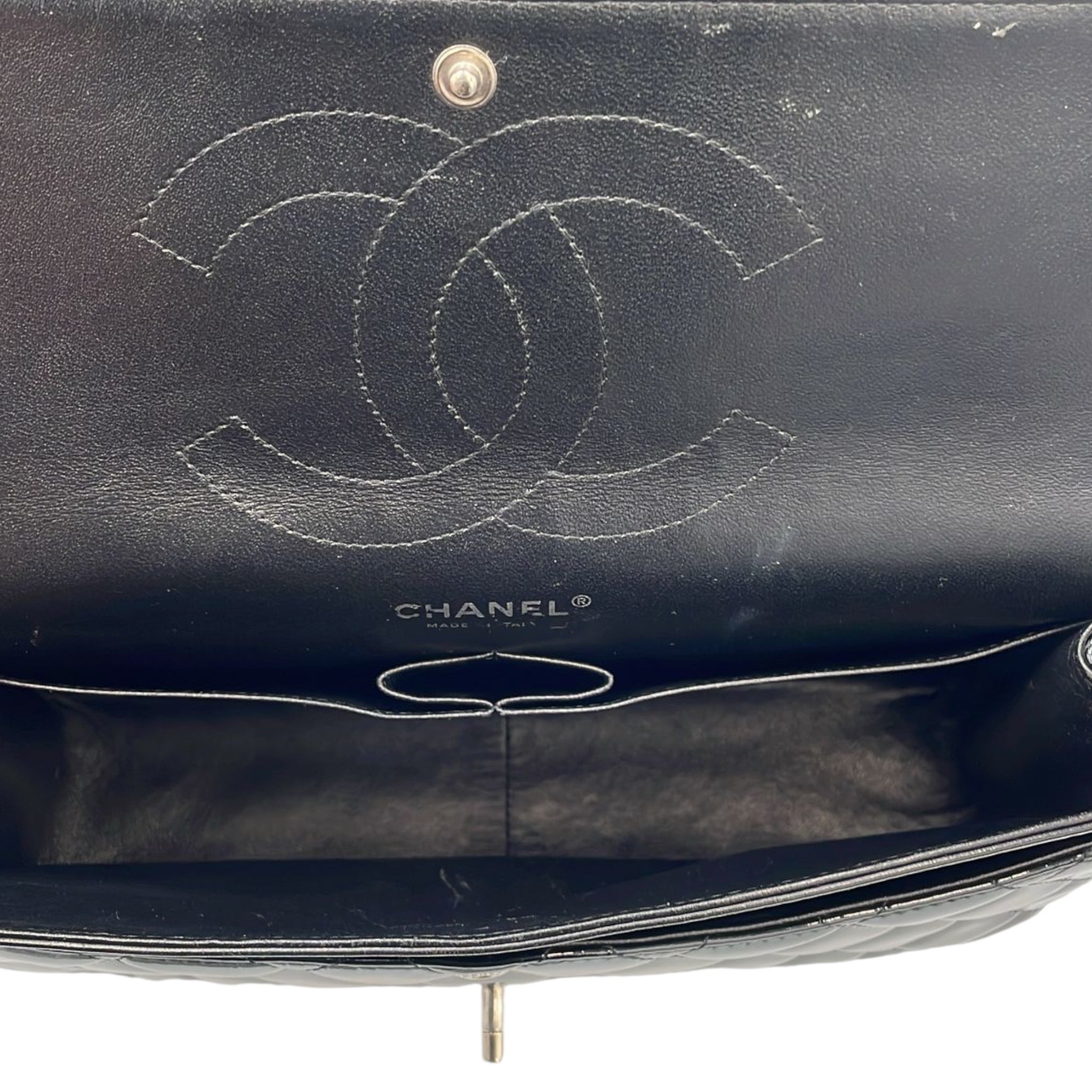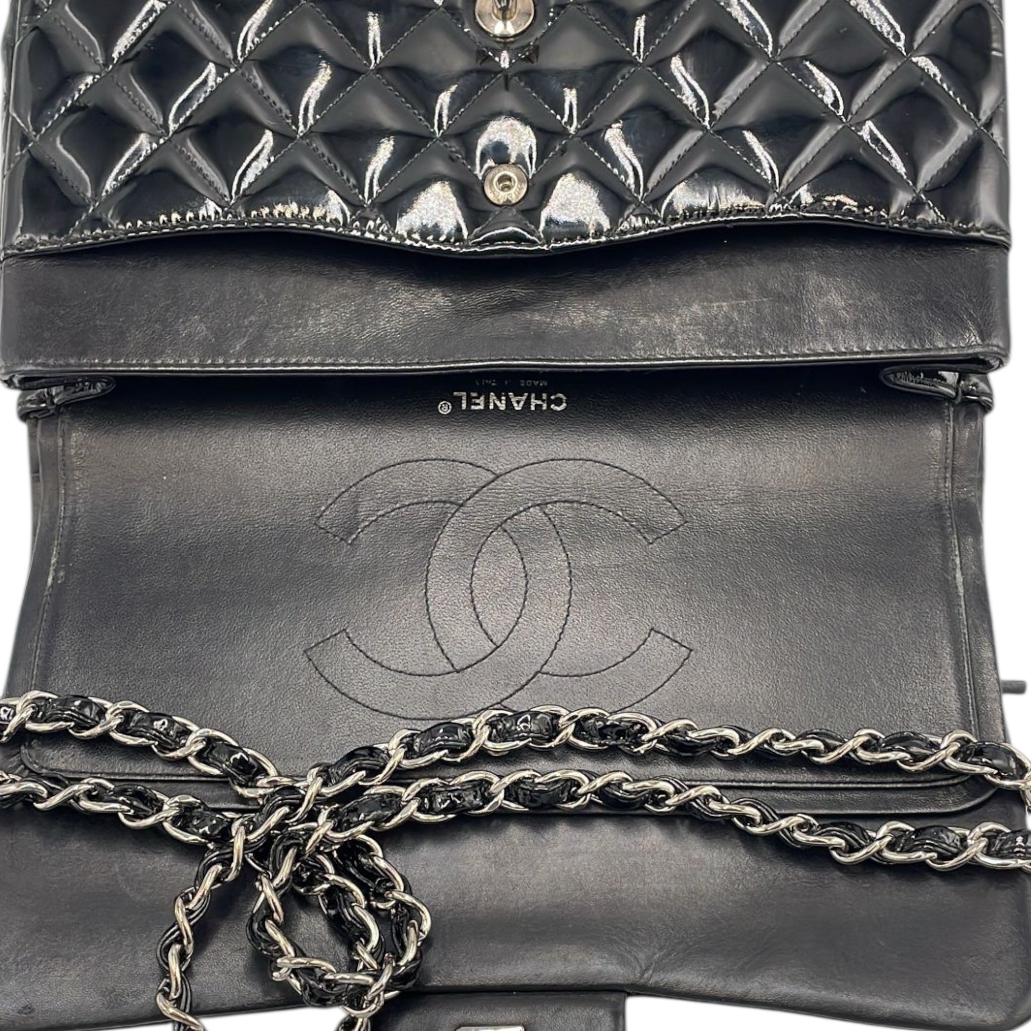 Chanel Classic Double Flap Jumbo Black Patent Leather Silver