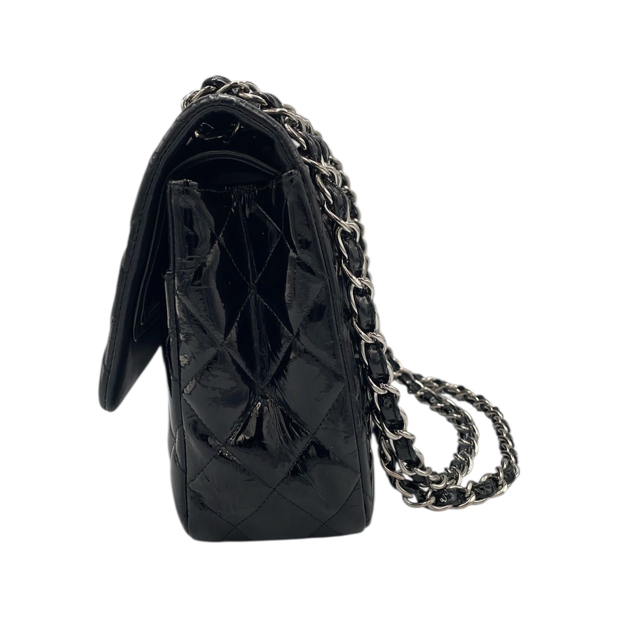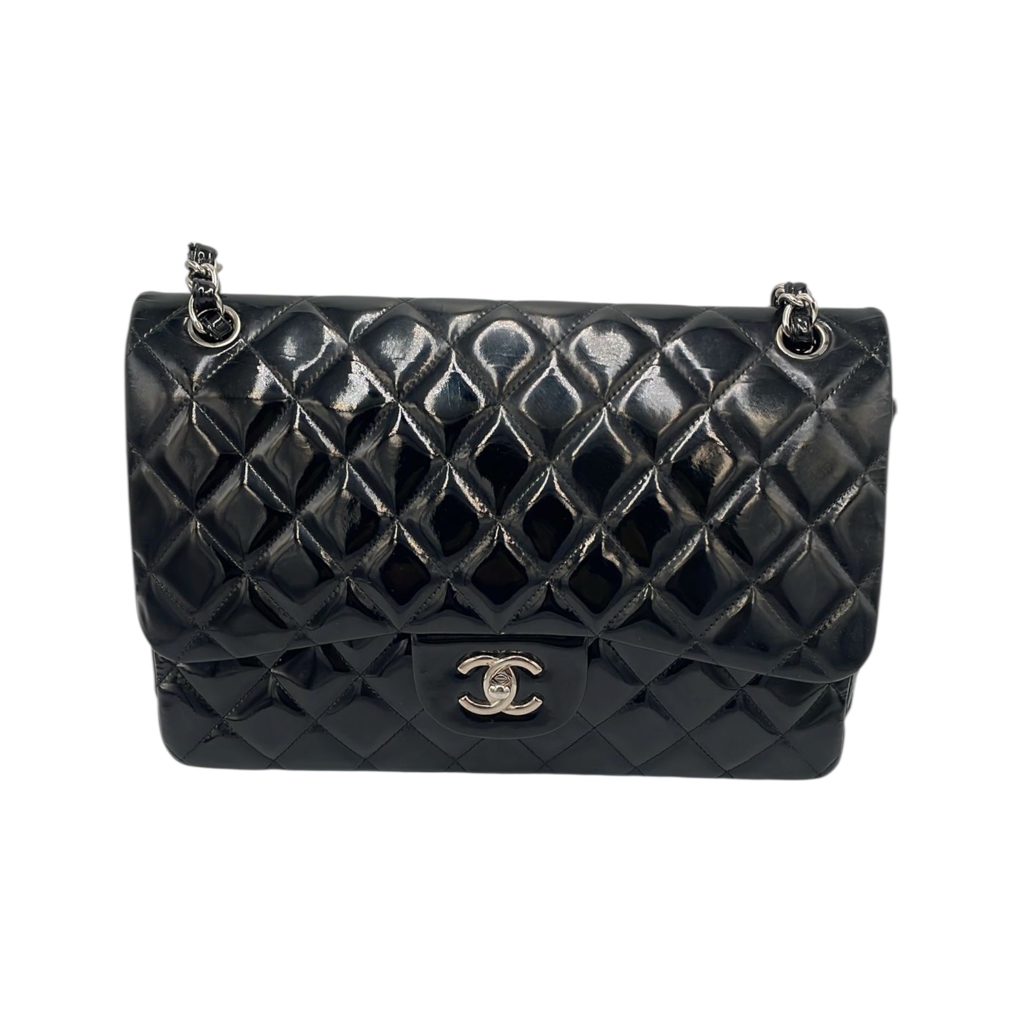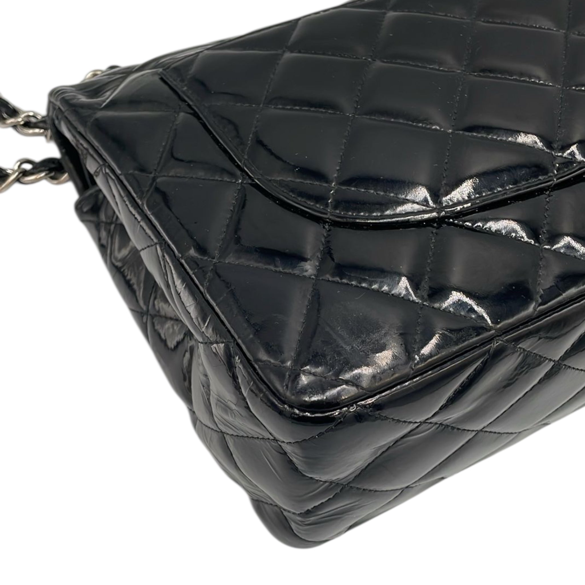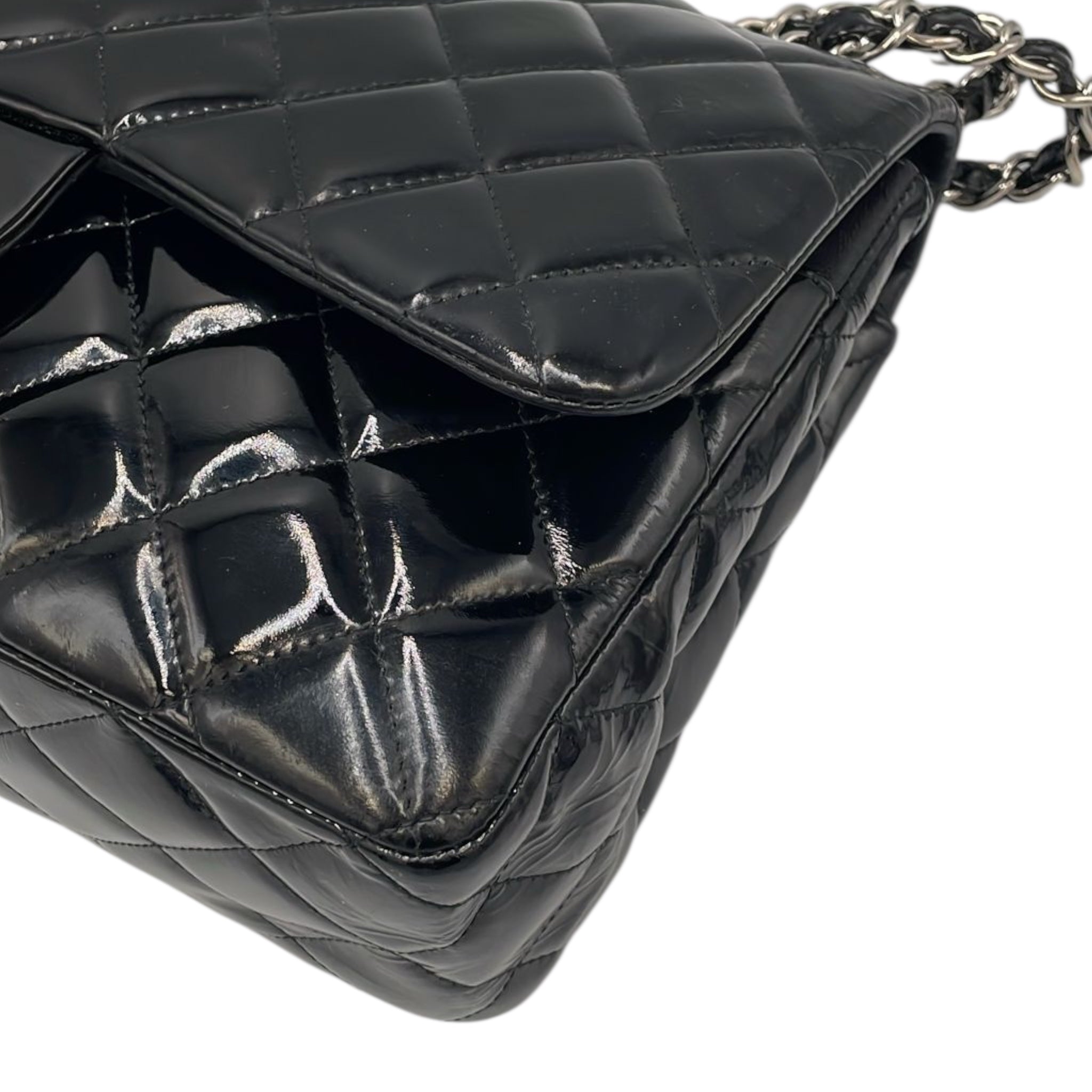 Chanel Classic Double Flap Jumbo Black Patent Leather Silver