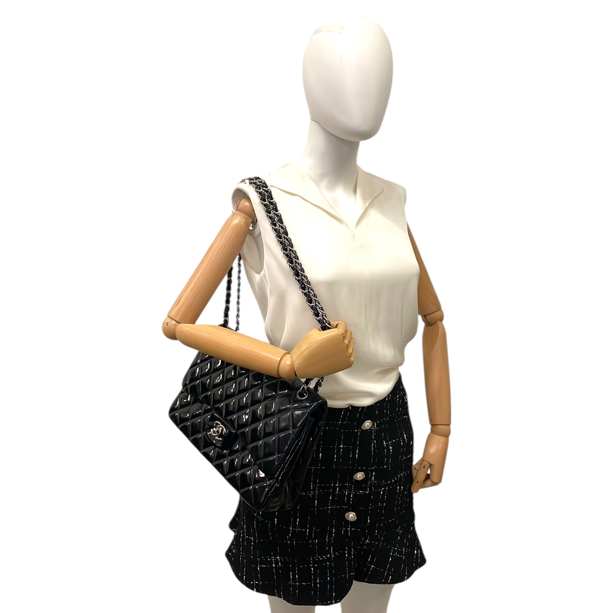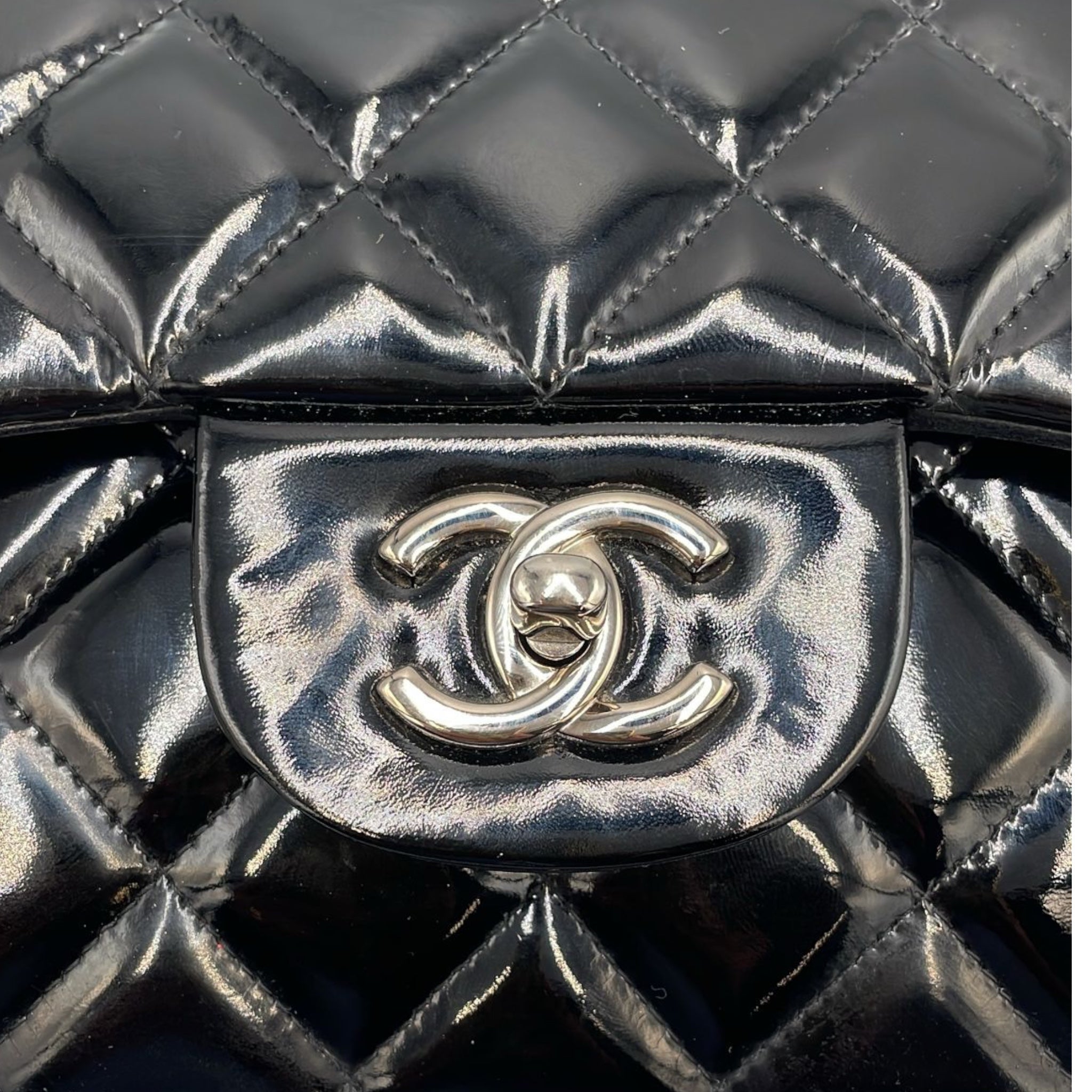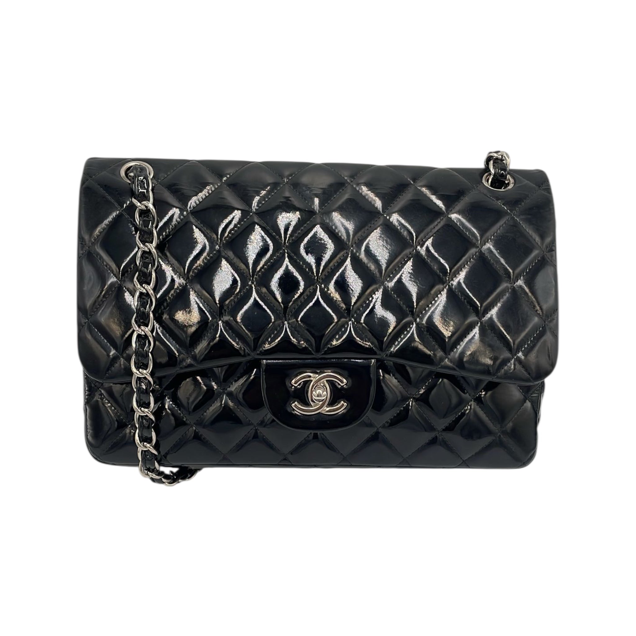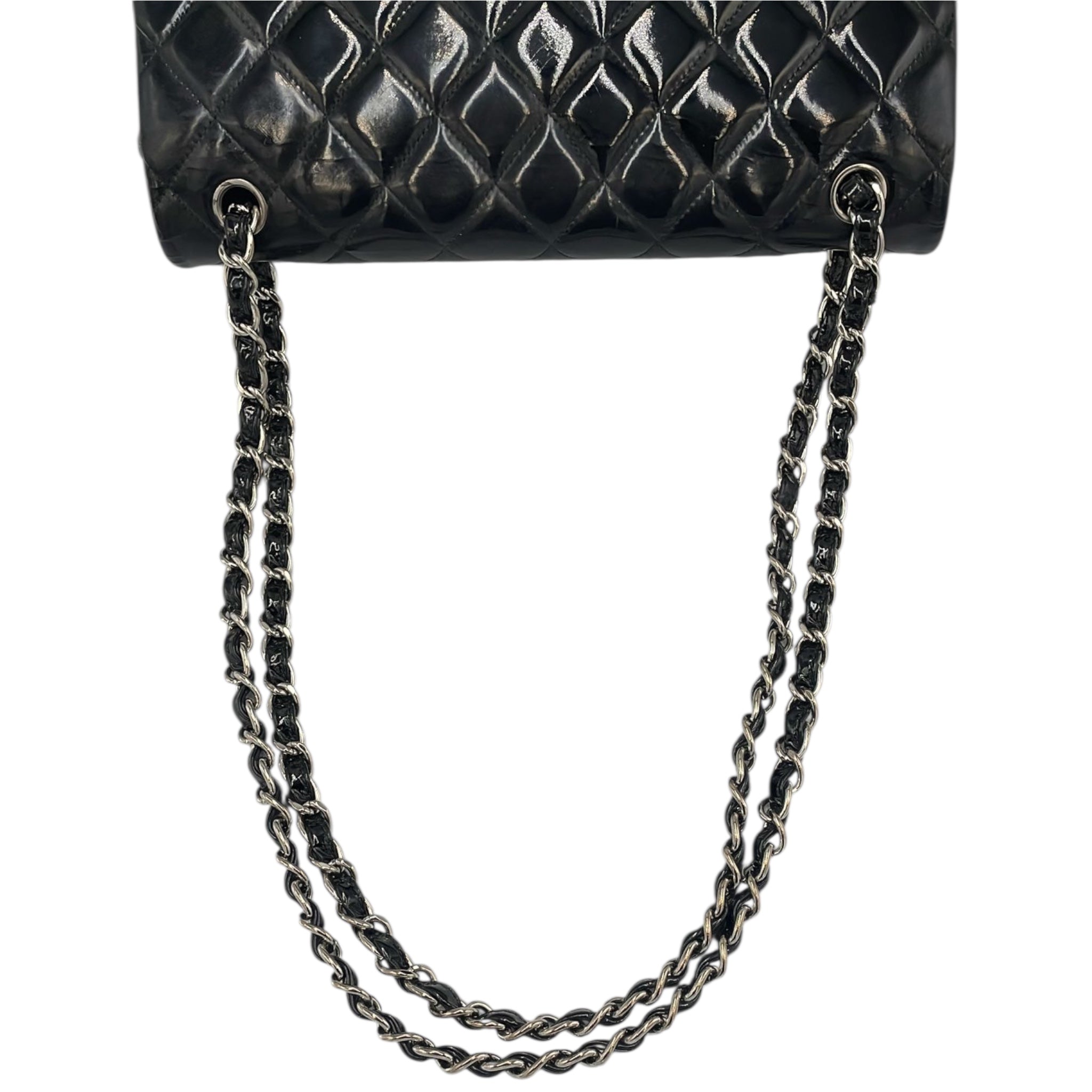 Chanel Classic Double Flap Jumbo Black Patent Leather Silver