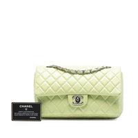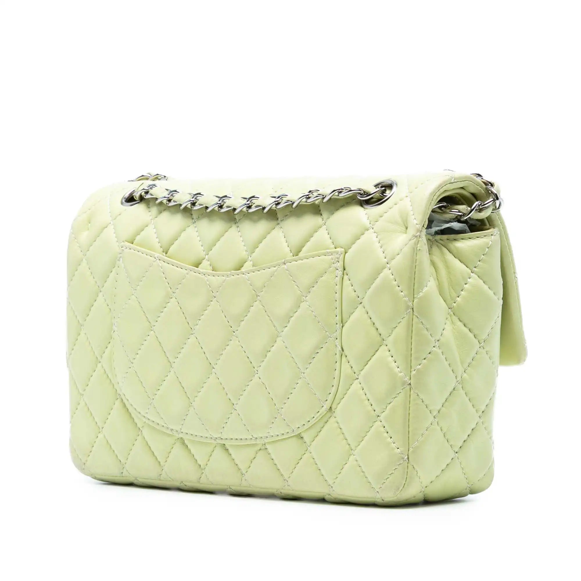 Chanel Classic Double Flap Medium Green Lambskin Silver