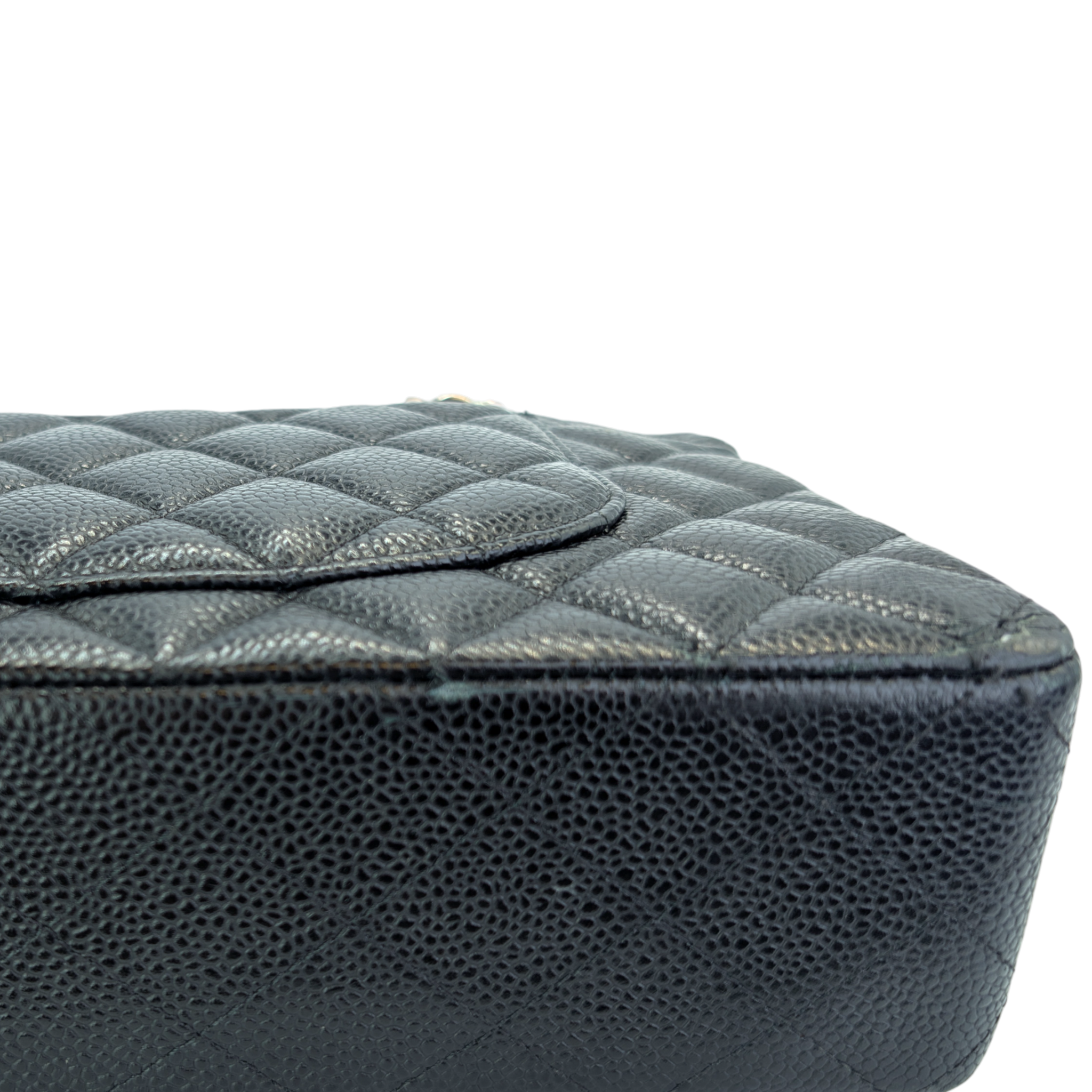 The Chanel Classic Double Flap Medium in black Caviar leather with gold-colored hardware is one of the Maison's most iconic models. The timeless silhouette with diamond-shaped quilting, the CC twist lock and the interwoven chain shoulder strap has stood for classic elegance and everyday practicality for decades.