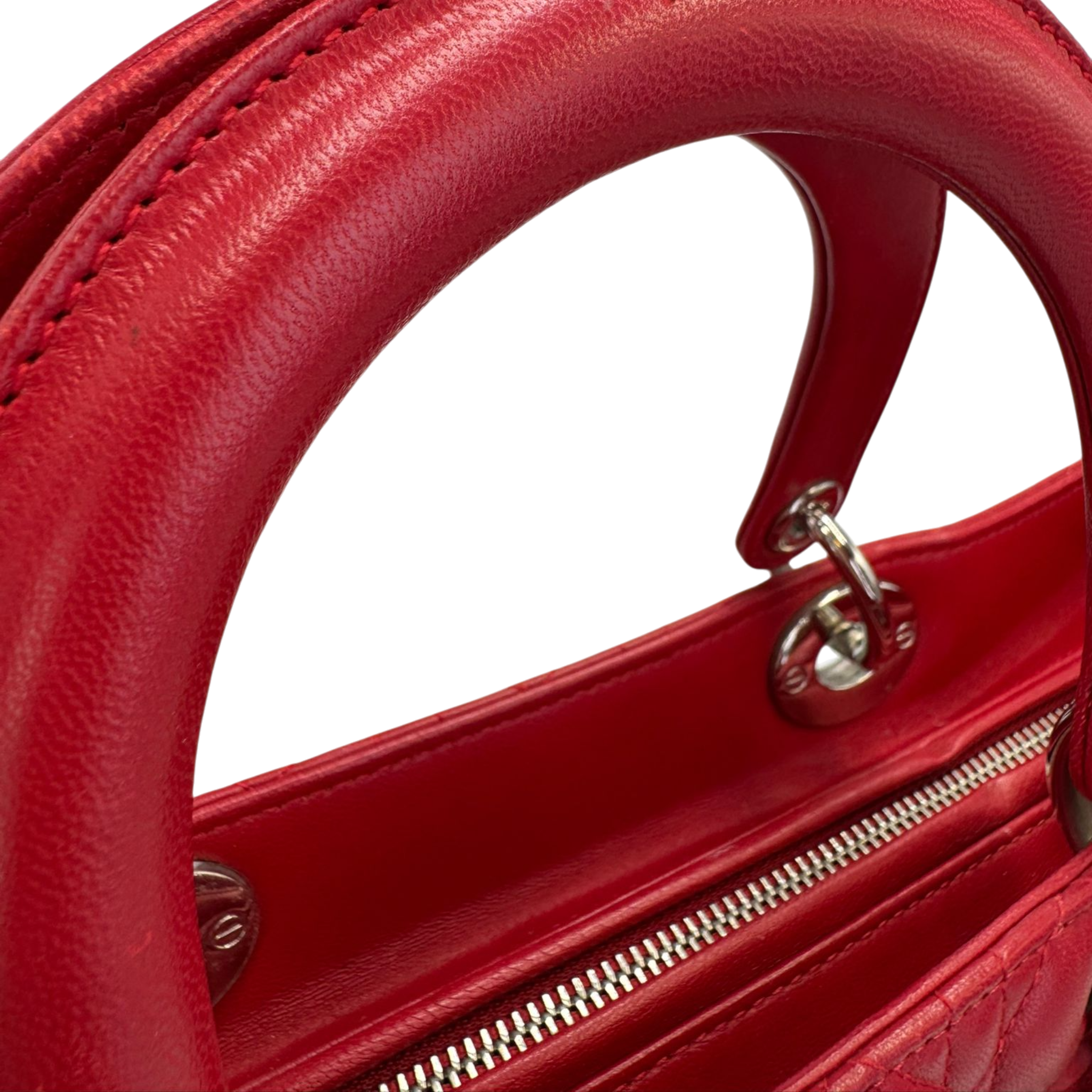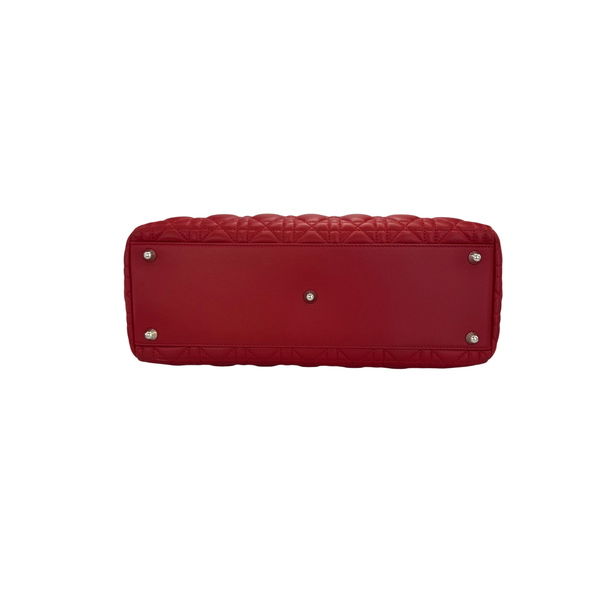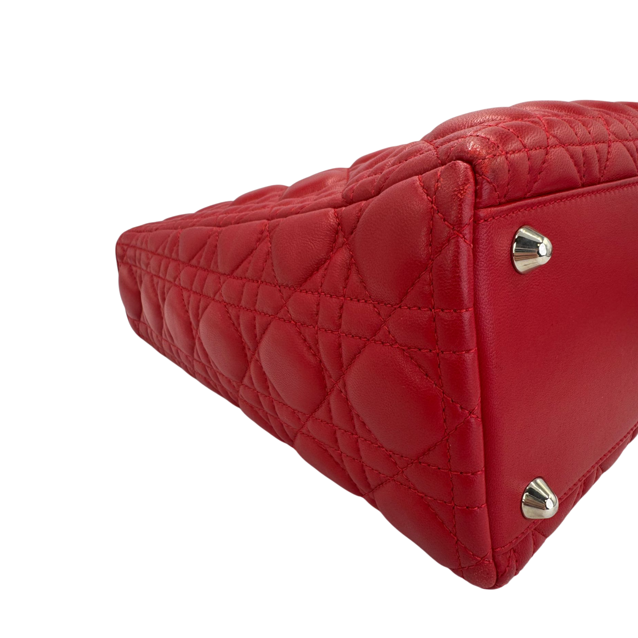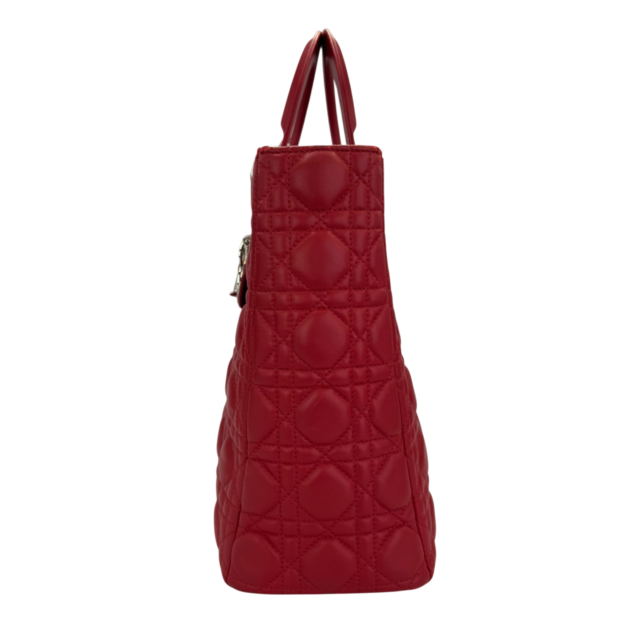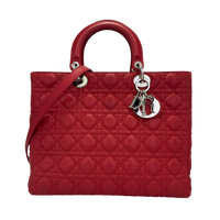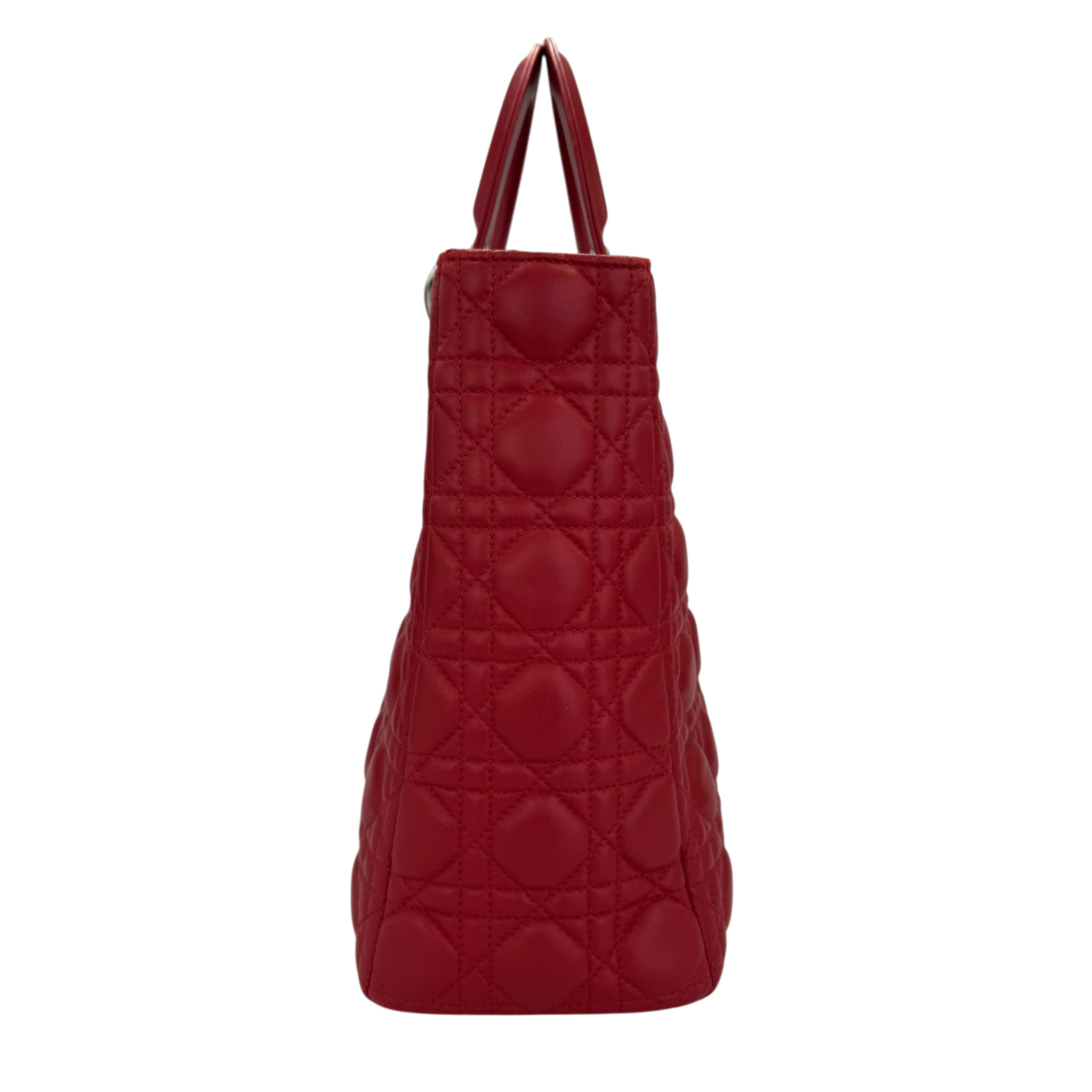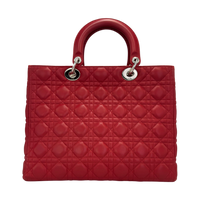 The Lady Dior Cannage Large is a timeless icon of the House of Dior and stands for classic elegance and feminine strength like no other model. Crafted from soft red lamb leather with characteristic cannage quilting, the Bag with its structured shape, the elegant Dior charms and the silver-colored metal parts, which contrast beautifully with the vibrant red.