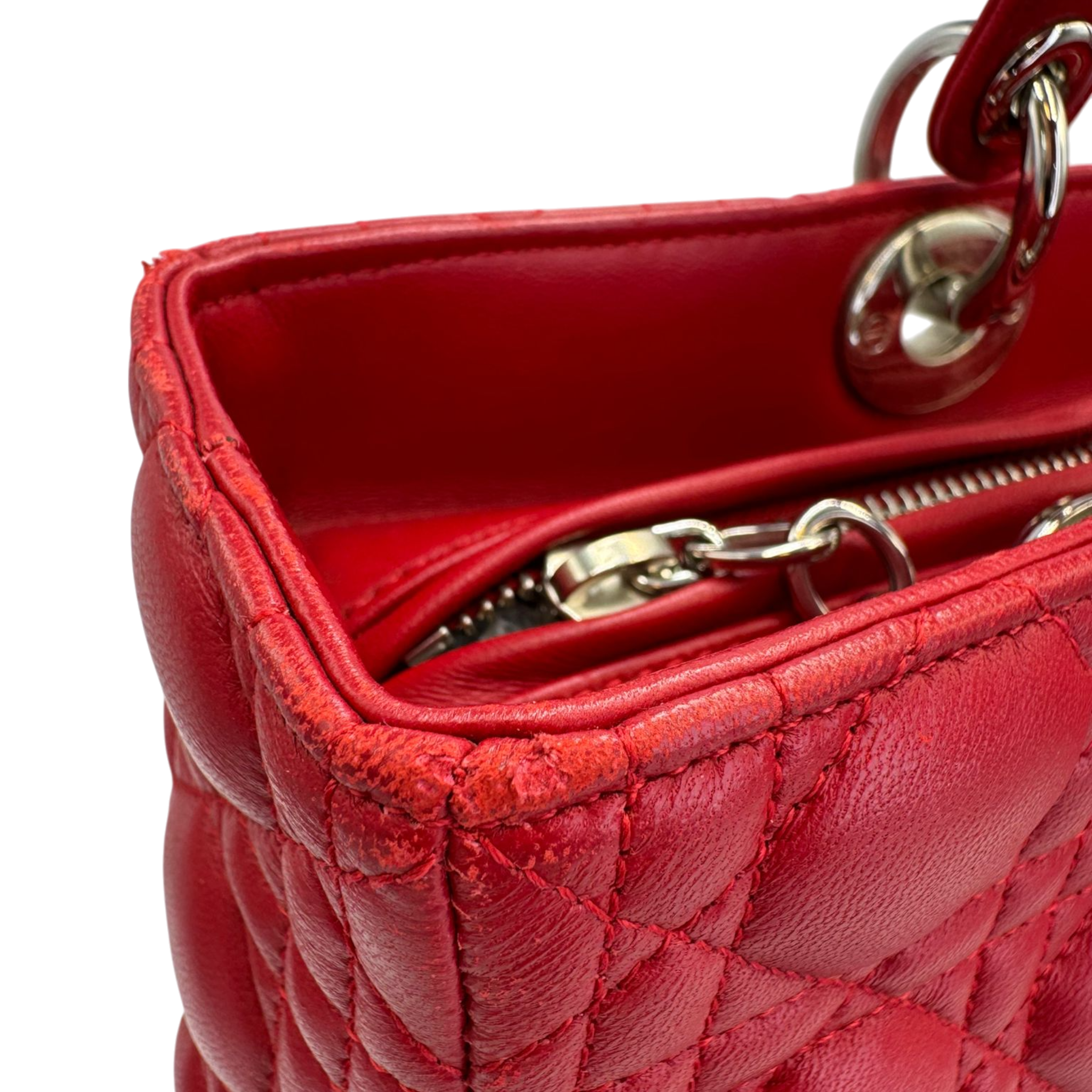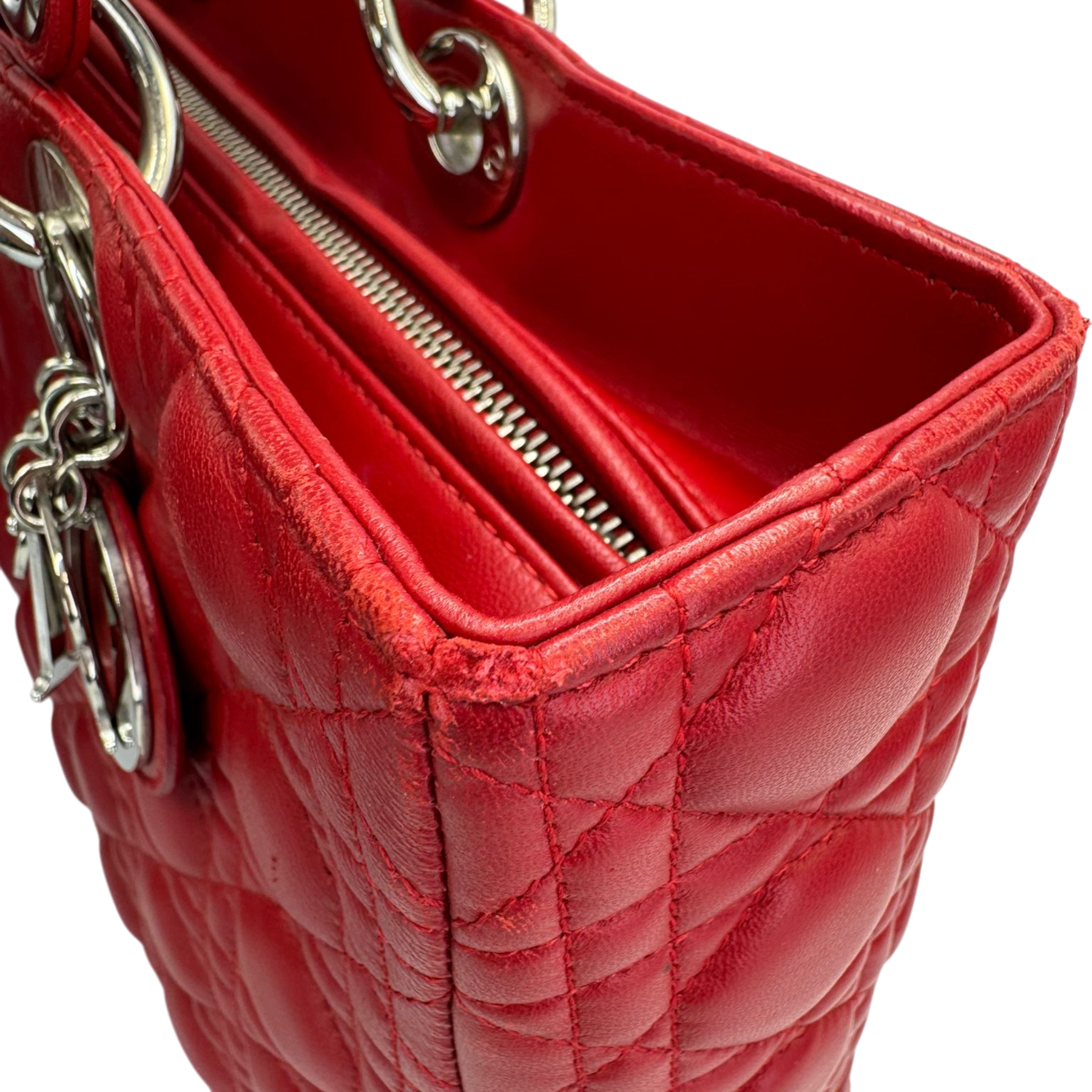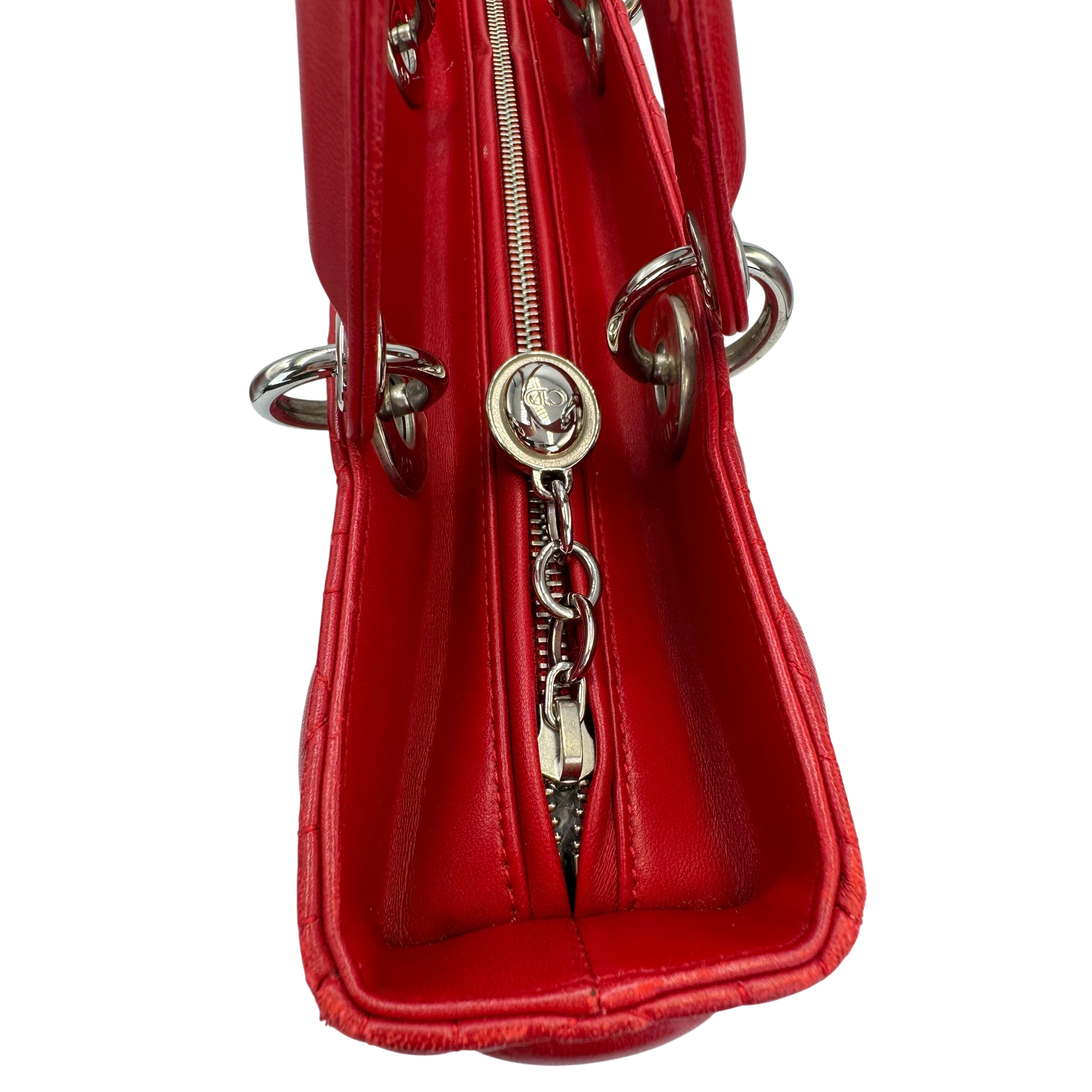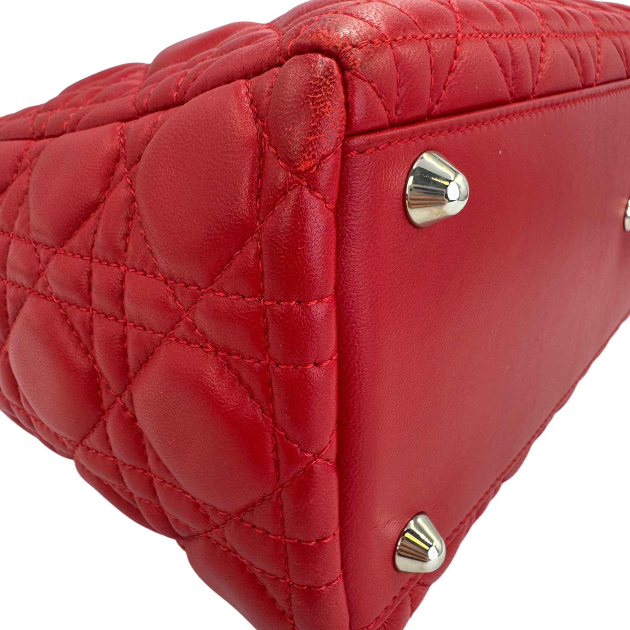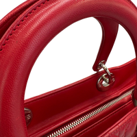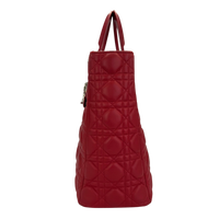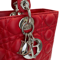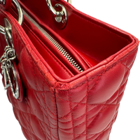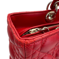The Lady Dior Cannage Large is a timeless icon of the House of Dior and stands for classic elegance and feminine strength like no other model. Crafted from soft red lamb leather with characteristic cannage quilting, the Bag with its structured shape, the elegant Dior charms and the silver-colored metal parts, which contrast beautifully with the vibrant red.
