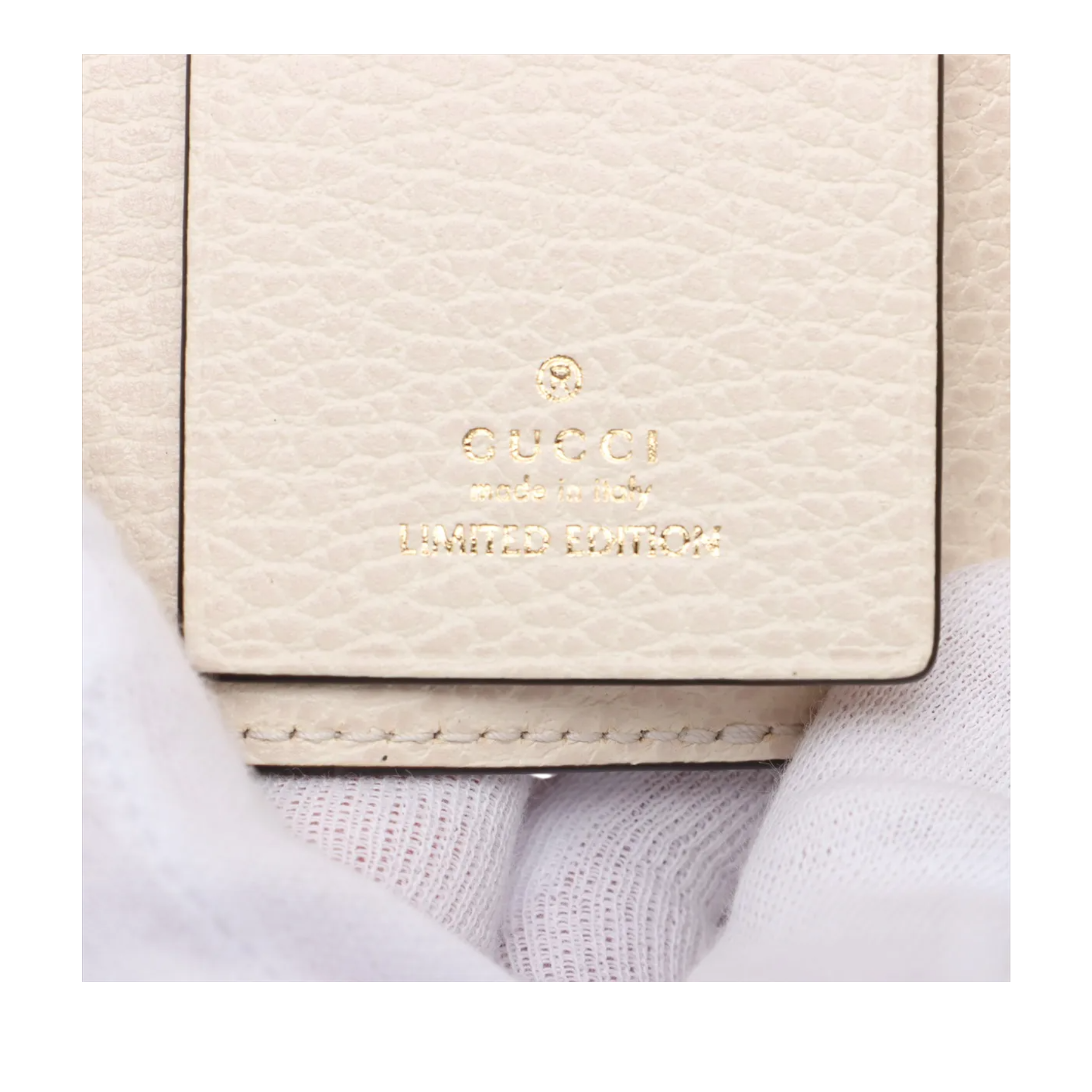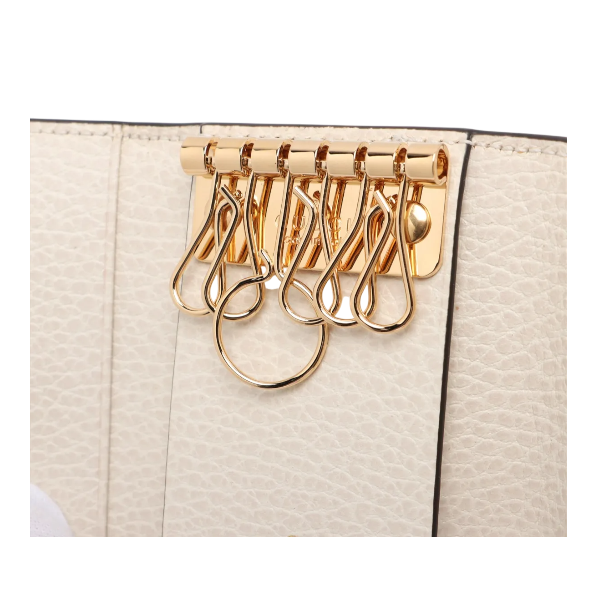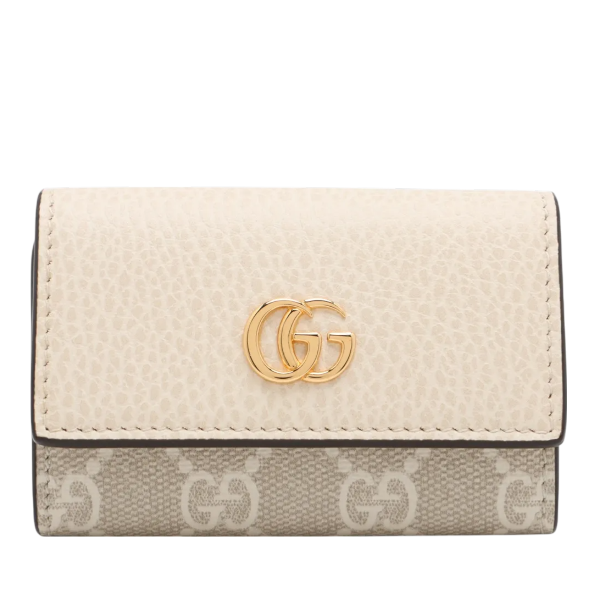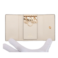This elegant Gucci key case combines iconic design with everyday practicality. Made from the classic GG Supreme canvas in beige and ecru and complemented by fine-grained leather in light cream, the case looks timeless, elegant and easy to combine. The gold-colored GG logo on the front adds a luxurious accent without being intrusive.
