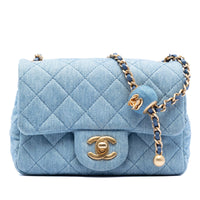 Chanel Classic Single Flap Mini Square Blue Denim Jersey Pearl Crush
