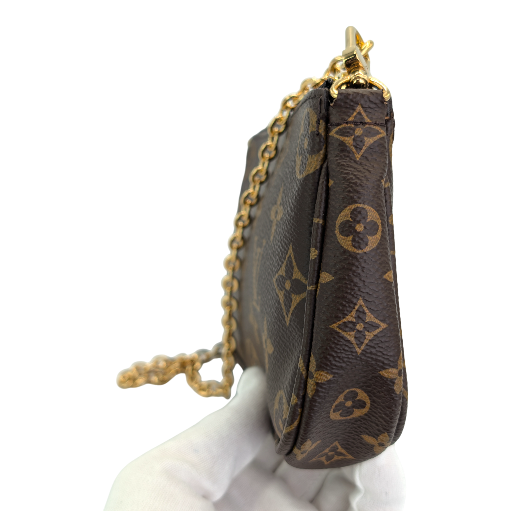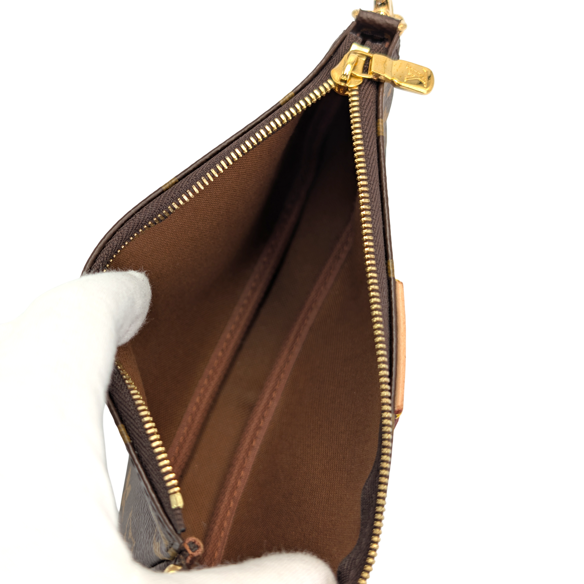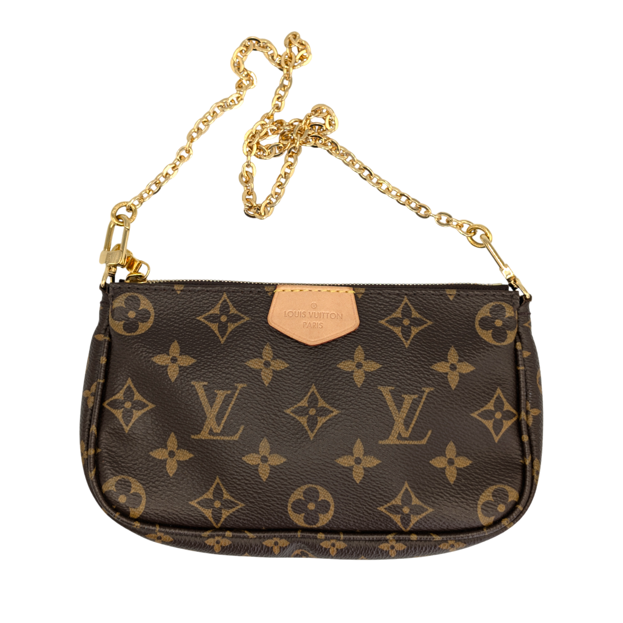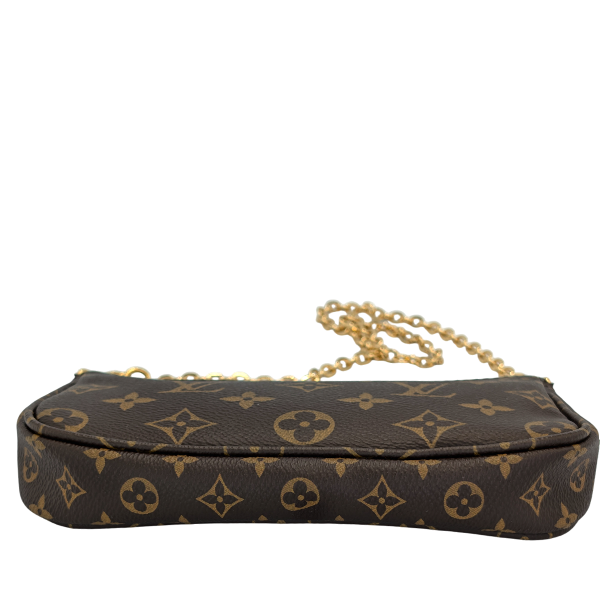 The Louis Vuitton Multi Pochette Accessories is one of those bags that makes you wonder how you ever managed without it. Three favorite pieces in one - a Pochette Accessories, a Mini Pochette and a round coin purse - all made from iconic Monogram canvas, perfectly combined. The wide jacquard strap in fine pink is not only an eye-catcher, but also incredibly practical: adjustable, removable and comfortable to wear. Add a gold-colored chain for an elegant evening appearance. Whether everyday life or going out - everything is just right here. And yes: you can fall in love with her a little.
