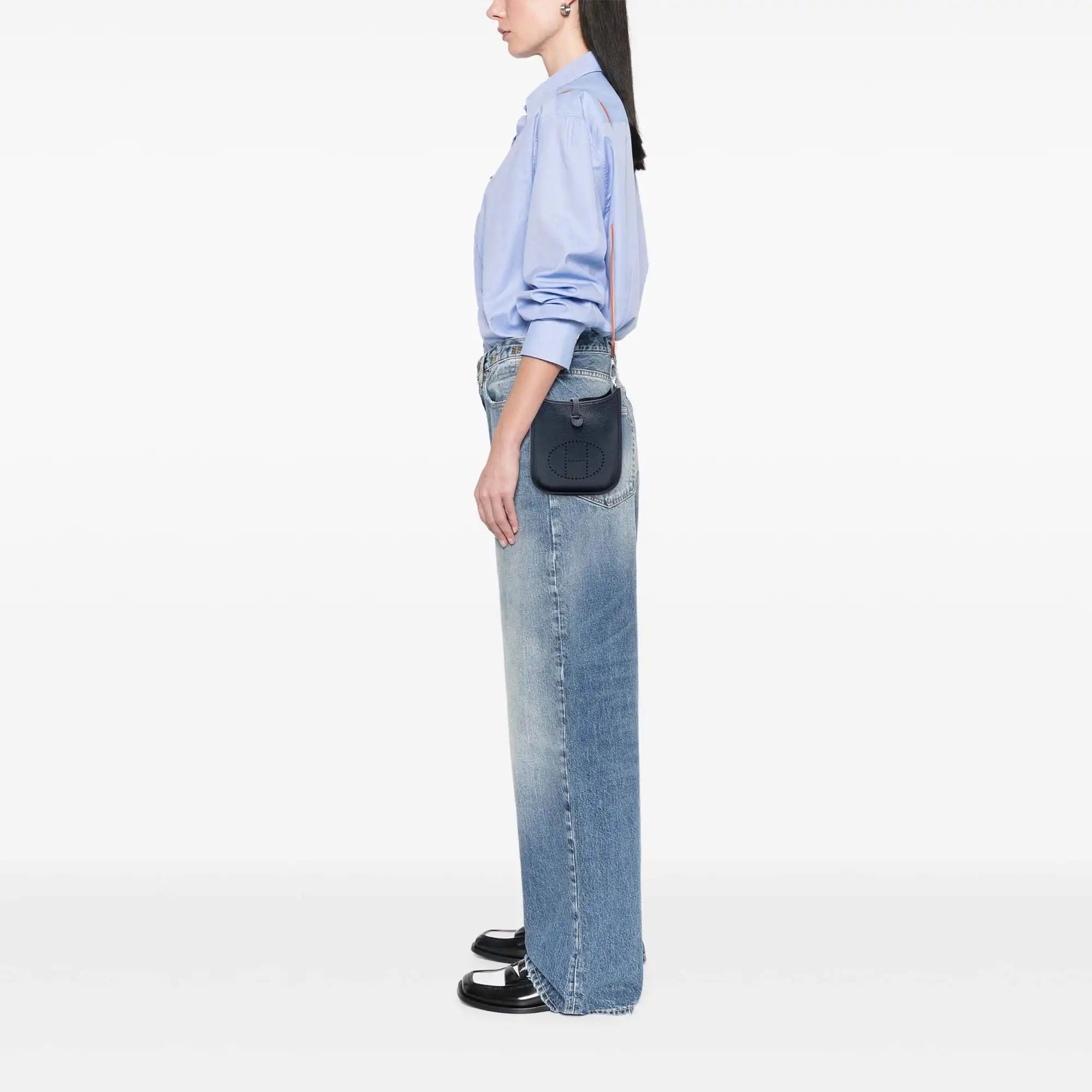 The Hermès Evelyne TPM impresses with its minimalist and elegant design. Made from high-quality Clemence leather, it impresses with its soft and durable structure. The Bag features a detachable, flat strap for versatile carrying options and an open top with a convenient snap closure.