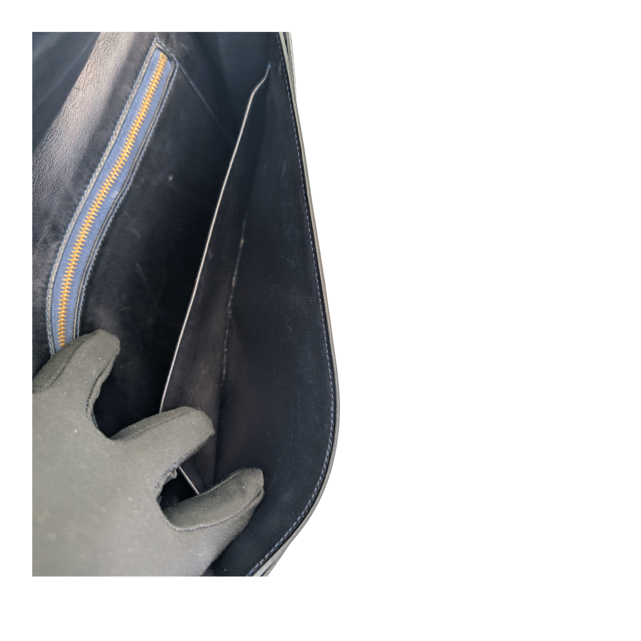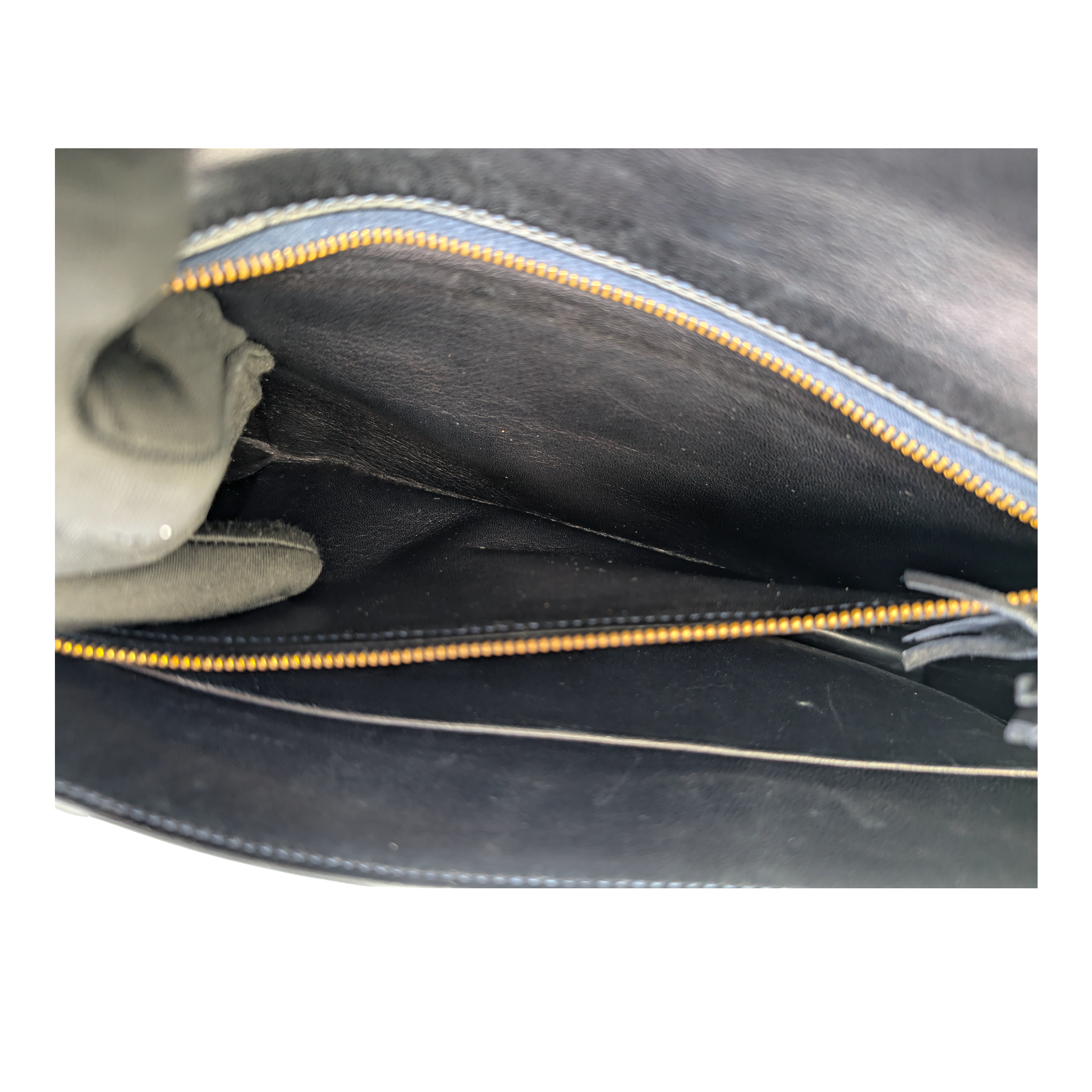 Condition: The outside front has a few scratches. The corners and edges are slightly worn. The shoulder strap shows light scuffing and wear. In the interior you can see a few scratches and signs of wear. The hardware has scratch marks.