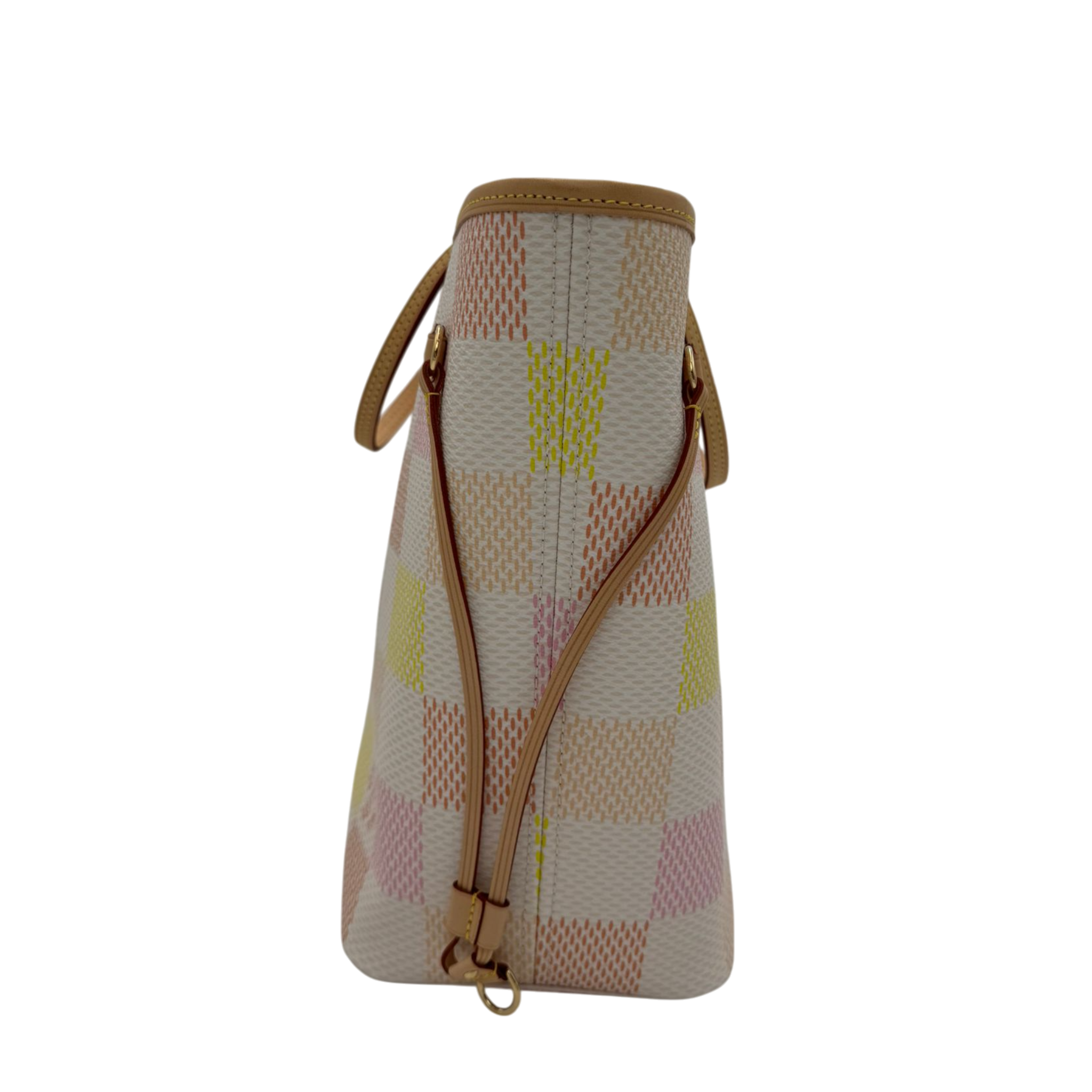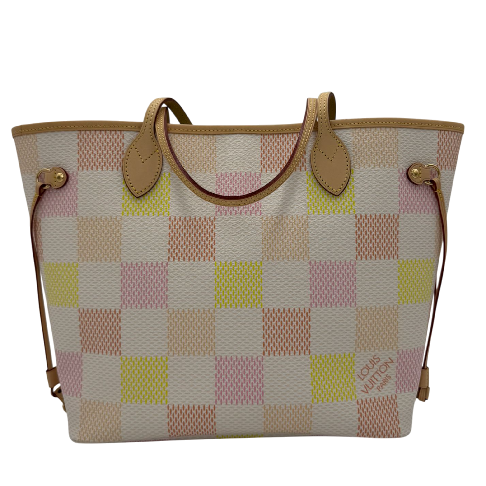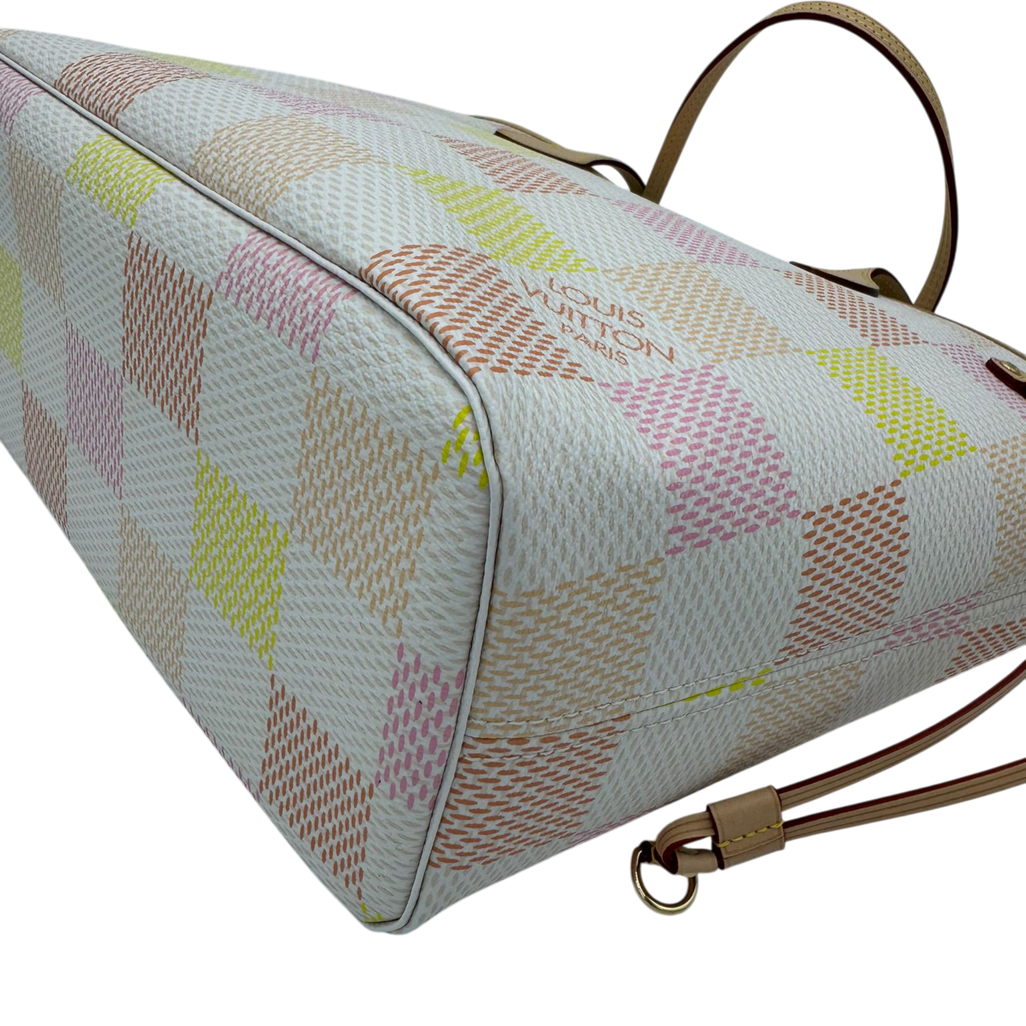 This Louis Vuitton Neverfull MM Damierlicious Peche is a modern yet iconic interpretation of an absolute classic. The colorful Damierlicious canvas in Peche gives the Bag a fresh, contemporary look and makes it a real statement piece for everyday life and travel.