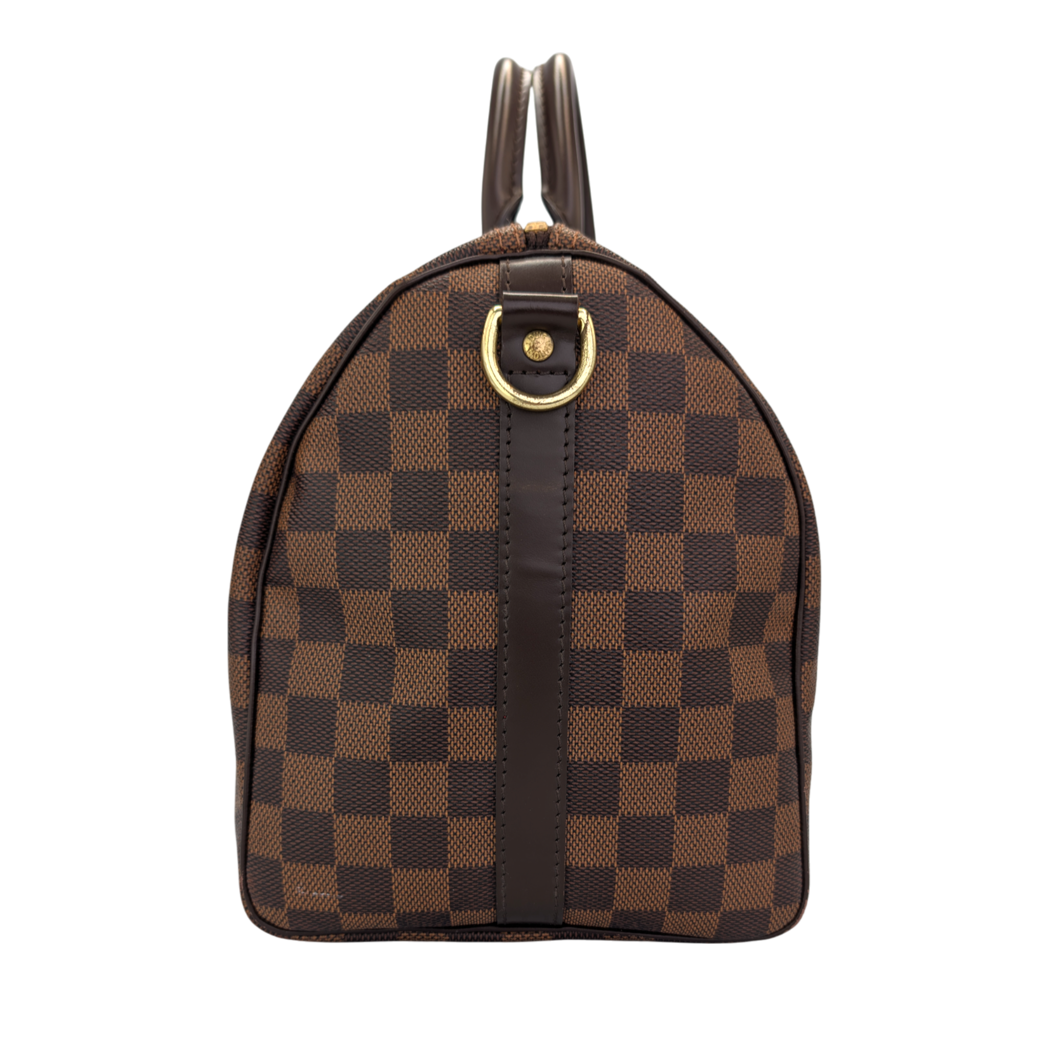 This Louis Vuitton Speedy 30 Bandoulière is made from Damier Ebene canvas. Inspired by the famous Louis Vuitton Keep All travel bag, it features a double zipper along the top. Inside it has this Bag Pockets and a zippered compartment. The Bag can be carried in the hand, in the arm or over the shoulder with the help of a removable leather strap. A beautiful classic and one of Louis Vuitton's most popular models.