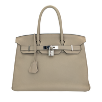 The Hermès Birkin 30 in Gris Tourelle Togo leather embodies timeless elegance and the highest level of craftsmanship. Made from the characteristic Togo leather - known for its fine grain, durability and luxurious feel - it combines classic sophistication with everyday suitability.