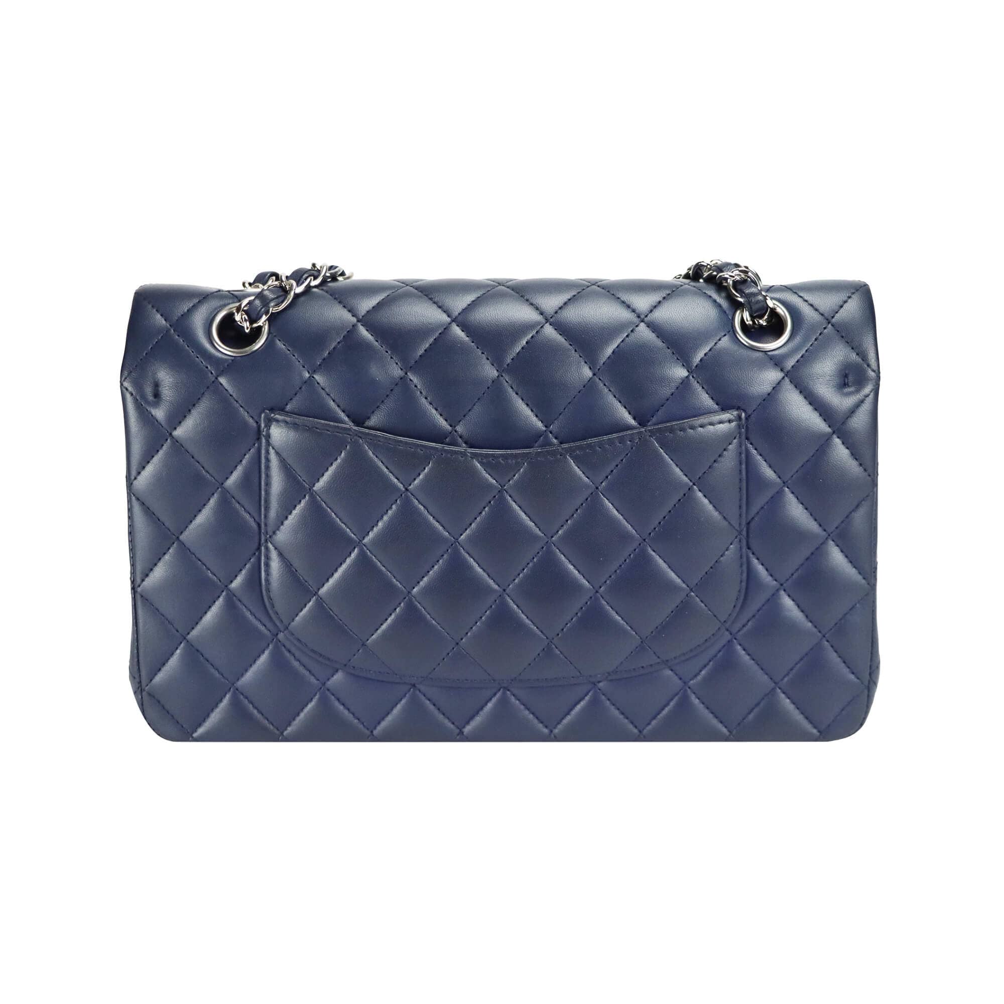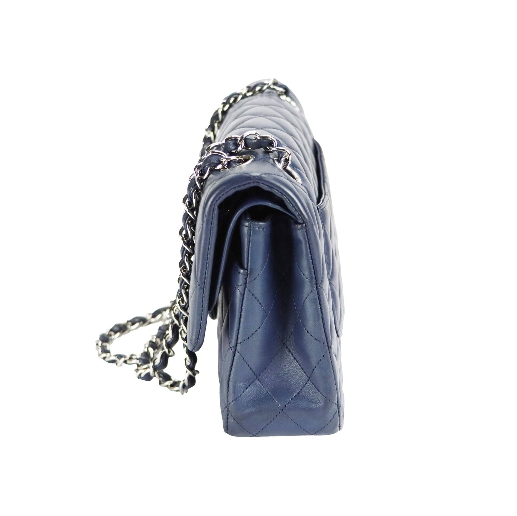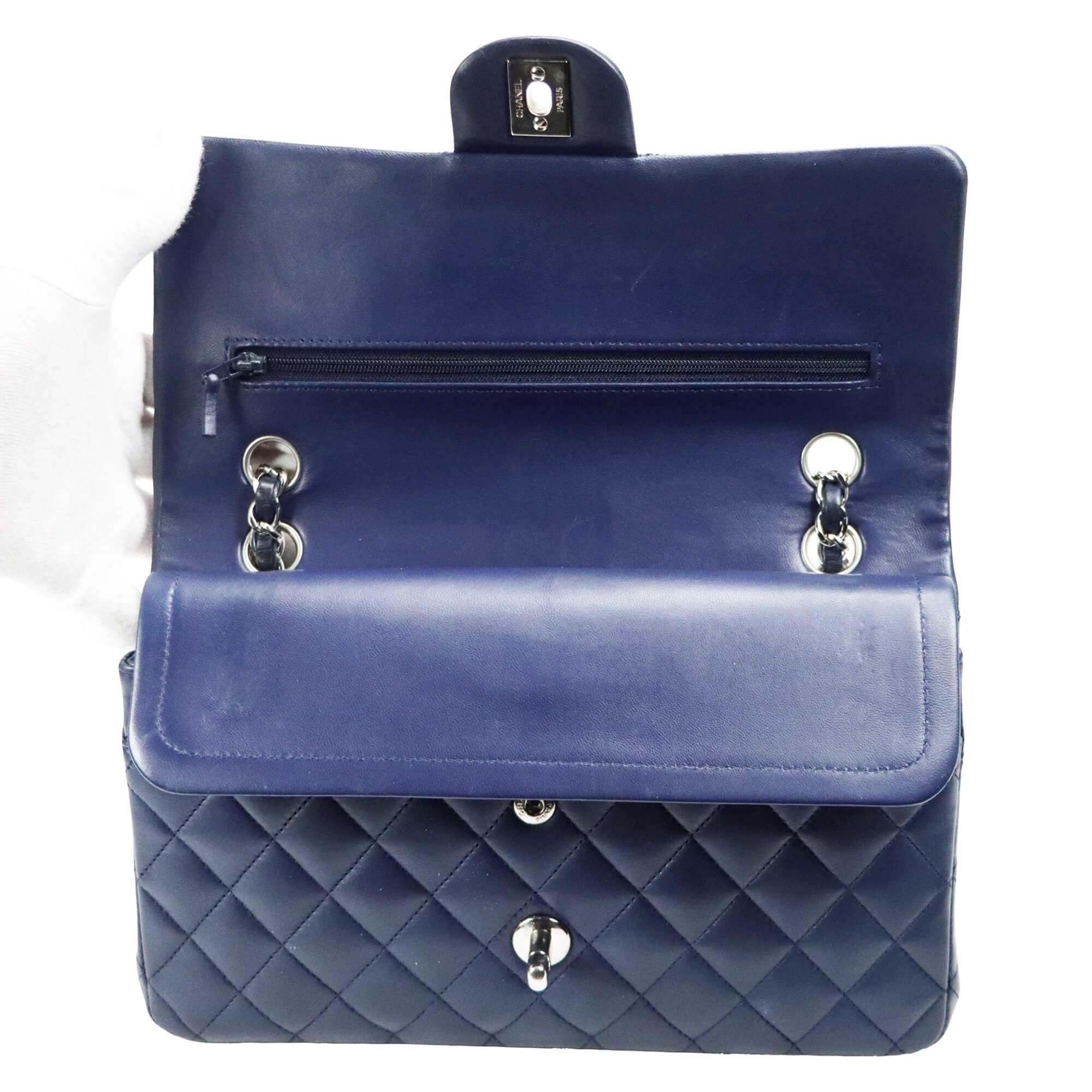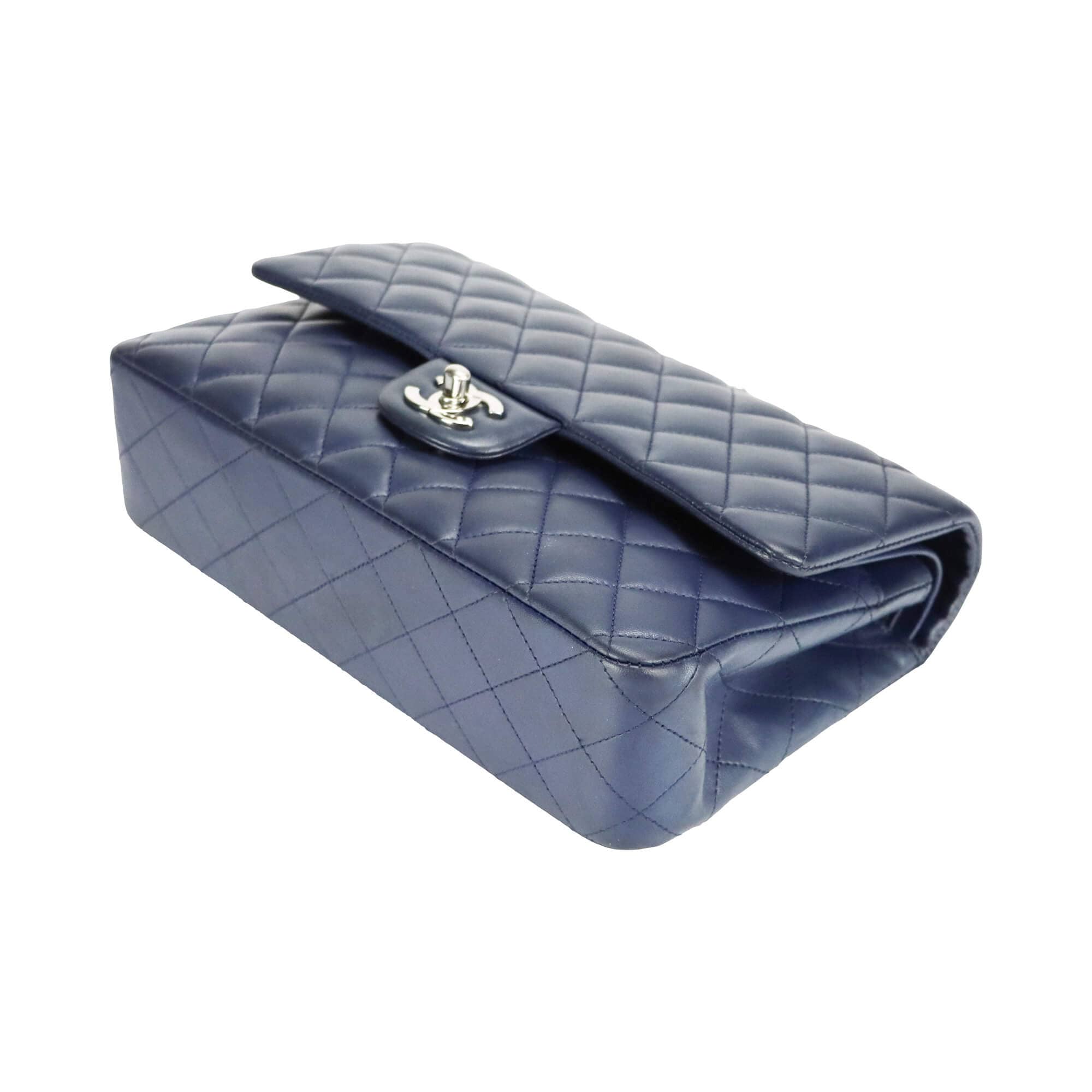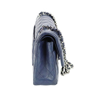 Chanel Classic Double Flap Medium Navy Lambskin Silver