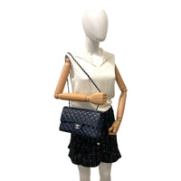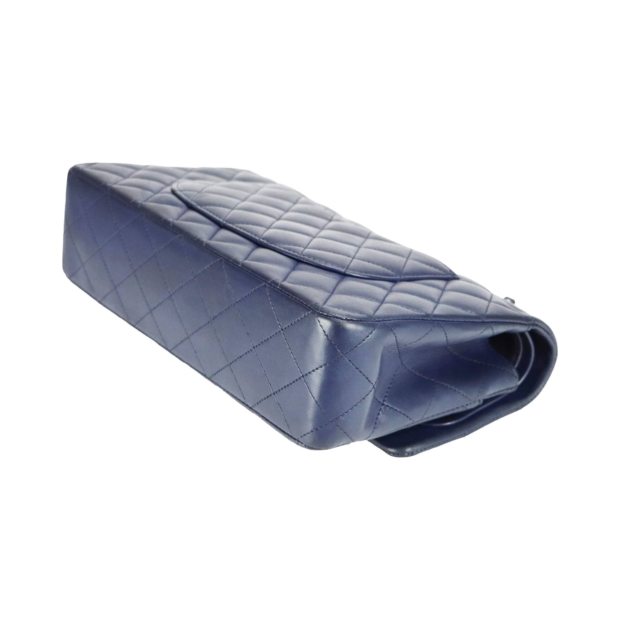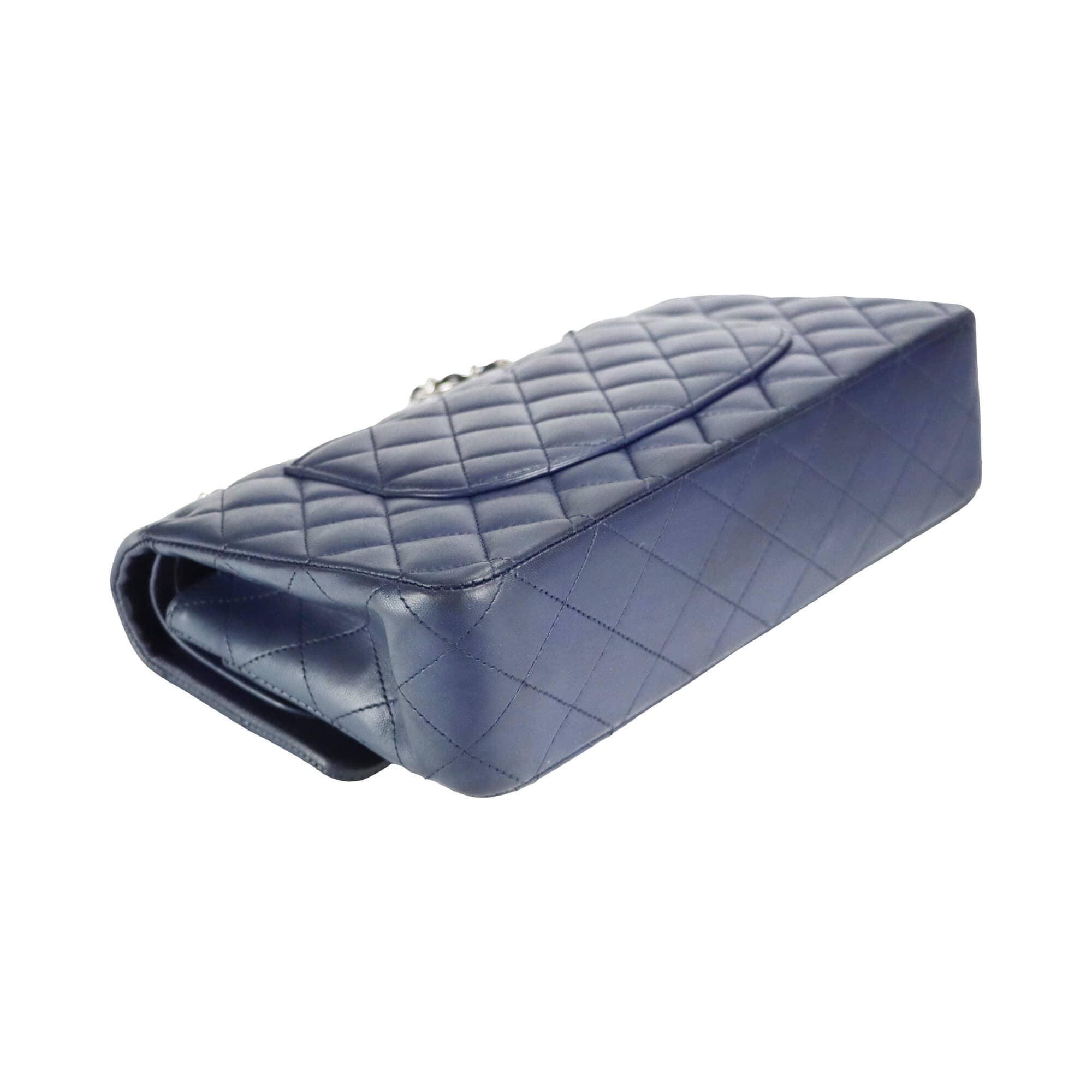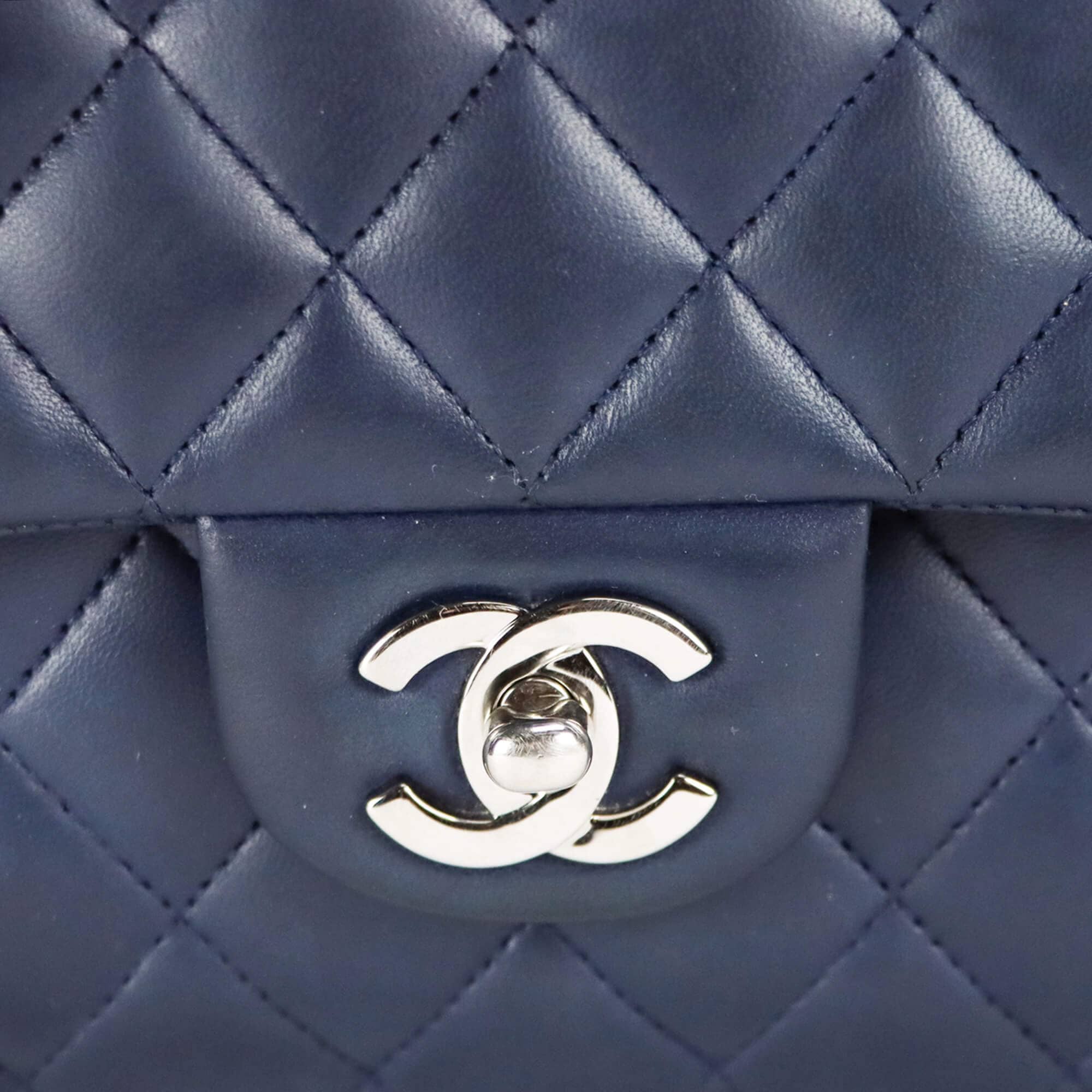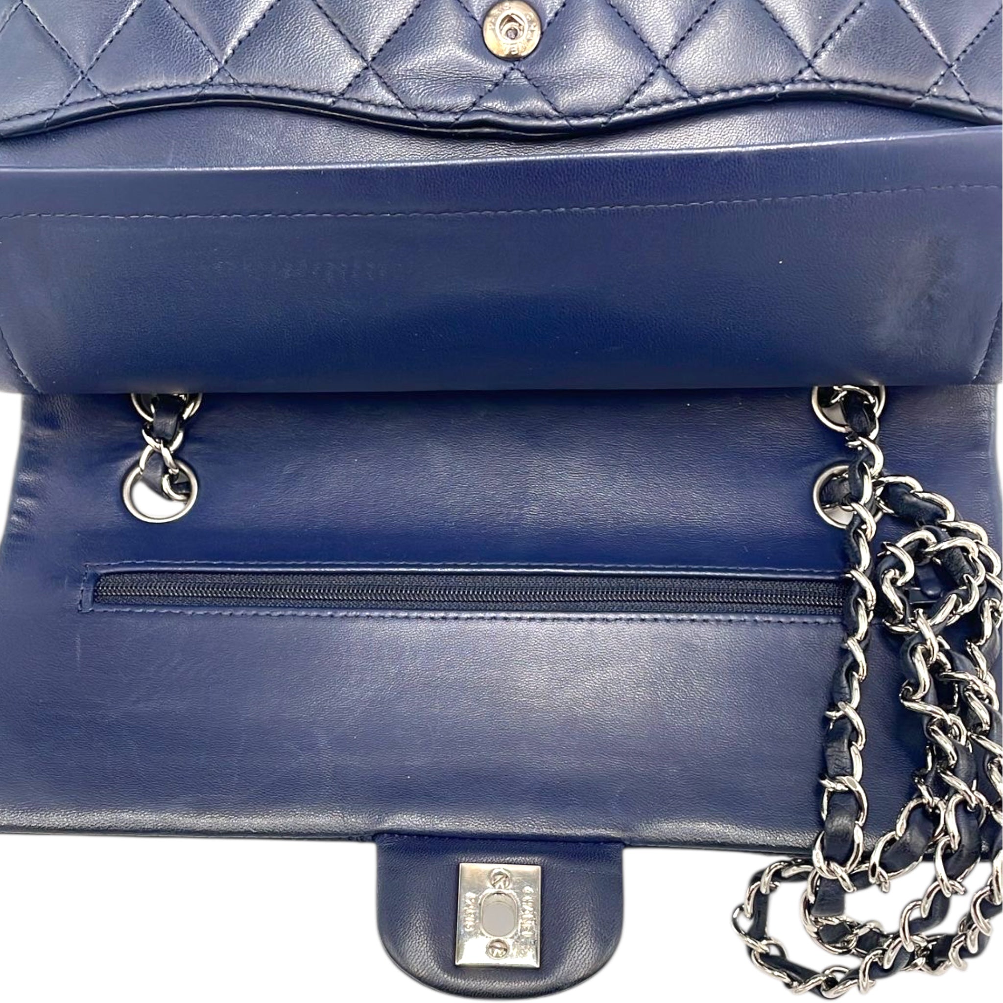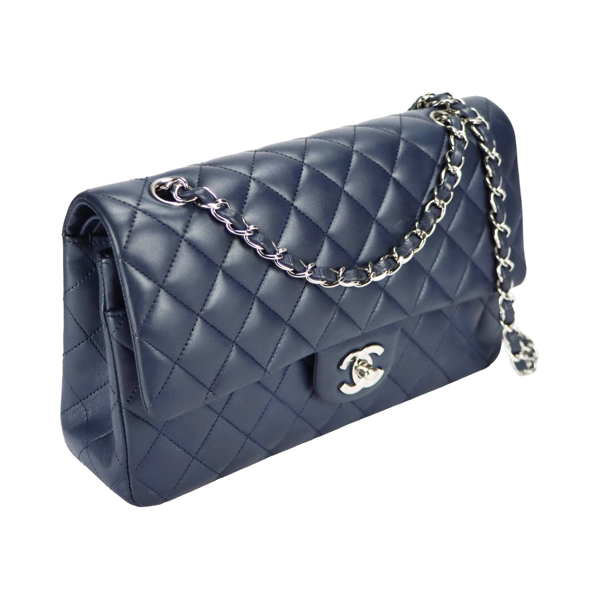 Chanel Classic Double Flap Medium Navy Lambskin Silver
