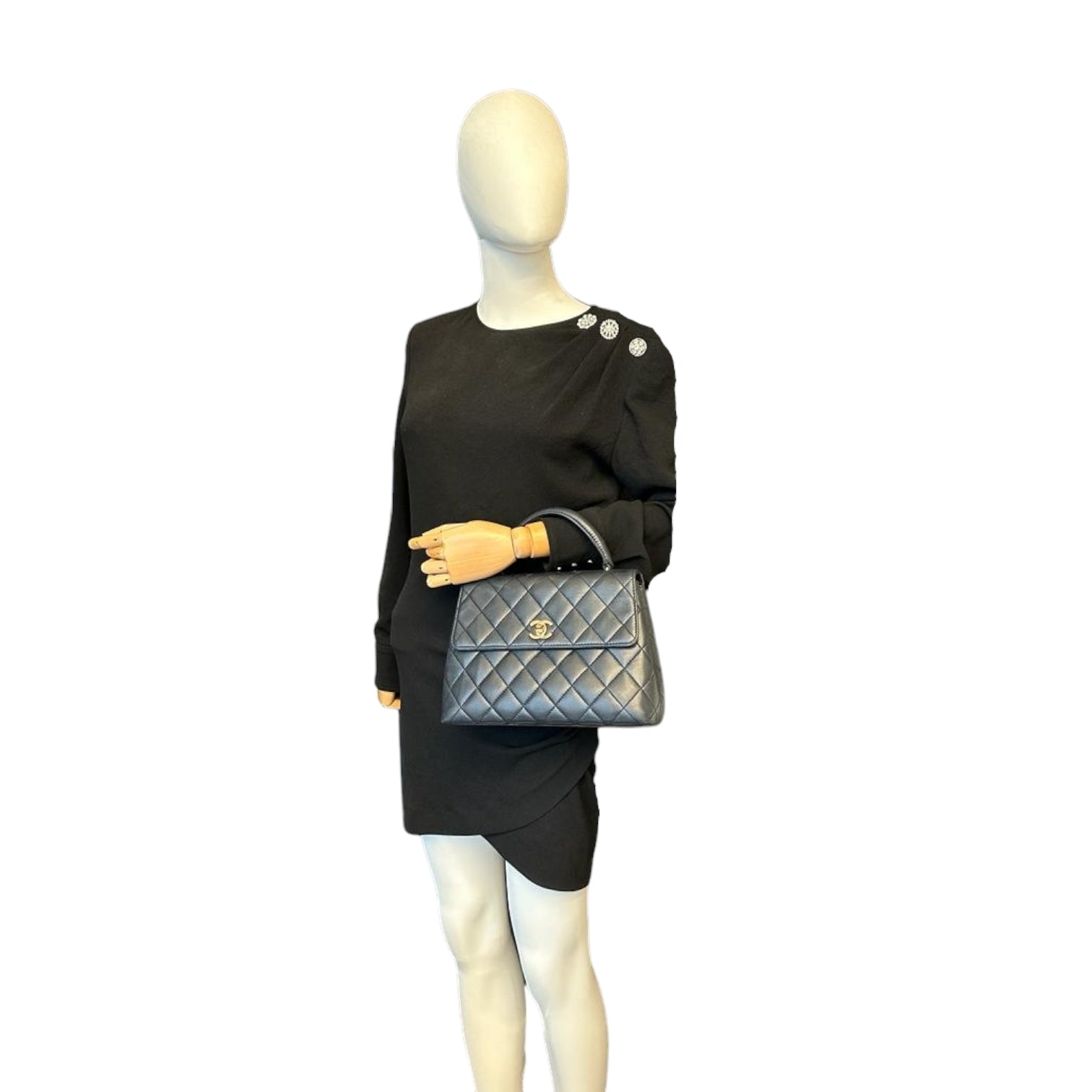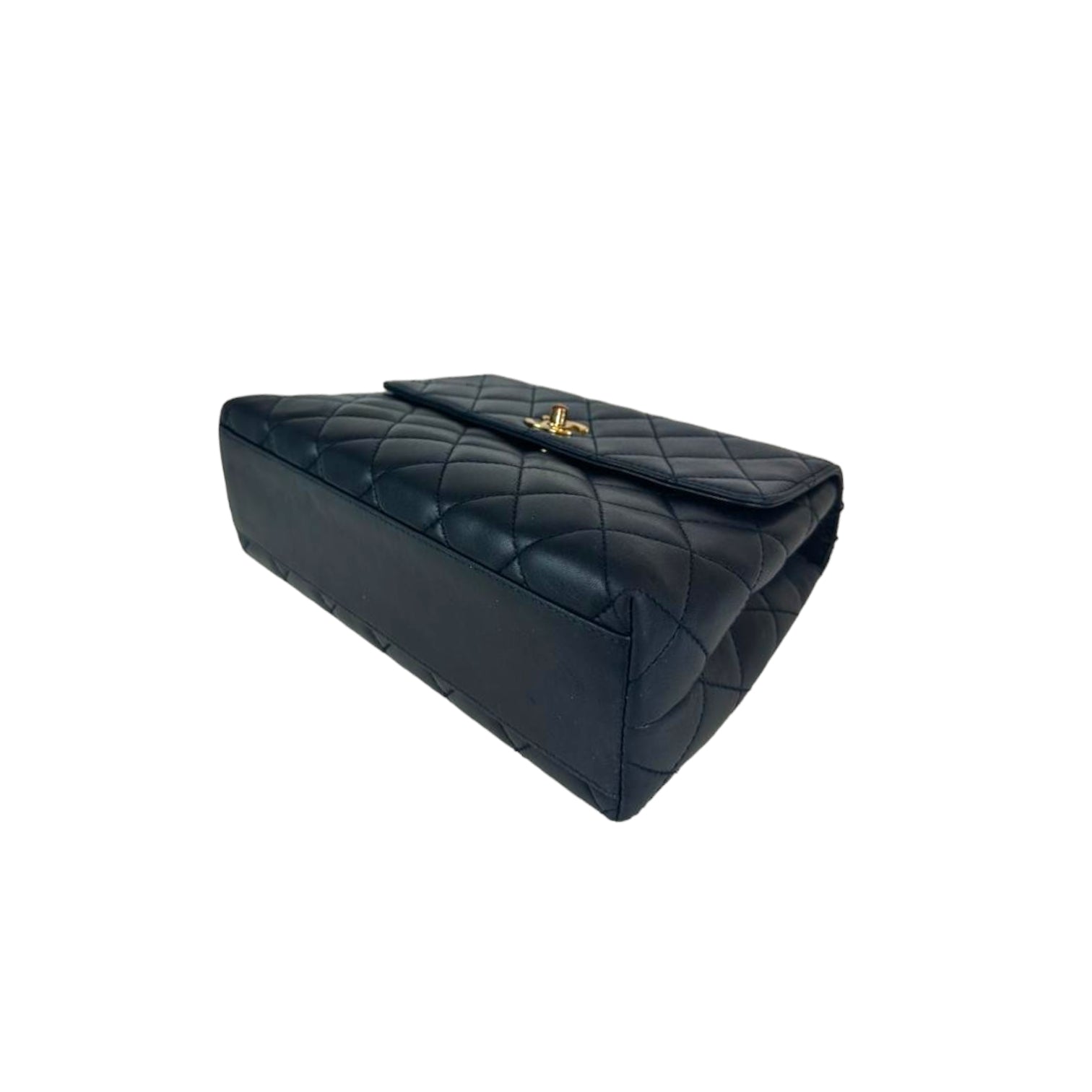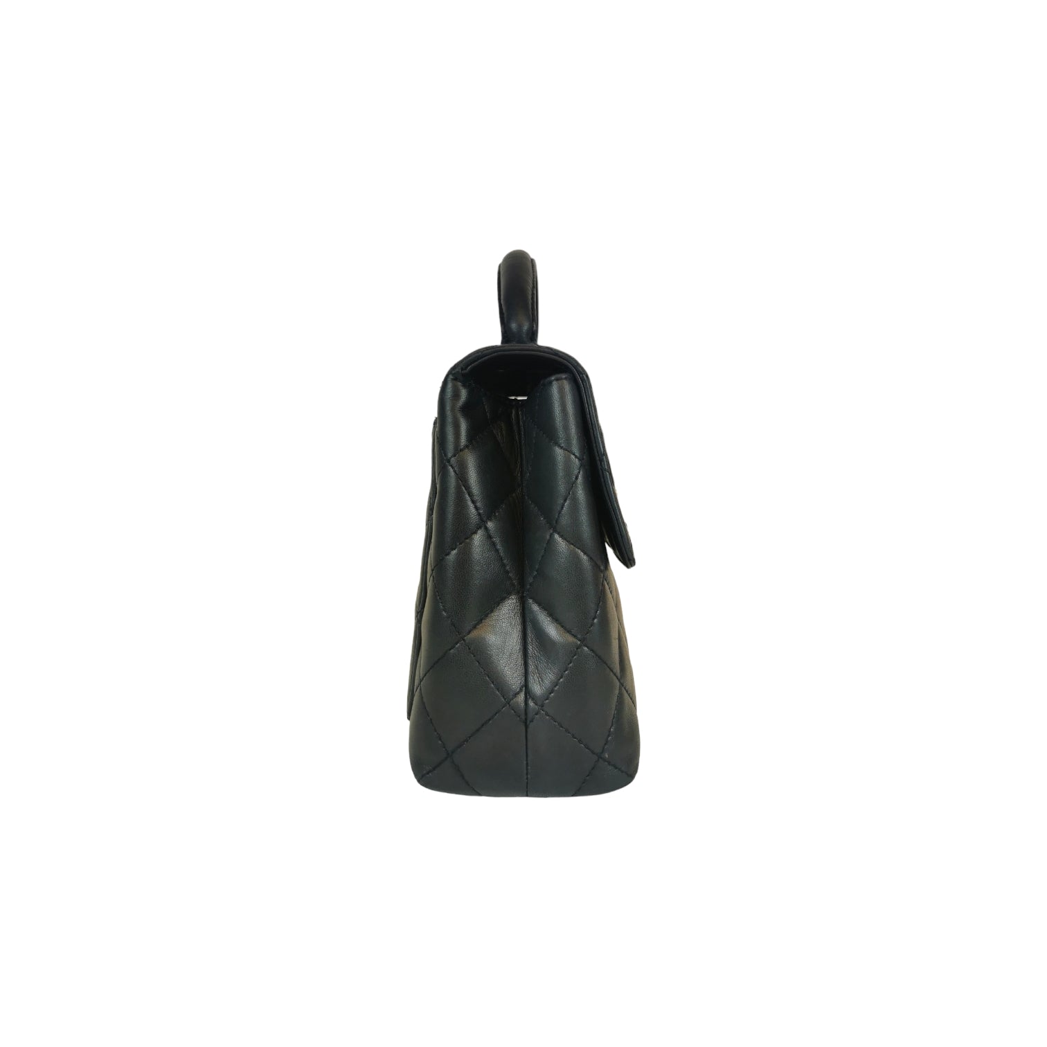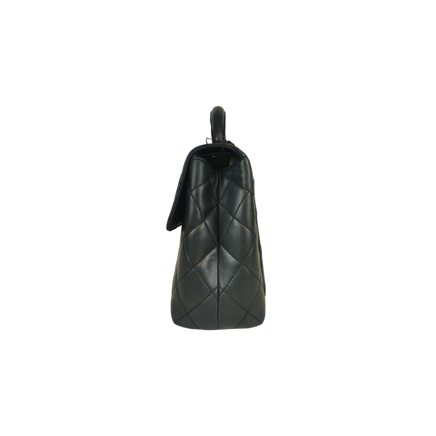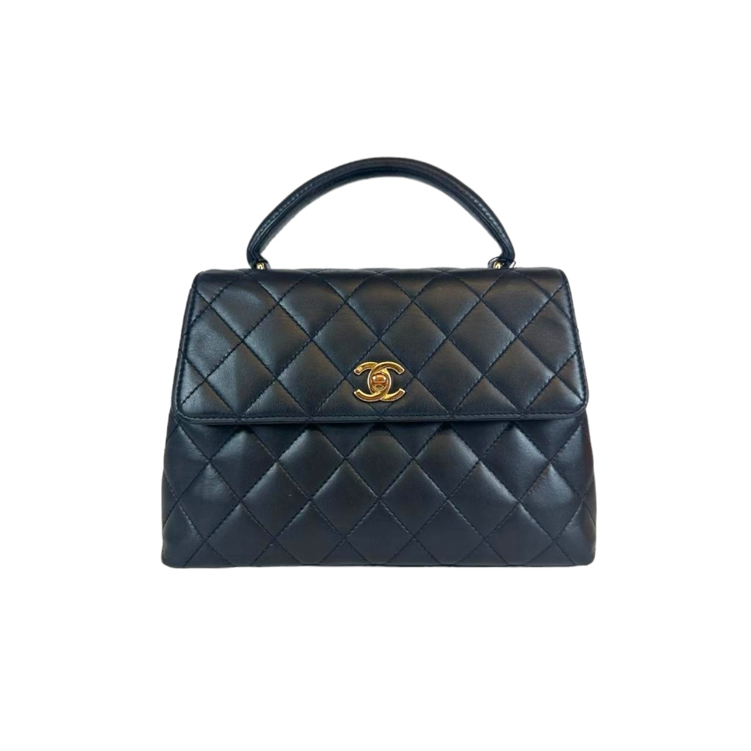 The Chanel Kelly is a masterpiece of design. Made from robust lambskin, the gold hardware highlights the black leather beautifully. This is due to the lack of hardware and only one flap Bag surprisingly light in the hand. It has a small one on the back Bag and there is a small zippered compartment inside. It is carried in the hand or in the crook of the arm using the practical handle.