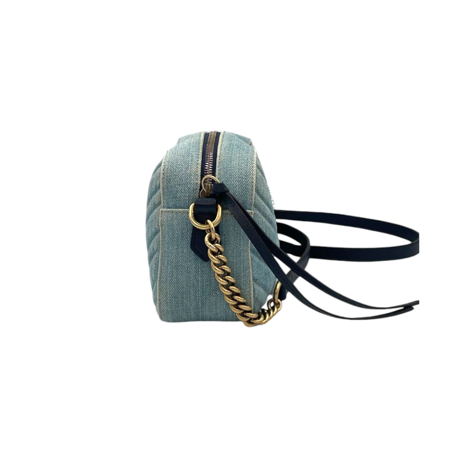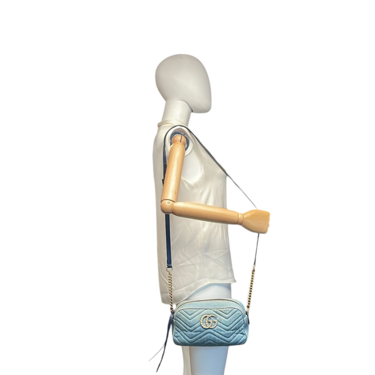 Gucci GG Marmont Crossbody Bag Blue Quilted Denim