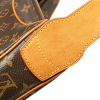 This cool Louis Vuitton croissant in the large GM version is celebrating its 20th birthday this month! Who is celebrating? The Bag Crafted from Monogram canvas, it features Vachetta leather trim and shoulder strap, gold details, a top opening zipper and interior slip pockets. The Bag is carried over the shoulder or in the arm.