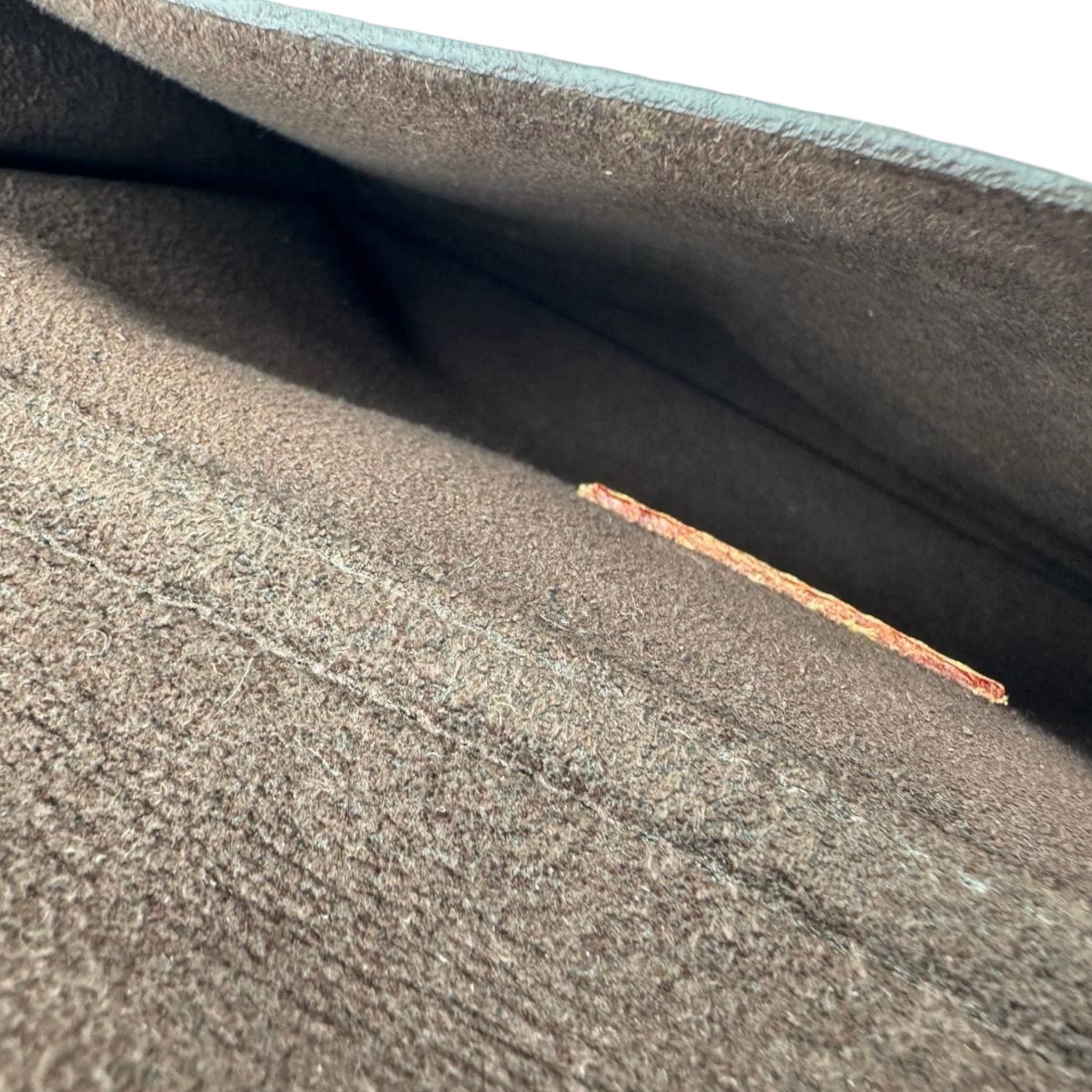 Condition: The outer front and back are slightly worn. The outside floor shows signs of wear. The corners are finely worn. In the interior you can see a large, black spot and general slight signs of use. The hardware is chipped with scratches.