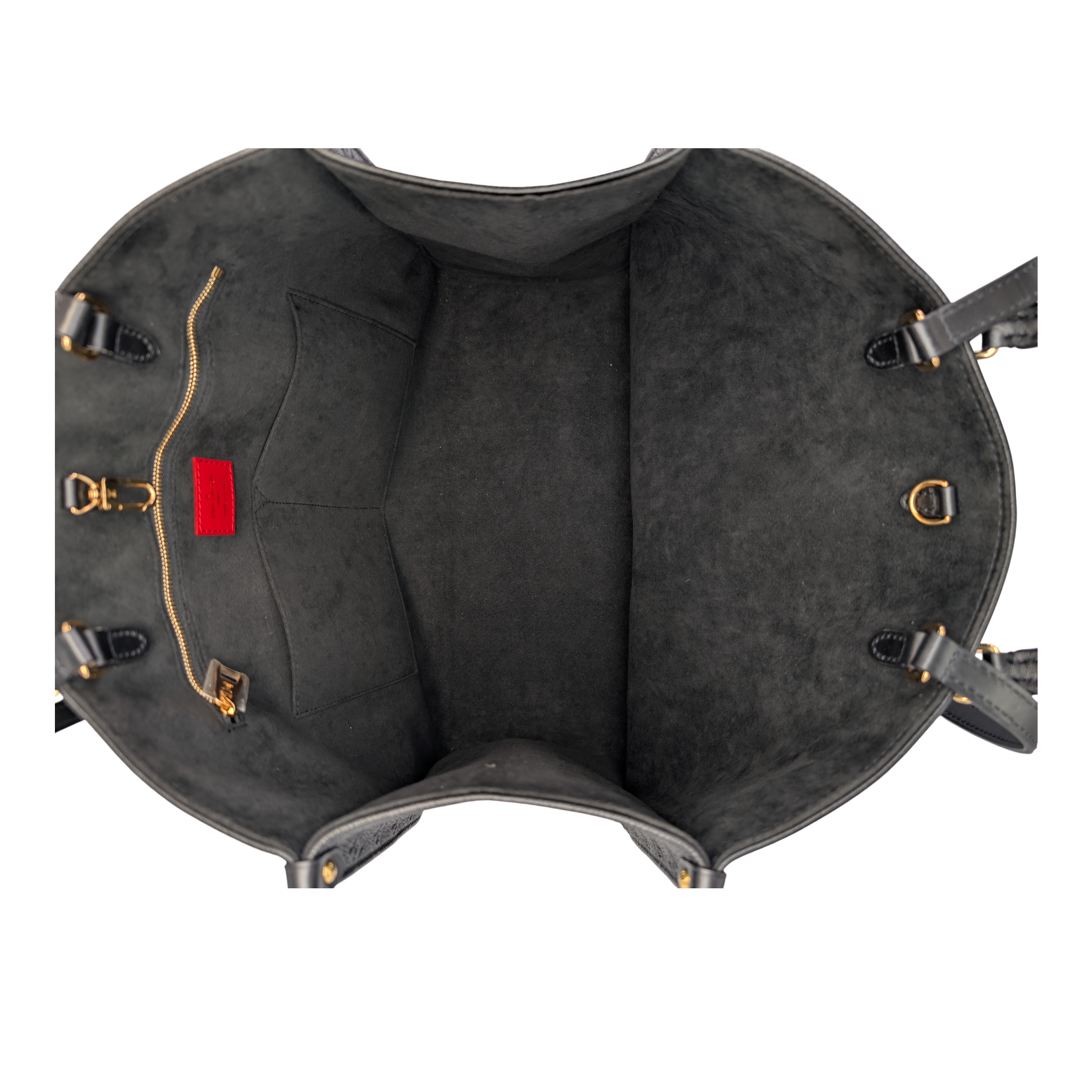 The Onthego GM made of noble Monogram Empreinte Leather is unique in its functionality and has a high recognition value. With a spacious interior, shoulder straps and iconic Toron top handles, the versatile Onthego is the perfect everyday or evening accessory.