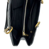 The Chanel Grand Shopping Tote in Caviar Leather is a classic, which unfortunately has not been manufactured since 2015. The simple black of the robust Caviar The leather is wonderfully complemented by the golden shine of the hardware. There is a practical open compartment on the back. The interior is very versatile with two compartments which are separated by a zipper compartment in the middle. There is another zippered compartment on one side and an open pocket on the other.