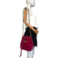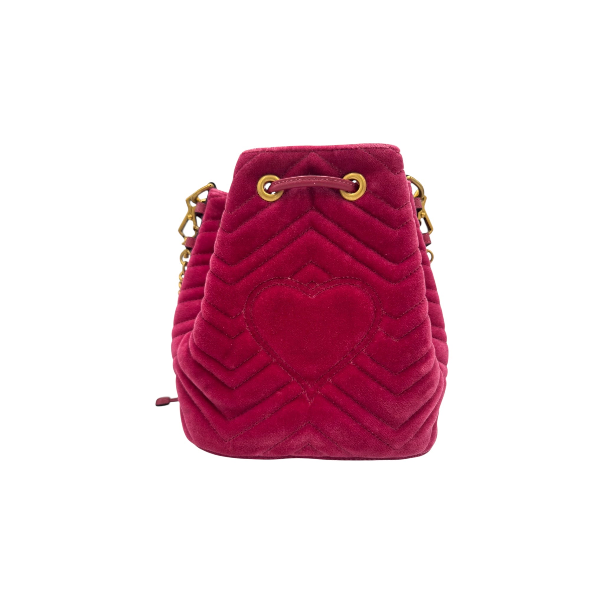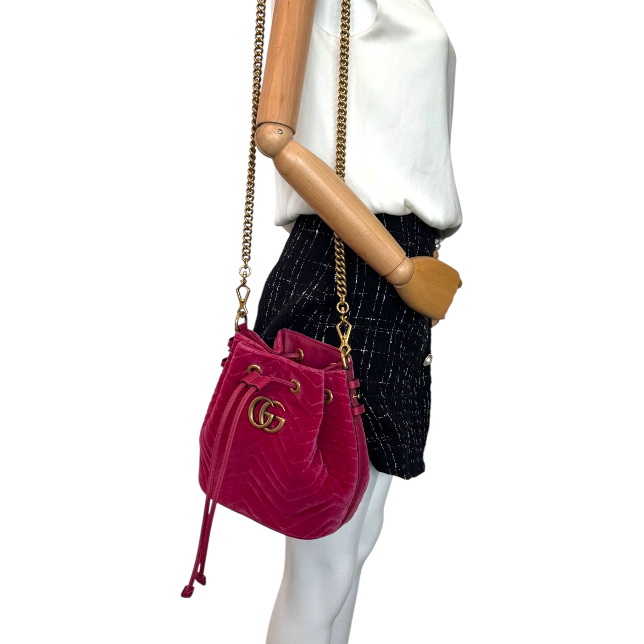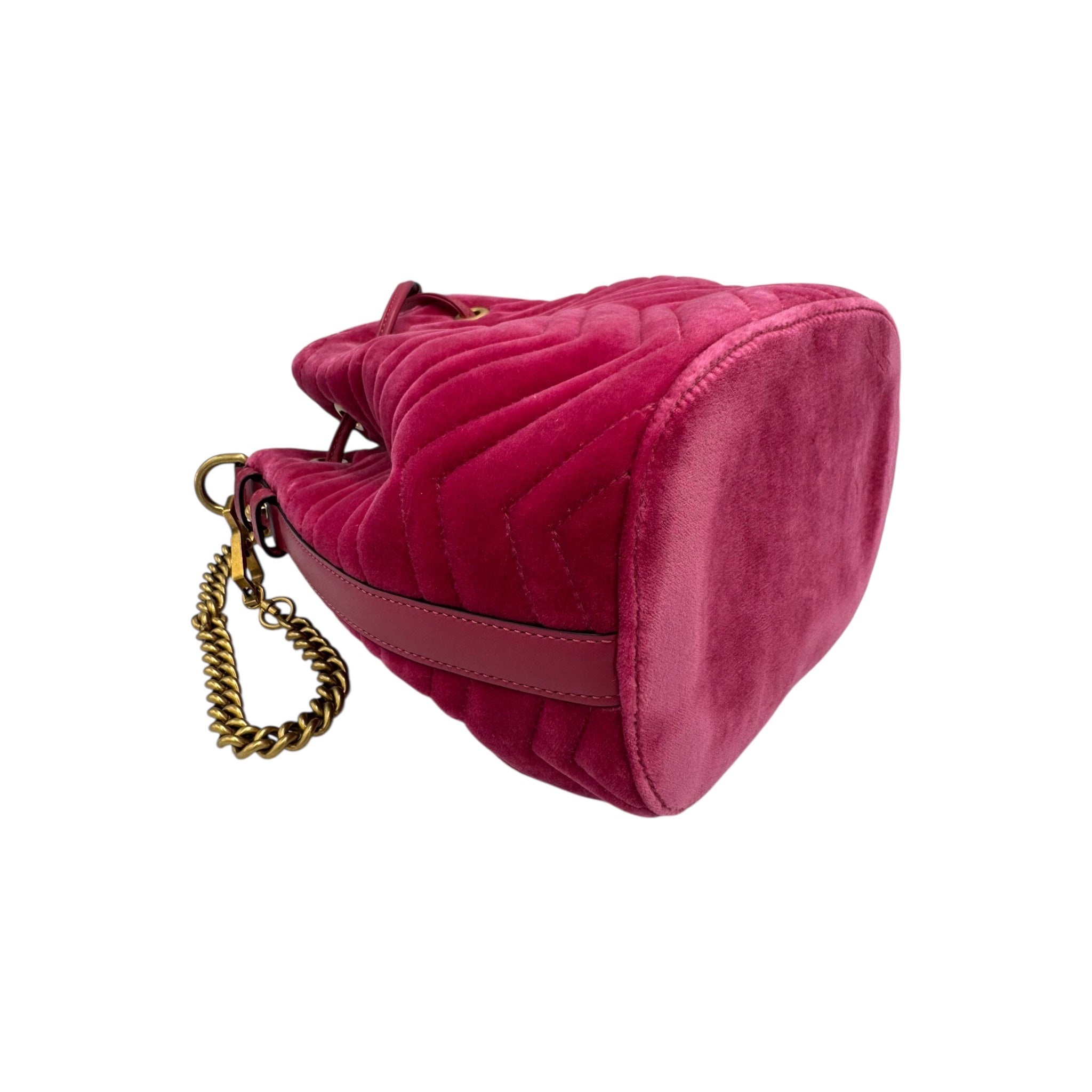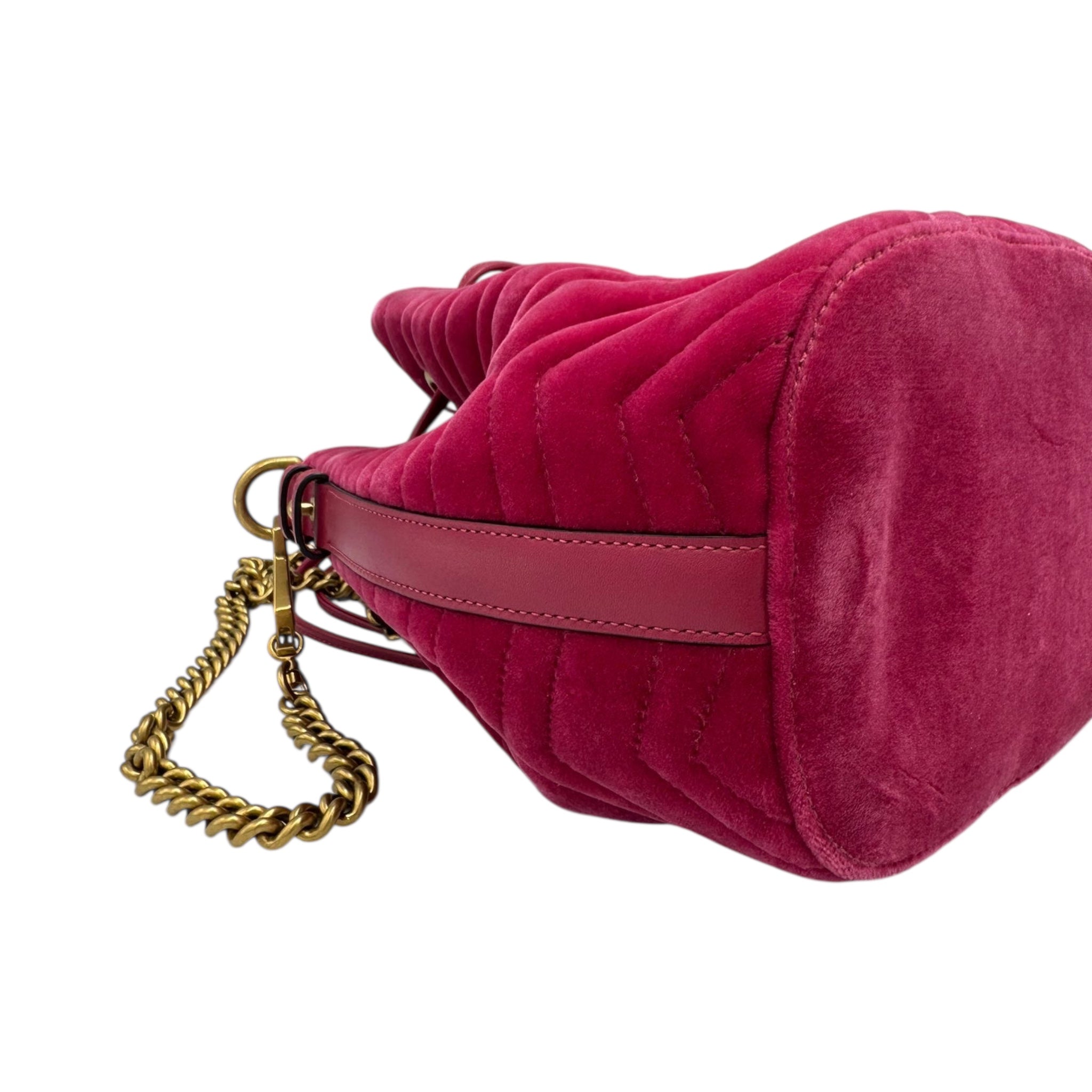 Gucci GG Marmont Bucket Bag Medium Rasperry Pink Velvet Gold