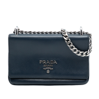 This elegant Prada City Chain Crossbody combines timeless lines with functional everyday practicality. Made from the iconic Saffiano leather, the Bag impresses with its structured shape, high durability and subtly luxurious look. The silver-colored chain shoulder strap adds a modern touch to the design and allows for both crossbody and shoulder carry.