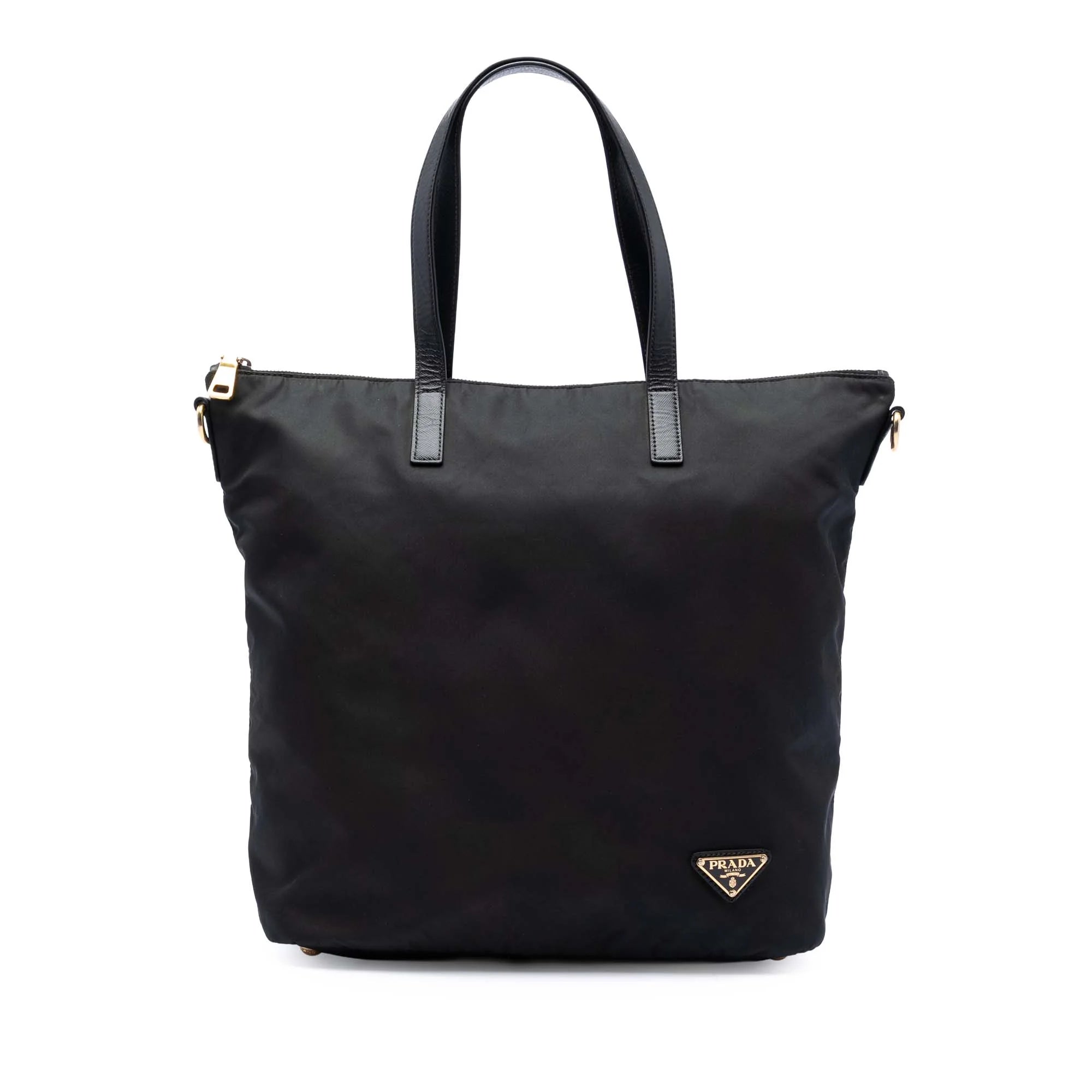 Prada Zip Top Convertible Tote Bag Black Tessuto