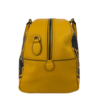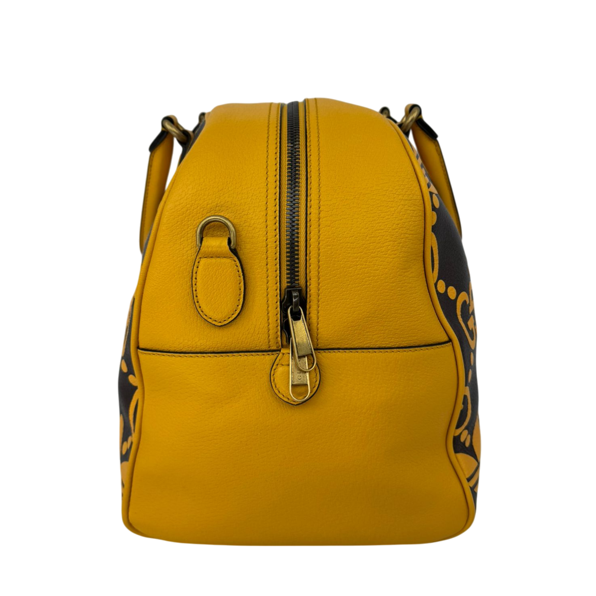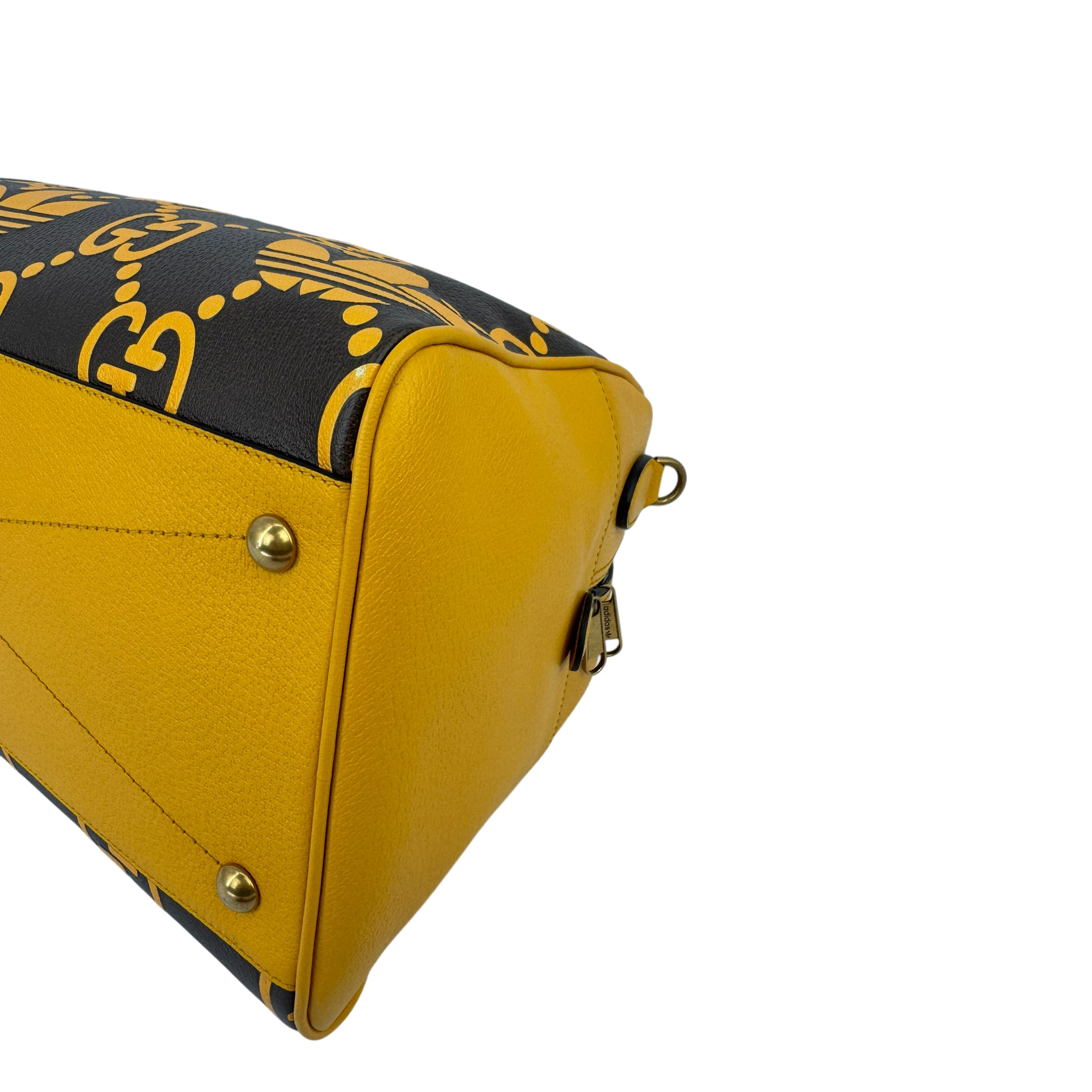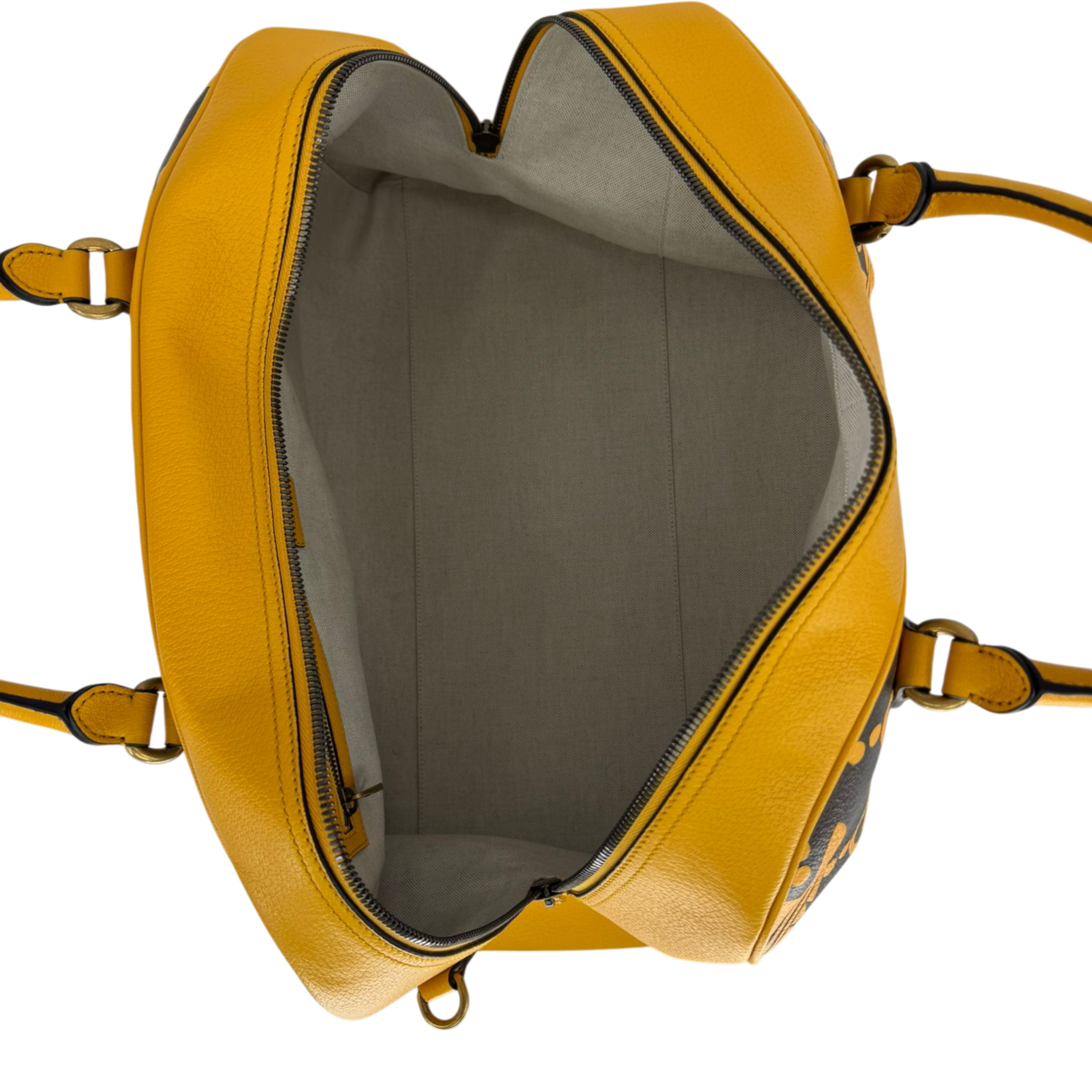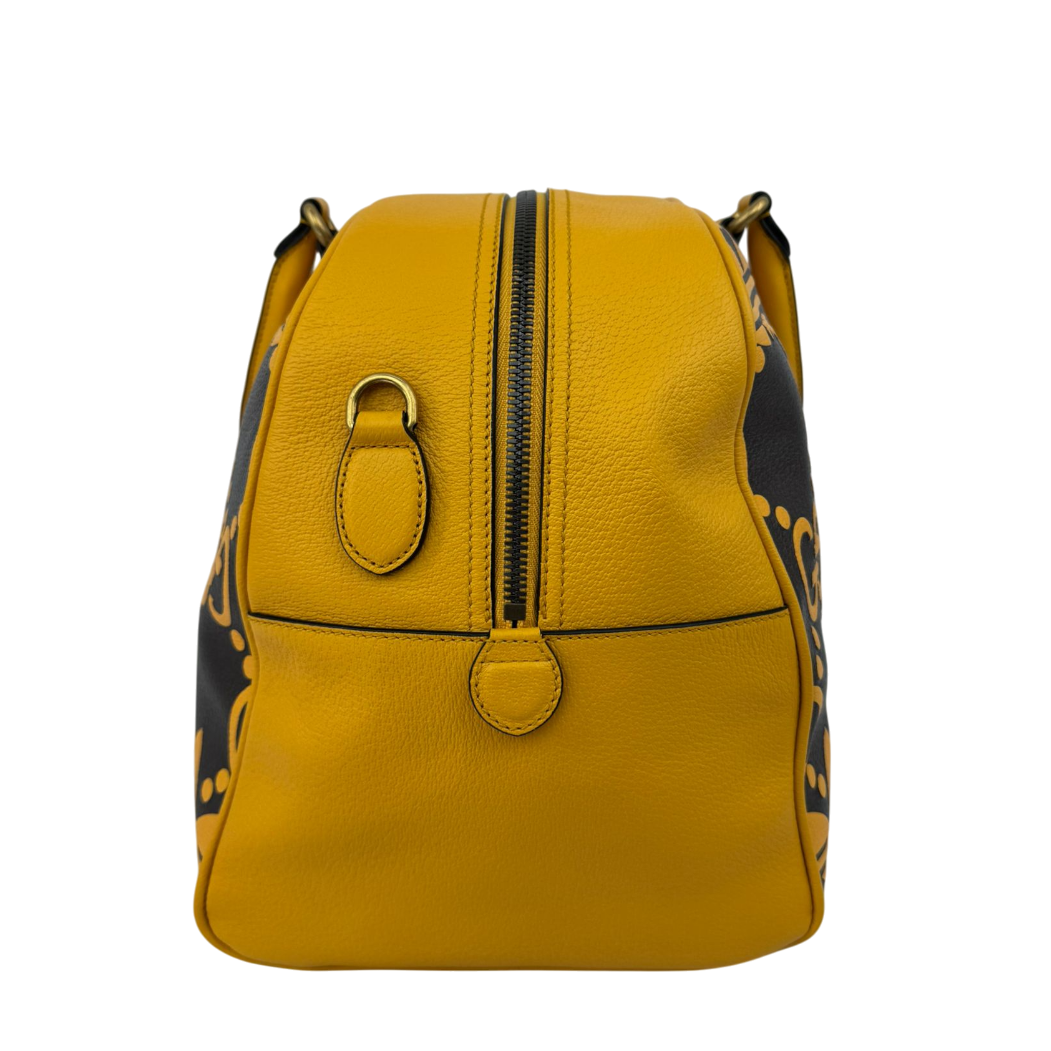 The Gucci x adidas duffle bag is the result of a limited-edition collaboration between two iconic brands and combines the classic Gucci GG Monogram with the striking adidas Trefoil details. The eye-catching play of colors in brown and yellow makes this Bag a real statement piece with high recognition value.