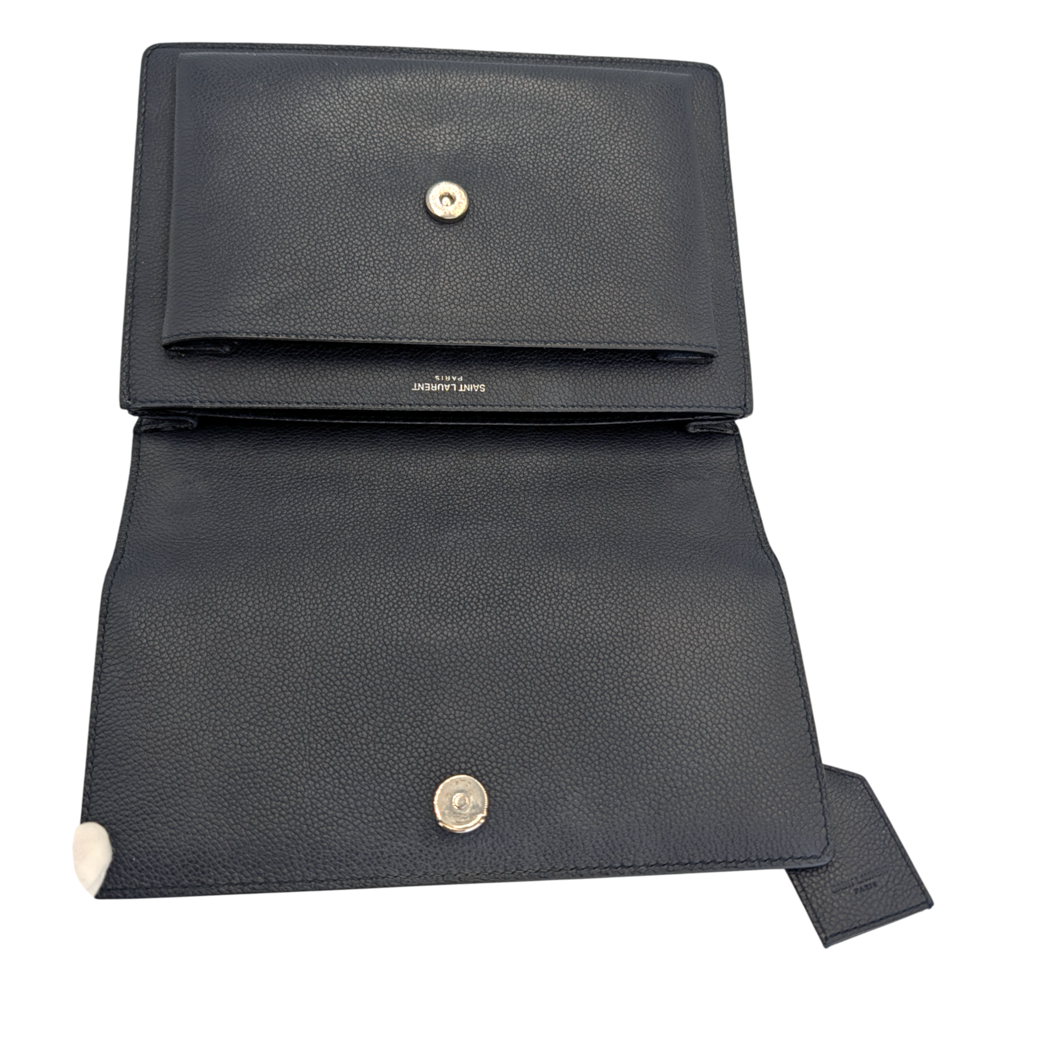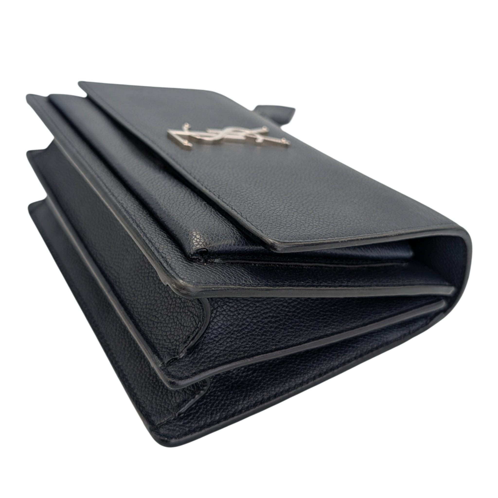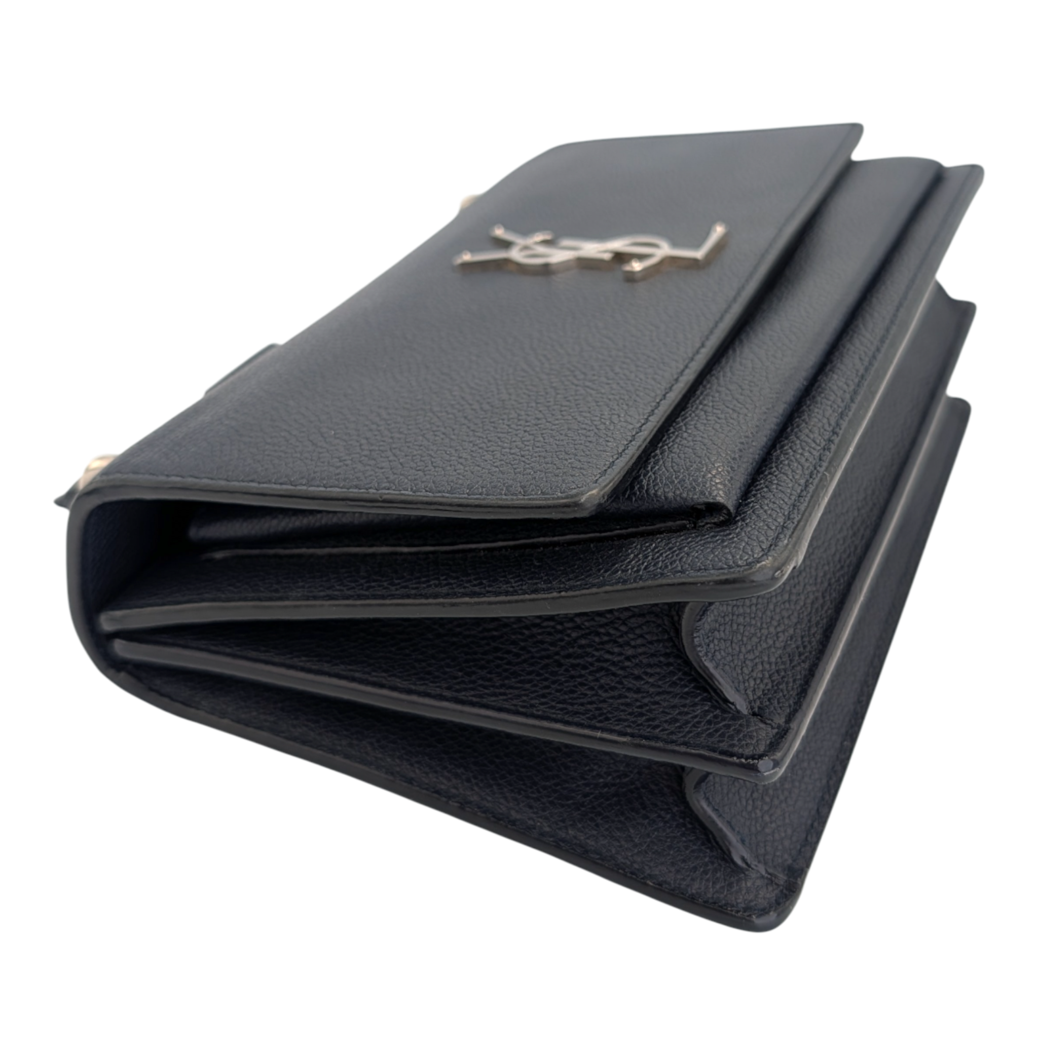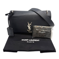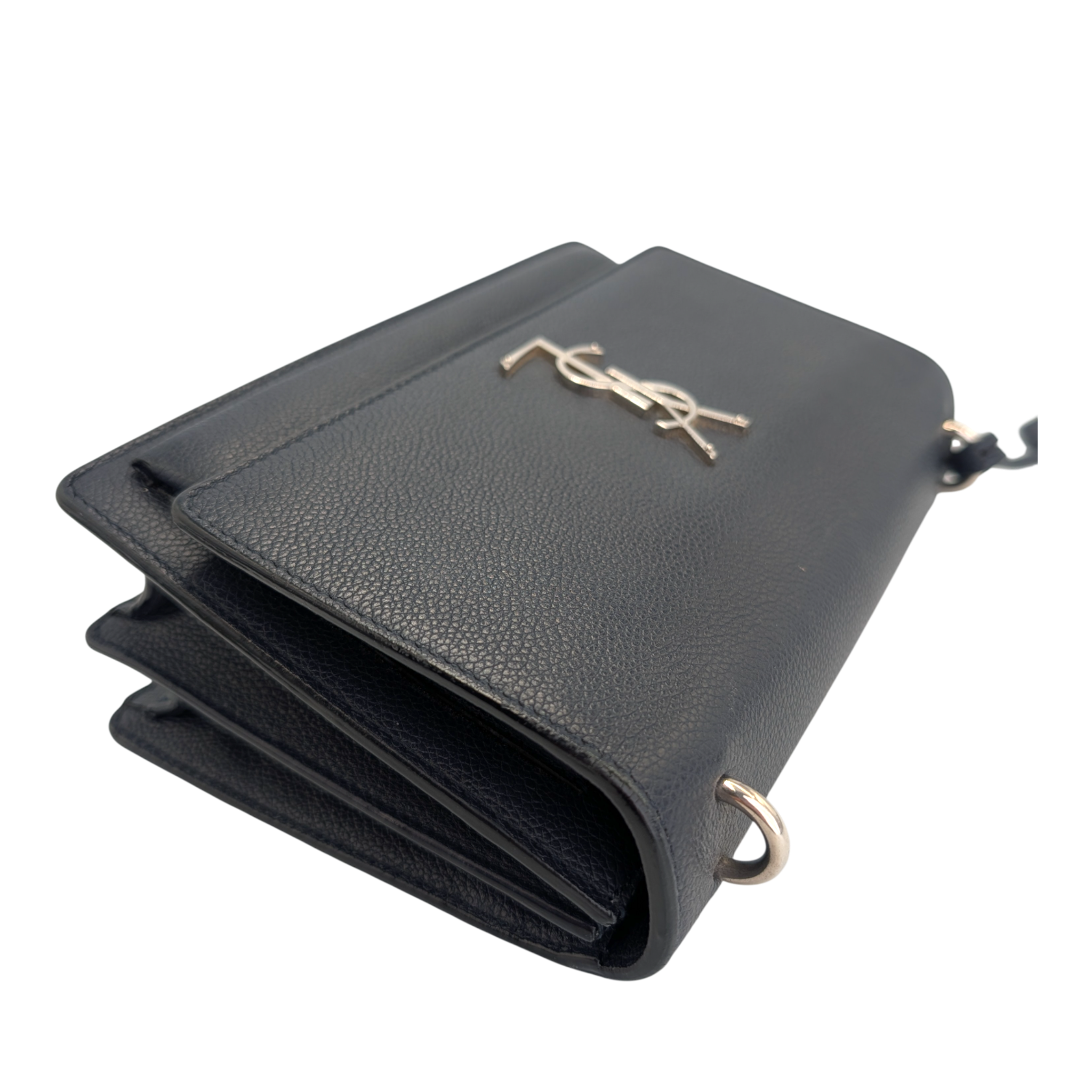 Yves Saint Laurent Monogram Sunset Medium Midnight Blue Textured Leather Silver