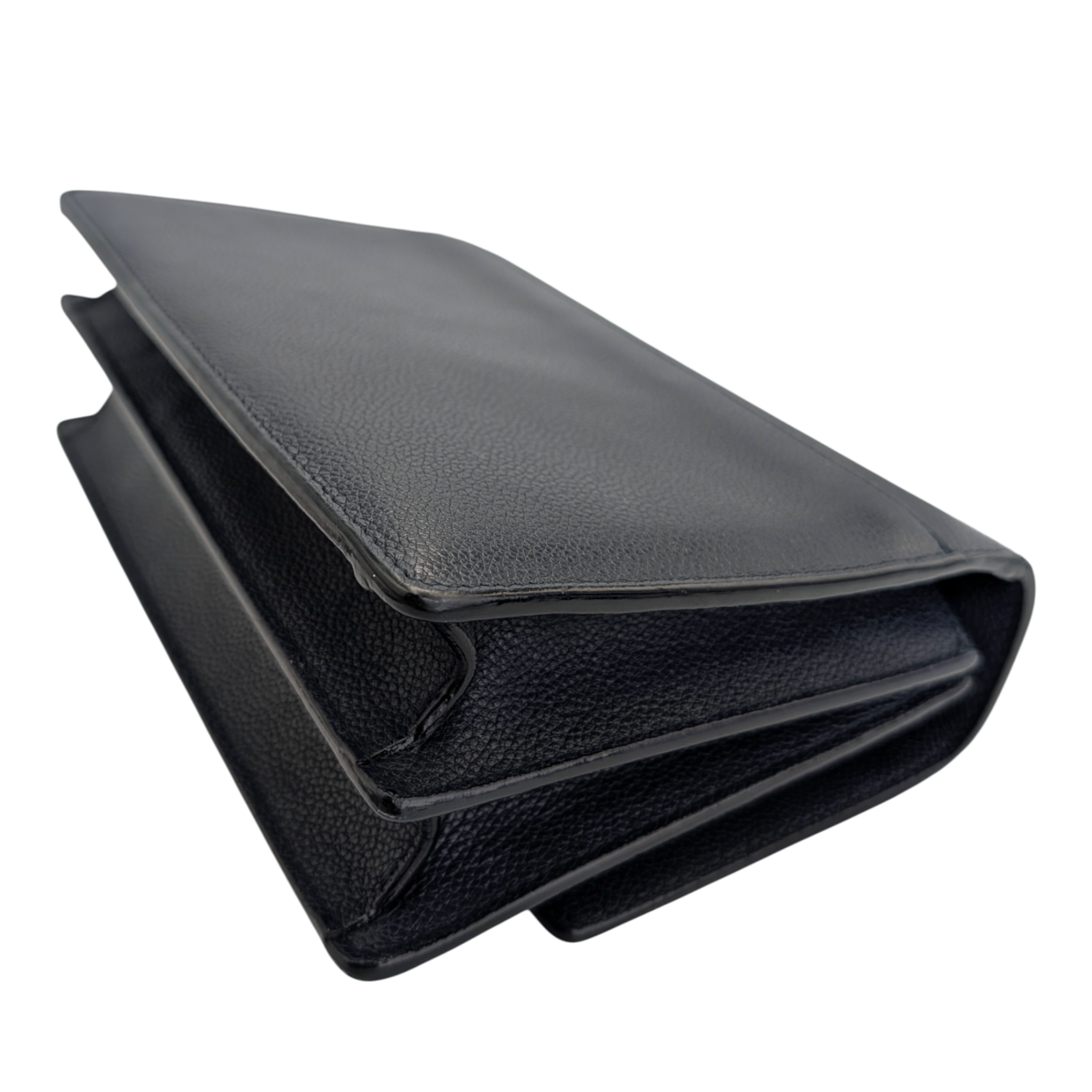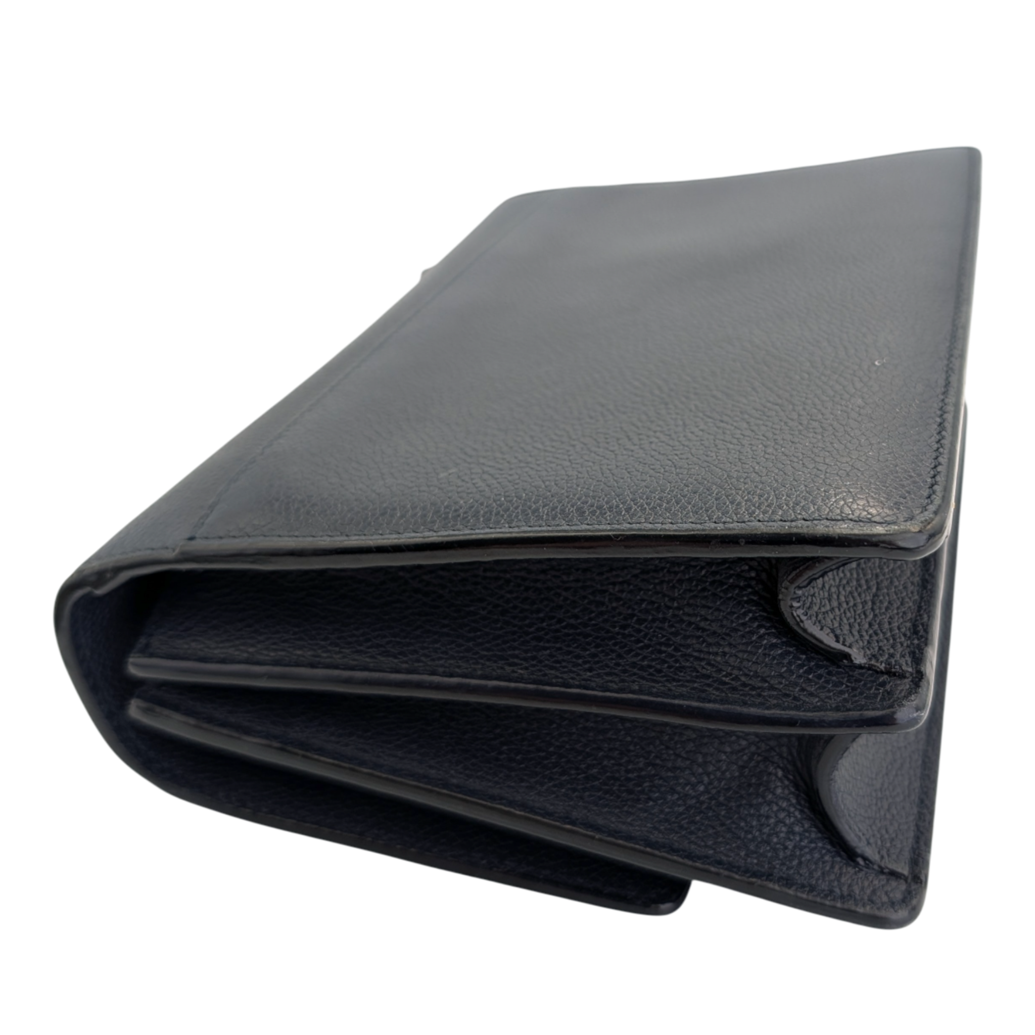 Condition: The back shows signs of wear, as does the bottom of the Bag. The hardware has scratches and the corners are worn. The front also shows signs of wear. The handle shows visible signs of wear. The interior has fine traces of use.