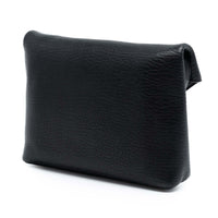 The Cassandre Envelope Wallet on Chain features a leather body, a detachable chain link shoulder strap, a front flap with snap fastener button closure, an interior zip compartment, and an interior open compartment with card slots.