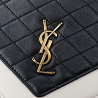 The Yves Saint Laurent Gaby Bag made of black lamb leather embodies timeless elegance with a touch of modern sophistication. Made from buttery soft, quilted lamb leather and decorated with the iconic YSL logo in gold look, the impresses Bag thanks to their luxurious feel and compact format. Whether worn as a crossbody or shoulder bag – the Gaby is a stylish companion for day and evening.